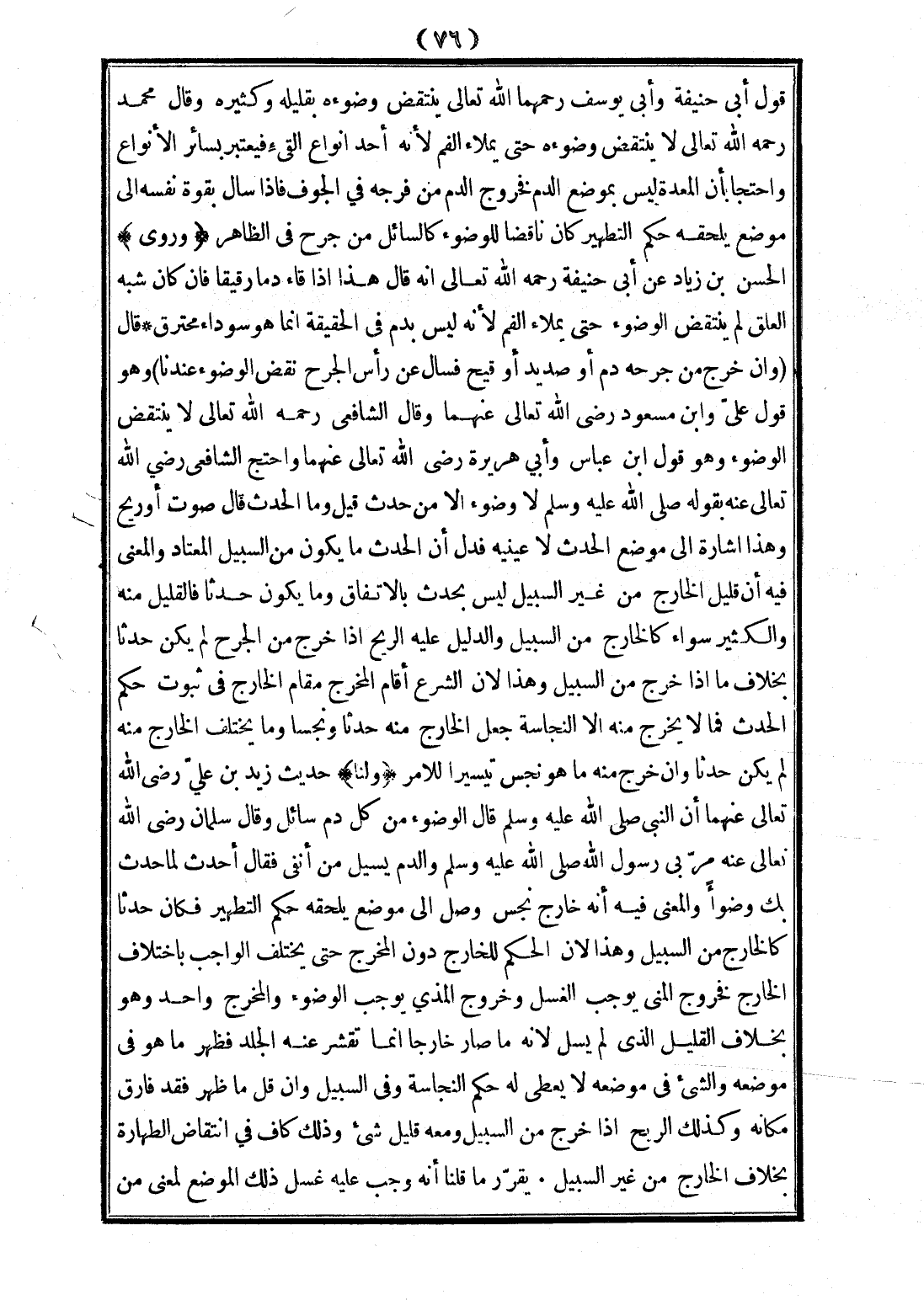 قَوْلِ أَبِي حَنِيفَةَ وَأَبِي يُوسُفَ - رَحِمَهُمَا اللَّهُ تَعَالَى - يُنْتَقَضُ وُضُوءُهُ بِقَلِيلِهِ، وَكَثِيرِهِ، وَقَالَ مُحَمَّدٌ - رَحِمَهُ اللَّهُ تَعَالَى - لَا يُنْتَقَضُ وُضُوءُهُ حَتَّى يَمْلَأَ الْفَمَ؛ لِأَنَّهُ أَحَدُ أَنْوَاعِ الْقَيْءِ فَيُعْتَبَرُ بِسَائِرِ الْأَنْوَاعِ، وَاحْتَجَّا بِأَنَّ الْمَعِدَةَ لَيْسَ بِمَوْضِعِ الدَّمِ فَخُرُوجُ الدَّمِ مِنْ فَرْجِهِ فِي الْجَوْفِ فَإِذَا سَالَ بِقُوَّةِ نَفَسِهِ إلَى مَوْضِعٍ يَلْحَقُهُ حُكْمُ التَّطْهِيرِ كَانَ نَاقِضًا لِلْوُضُوءِ كَالسَّائِلِ مِنْ جُرْحٍ فِي الظَّاهِرِ (وَرَوَى) الْحَسَنُ بْنُ زِيَادٍ عَنْ أَبِي حَنِيفَةَ - رَحِمَهُ اللَّهُ تَعَالَى - أَنَّهُ قَالَ هَذَا إذَا قَاءَ دَمًا رَقِيقًا فَإِنْ كَانَ شِبْهَ الْعَلَقِ لَمْ يُنْتَقَضْ الْوُضُوءُ حَتَّى يَمْلَأَ الْفَمَ؛ لِأَنَّهُ لَيْسَ بِدَمٍ فِي الْحَقِيقَةِ إنَّمَا هُوَ سَوْدَاءُ مُحْتَرِقٌ.