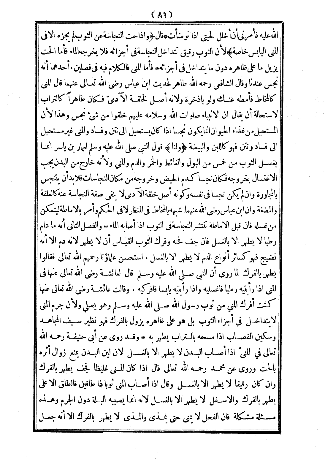 قَالَ (وَإِذَا حَتَّ النَّجَاسَةَ عَنْ الثَّوْبِ لَمْ يُجْزِهِ إلَّا فِي الْمَنِيِّ الْيَابِسِ خَاصَّةً)؛ لِأَنَّ الثَّوْبَ رَقِيقٌ تَتَدَاخَلُ النَّجَاسَةُ فِي أَجْزَائِهِ فَلَا يُخْرِجُهُ إلَّا الْمَاءُ فَأَمَّا الْحَتُّ يُزِيلُ مَا عَلَى ظَاهِرِهِ دُونَ مَا يَتَدَاخَلُ فِي أَجْزَائِهِ فَأَمَّا الْمَنِيُّ فَالْكَلَامُ فِيهِ فِي فَصْلَيْنِ. أَحَدُهُمَا أَنَّهُ نَجِسٌ عِنْدَنَا، وَقَالَ الشَّافِعِيُّ - رَحِمَهُ اللَّهُ - طَاهِرٌ لِحَدِيثِ ابْنِ عَبَّاسٍ - رَضِيَ اللَّهُ تَعَالَى عَنْهُمَا - قَالَ الْمَنِيُّ كَالْمُخَاطِ فَأَمِطْهُ عَنْكَ، وَلَوْ بِإِذْخِرَةٍ، وَلِأَنَّهُ أَصْلٌ لِخِلْقَةِ الْآدَمِيِّ فَكَانَ طَاهِرًا كَالتُّرَابِ لِاسْتِحَالَةِ أَنْ يُقَالَ: إنَّ الْأَنْبِيَاءَ - صَلَوَاتُ اللَّهِ وَسَلَامُهُ عَلَيْهِمْ - خُلِقُوا مِنْ شَيْءٍ نَجِسٍ، وَهَذَا؛ لِأَنَّ الْمُسْتَحِيلَ مِنْ غِذَاءِ الْحَيَوَانِ إنَّمَا يَكُونُ نَجِسًا إذَا كَانَ يَسْتَحِيلُ إلَى نَتِنٍ، وَفَسَادٍ، وَالْمَنِيُّ غَيْرُ مُسْتَحِيلٍ إلَى فَسَادٍ، وَنَتِنٍ فَهُوَ كَاللَّبَنِ، وَالْبَيْضَةِ.