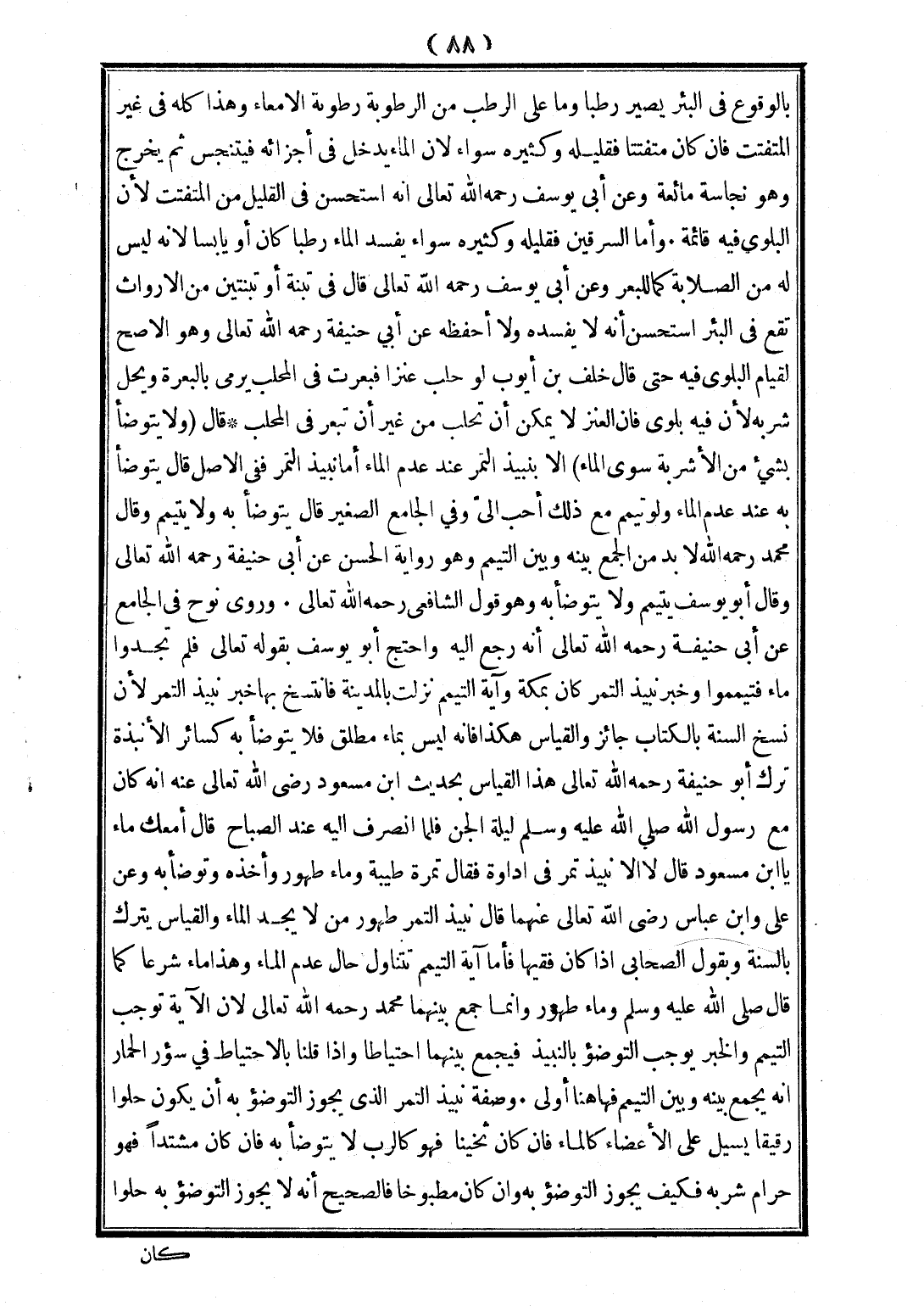 وَصِفَةُ نَبِيذِ التَّمْرِ الَّذِي يَجُوزُ التَّوَضُّؤُ بِهِ أَنْ يَكُونَ حُلْوًا رَقِيقًا يَسِيلُ عَلَى الْأَعْضَاءِ كَالْمَاءِ فَإِنْ كَانَ ثَخِينًا فَهُوَ كَالرُّبِّ لَا يَتَوَضَّأُ بِهِ فَإِنْ كَانَ مُشْتَدًّا فَهُوَ حَرَامٌ شُرْبُهُ فَكَيْفَ يَجُوزُ التَّوَضُّؤُ بِهِ، وَإِنْ كَانَ مَطْبُوخًا فَالصَّحِيحُ أَنَّهُ لَا يَجُوزُ التَّوَضُّؤُ بِهِ حُلْوًا