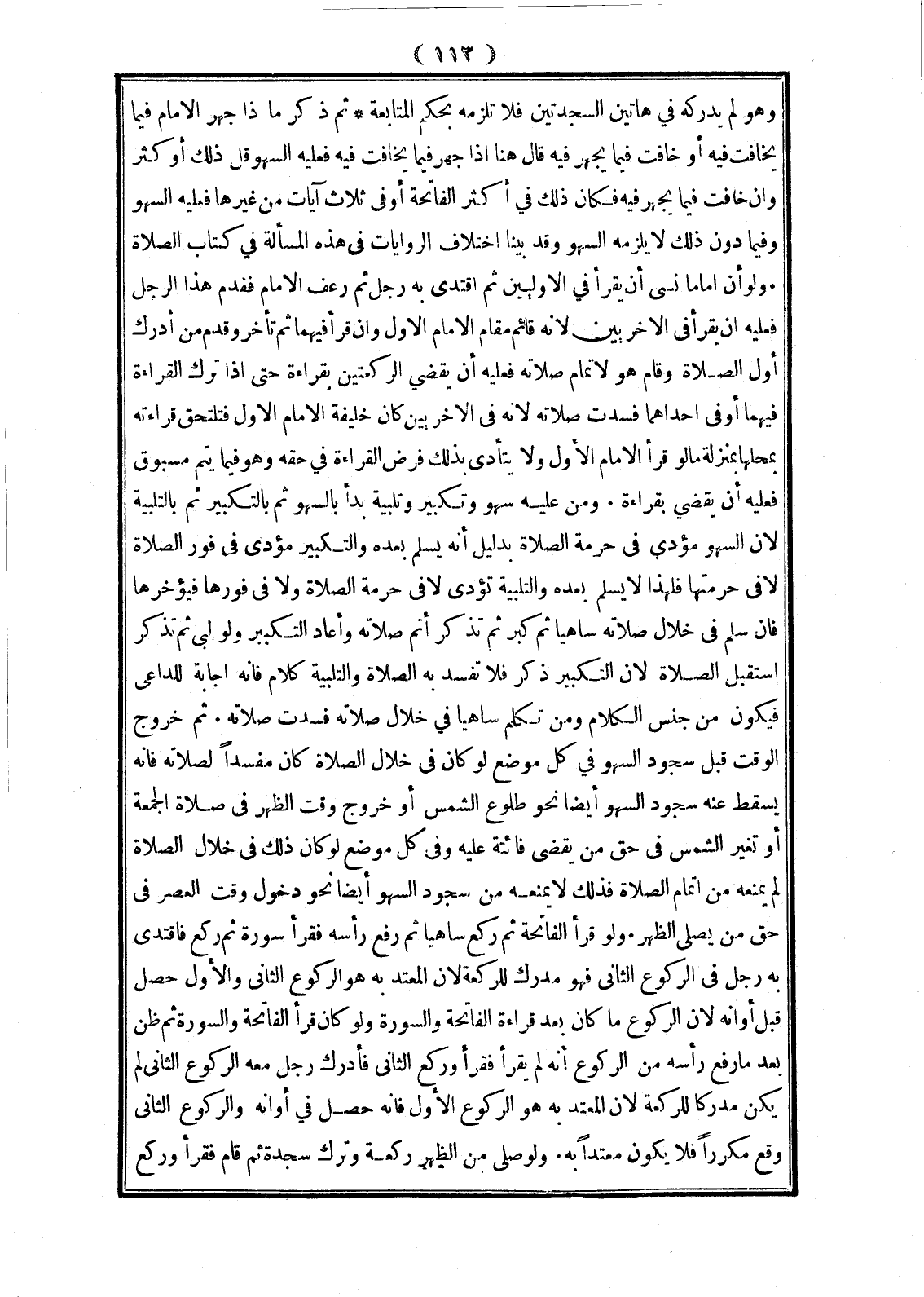 ثُمَّ ذَكَرَ مَا إذَا جَهَرَ الْإِمَامُ فِيمَا يُخَافِتُ فِيهِ أَوْ خَافَتَ فِيمَا يَجْهَرُ فِيهِ قَالَ: هُنَا إذَا جَهَرَ فِيمَا يُخَافِتُ فِيهِ فَعَلَيْهِ السَّهْوُ قَلَّ ذَلِكَ أَوْ كَثُرَ، وَإِنْ خَافَتَ فِيمَا يَجْهَرُ فِيهِ فَكَانَ ذَلِكَ فِي أَكْثَرِ الْفَاتِحَةِ أَوْ فِي ثَلَاثِ آيَاتٍ مِنْ غَيْرِهَا فَعَلَيْهِ السَّهْوُ، وَفِيمَا دُونَ ذَلِكَ لَا يَلْزَمُهُ السَّهْوُ، وَقَدْ بَيَّنَّا اخْتِلَافَ الرِّوَايَاتِ فِي هَذِهِ الْمَسْأَلَةِ فِي كِتَابِ الصَّلَاةِ