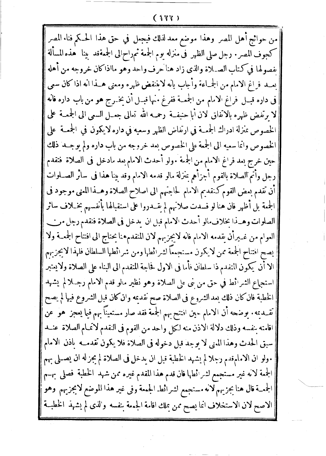 رَجُلٌ صَلَّى الظُّهْرَ فِي مَنْزِلِهِ يَوْمَ الْجُمُعَةِ ثُمَّ رَاحَ إلَى الْجُمُعَةِ قَدْ بَيَّنَّا هَذِهِ الْمَسْأَلَةِ بِفُصُولِهَا فِي كِتَابِ الصَّلَاةِ وَاَلَّذِي زَادَ هُنَا حَرْفٌ وَاحِدٌ وَهُوَ مَا إذَا كَانَ خُرُوجُهُ مِنْ أَهْلِهِ بَعْدَ فَرَاغِ الْإِمَامِ مِنْ الْجَمَاعَةِ وَأَجَابَ بِأَنَّهُ لَا يَنْتَقِضُ ظُهْرُهُ وَمَعْنَى هَذَا أَنَّهُ إذَا كَانَ سَعَى فِي دَارِهِ قَبْلَ فَرَاغِ الْإِمَامِ مِنْ الْجُمُعَةِ فَفَرَغَ مِنْهَا قَبْلَ أَنْ يَخْرُجَ هُوَ مِنْ بَابِ دَارِهِ فَإِنَّهُ لَا يَرْتَفِضُ ظُهْرُهُ بِالِاتِّفَاقِ؛ لِأَنَّ أَبَا حَنِيفَةَ - رَحِمَهُ اللَّهُ تَعَالَى - جَعَلَ السَّعْيَ إلَى الْجُمُعَةِ عَلَى الْخُصُوصِ بِمَنْزِلَةِ إدْرَاكِ الْجُمُعَةِ فِي ارْتِفَاضِ الظُّهْرِ وَسَعْيُهُ فِي دَارِهِ لَا يَكُونُ فِي الْجُمُعَةِ عَلَى الْخُصُوصِ وَإِنَّمَا سَعْيُهُ إلَى الْجُمُعَةِ عَلَى الْخُصُوصِ بَعْدَ خُرُوجِهِ مِنْ بَابِ دَارِهِ وَلَمْ يُوجَدْ ذَلِكَ حِينَ خَرَجَ بَعْدَ فَرَاغِ الْإِمَامِ مِنْ الْجُمُعَةِ.