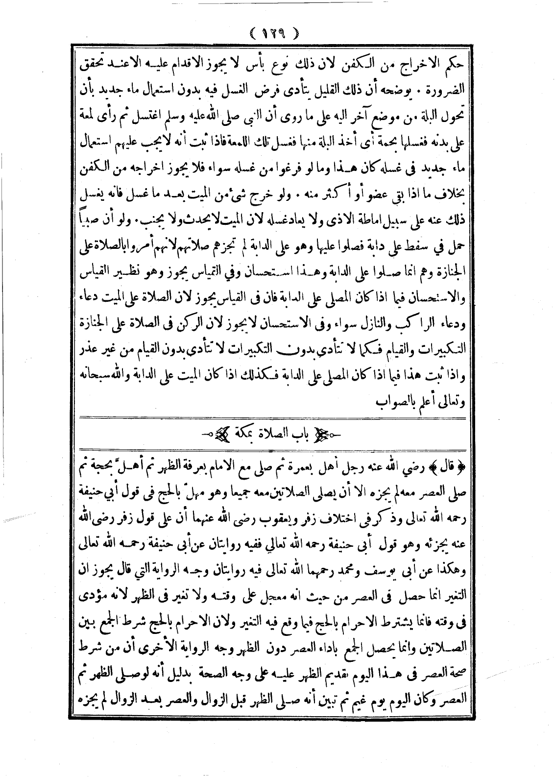 (بَابُ الصَّلَاةِ بِمَكَّةَ) (قَالَ) - رَضِيَ اللَّهُ عَنْهُ - رَجُلٌ أَهَلَّ بِعُمْرَةٍ ثُمَّ صَلَّى مَعَ الْإِمَامِ بِعَرَفَةَ الظُّهْرَ ثُمَّ أَهَلَّ بِحِجَّةٍ ثُمَّ صَلَّى الْعَصْرَ مَعَهُ لَمْ يُجْزِهِ إلَّا أَنْ يُصَلِّيَ الصَّلَاتَيْنِ مَعَهُ جَمِيعًا وَهُوَ مُهِلٌّ بِالْحَجِّ فِي قَوْلِ أَبِي حَنِيفَةَ - رَحِمَهُ اللَّهُ تَعَالَى - وَذَكَرَ فِي اخْتِلَافِ زُفَرَ وَيَعْقُوبَ - رَضِيَ اللَّهُ عَنْهُمَا - أَنَّ عَلَى قَوْلِ زُفَرَ - رَضِيَ اللَّهُ عَنْهُ - يُجْزِئُهُ وَهُوَ قَوْلُ أَبِي حَنِيفَةَ - رَحِمَهُ اللَّهُ تَعَالَى - فَفِيهِ رِوَايَتَانِ عَنْ أَبِي حَنِيفَةَ - رَحِمَهُ اللَّهُ تَعَالَى - وَهَكَذَا عَنْ أَبِي يُوسُفَ وَمُحَمَّدٍ رَحِمَهُمَا اللَّهُ تَعَالَى فِيهِ رِوَايَتَانِ، وَجْهُ الرِّوَايَةِ الَّتِي قَالَ يَجُوزُ أَنَّ التَّغَيُّرَ إنَّمَا حَصَلَ فِي الْعَصْرِ مِنْ حَيْثُ إنَّهُ مُعَجَّلٌ عَلَى وَقْتِهِ وَلَا تَغَيُّرَ فِي الظُّهْرِ؛ لِأَنَّهُ مُؤَدًّى فِي وَقْتِهِ فَإِنَّمَا يُشْتَرَطُ الْإِحْرَامُ بِالْحَجِّ فِيمَا وَقَعَ فِيهِ التَّغَيُّرُ وَلِأَنَّ الْإِحْرَامَ بِالْحَجِّ شَرْطُ الْجَمْعِ بَيْنَ الصَّلَاتَيْنِ، وَإِنَّمَا يَحْصُلُ الْجَمْعُ بِأَدَاءِ الْعَصْرِ دُونَ الظُّهْرِ. وَجْهُ الرِّوَايَةِ الْأُخْرَى أَنَّ مِنْ شَرْطِ صِحَّةِ الْعَصْرِ فِي هَذَا الْيَوْمِ تَقْدِيمُ الظُّهْرِ عَلَيْهِ عَلَى وَجْهِ الصِّحَّةِ بِدَلِيلِ أَنَّهُ لَوْ صَلَّى الظُّهْرَ ثُمَّ الْعَصْرَ وَكَانَ الْيَوْمُ يَوْمَ غَيْمٍ ثُمَّ تَبَيَّنَ أَنَّهُ صَلَّى الظُّهْرَ قَبْلَ الزَّوَالِ وَالْعَصْرَ بَعْدَ الزَّوَالِ لَمْ يُجْزِهِ