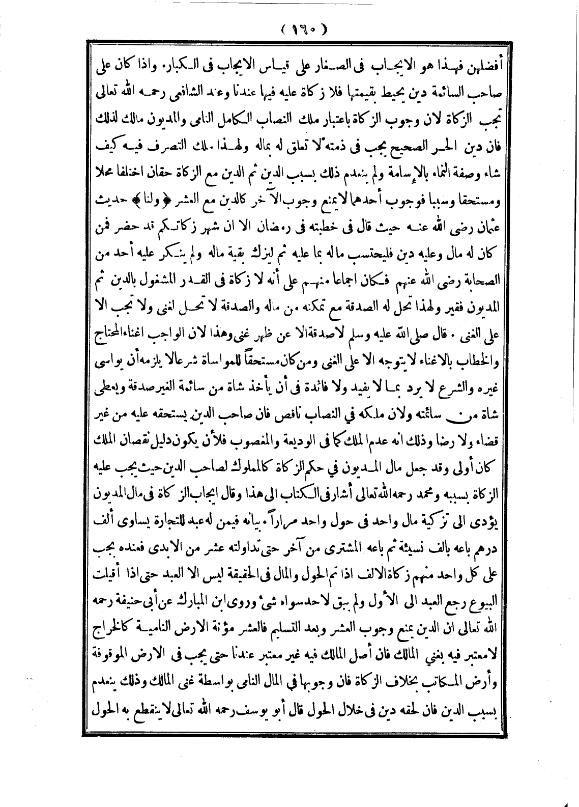 بَيَانُهُ فِيمَنْ لَهُ عَبْدٌ لِلتِّجَارَةِ يُسَاوِي أَلْفَ دِرْهَمٍ بَاعَهُ بِأَلْفٍ نَسِيئَةً، ثُمَّ بَاعَهُ الْمُشْتَرِي مِنْ آخَرَ حَتَّى تَدَاوَلَتْهُ عَشْرٌ مِنْ الْأَيْدِي فَعِنْدَهُ يَجِبُ عَلَى كُلِّ وَاحِدٍ مِنْهُمْ زَكَاةُ الْأَلْفِ إذَا تَمَّ الْحَوْلُ وَالْمَالُ فِي الْحَقِيقَةِ لَيْسَ إلَّا الْعَبْدَ حَتَّى إذَا أُقِيلَتْ الْبُيُوعُ رَجَعَ الْعَبْدُ إلَى الْأَوَّلِ، وَلَمْ يَبْقَ لِأَحَدٍ سِوَاهُ شَيْءٌ، وَرَوَى ابْنُ الْمُبَارَكِ عَنْ أَبِي حَنِيفَةَ - رَحِمَهُ اللَّهُ تَعَالَى - أَنَّ الدَّيْنَ يَمْنَعُ وُجُوبَ الْعُشْرِ وَبَعْدَ التَّسْلِيمِ فَالْعُشْرُ مُؤْنَةُ الْأَرْضِ النَّامِيَةِ كَالْخَرَاجِ لَا مُعْتَبَرَ فِيهِ بِغِنَى الْمَالِكِ، فَإِنَّ أَصْلَ الْمَالِكِ فِيهِ غَيْرُ مُعْتَبَرٍ عِنْدَنَا حَتَّى يَجِبَ فِي الْأَرْضِ الْمَوْقُوفَةِ وَأَرْضِ الْمُكَاتِبِ بِخِلَافِ الزَّكَاةِ، فَإِنَّ وُجُوبَهَا فِي الْمَالِ النَّامِي بِوَاسِطَةِ غِنَى الْمَالِكِ، وَذَلِكَ يَنْعَدِمُ بِسَبَبِ الدَّيْنِ، فَإِنْ لَحِقَهُ دَيْنٌ فِي خِلَالِ الْحَوْلِ قَالَ أَبُو يُوسُفَ - رَحِمَهُ اللَّهُ تَعَالَى -: لَا يَنْقَطِعُ بِهِ الْحَوْلُ