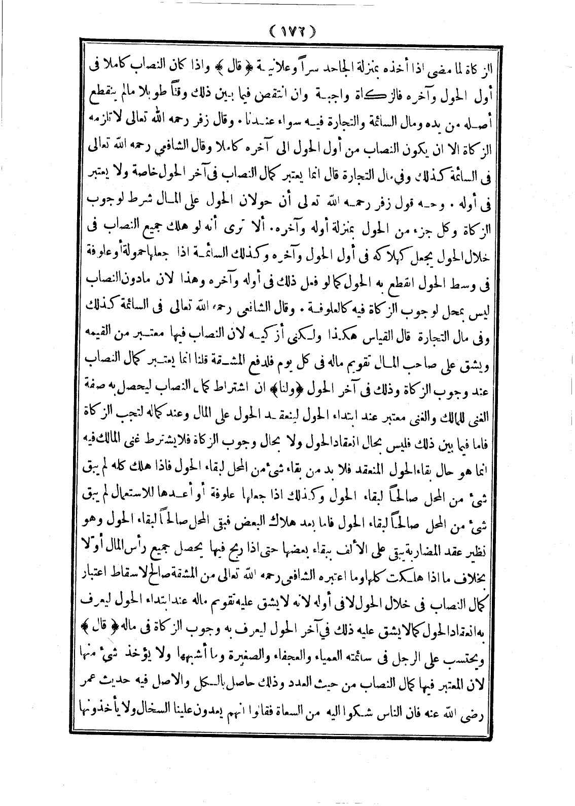 (قَالَ) وَإِذَا كَانَ النِّصَابُ كَامِلًا فِي أَوَّلِ الْحَوْلِ وَآخِرِهِ فَالزَّكَاةُ وَاجِبَةٌ، وَإِنْ انْتَقَصَ فِيمَا بَيْنَ ذَلِكَ وَقْتًا طَوِيلًا مَا لَمْ يَنْقَطِعْ أَصْلُهُ مِنْ يَدِهِ وَمَالُ السَّائِمَةِ وَالتِّجَارَةِ فِيهِ سَوَاءٌ عِنْدَنَا. وَقَالَ زُفَرُ - رَحِمَهُ اللَّهُ تَعَالَى -: لَا تَلْزَمُهُ الزَّكَاةُ إلَّا أَنْ يَكُونَ النِّصَابُ مِنْ أَوَّلِ الْحَوْلِ إلَى آخِرِهِ كَامِلًا، وَقَالَ الشَّافِعِيُّ - رَحِمَهُ اللَّهُ - فِي السَّائِمَةِ كَذَلِكَ، وَفِي مَالِ التِّجَارَةِ قَالَ: إنَّمَا يُعْتَبَرُ كَمَالُ النِّصَابِ فِي آخِرِ الْحَوْلِ خَاصَّةً وَلَا يُعْتَبَرُ فِي أَوَّلِهِ. وَجْهُ قَوْلِ زُفَرَ - رَحِمَهُ اللَّهُ تَعَالَى - أَنَّ حَوَلَانَ الْحَوْلِ عَلَى الْمَالِ شَرْطٌ لِوُجُوبِ الزَّكَاةِ وَكُلُّ جُزْءٍ مِنْ الْحَوْلِ بِمَنْزِلَةِ أَوَّلِهِ وَآخِرِهِ، أَلَا تَرَى أَنَّهُ لَوْ هَلَكَ جَمِيعُ النِّصَابِ فِي خِلَالِ الْحَوْلِ يُجْعَلُ كَهَلَاكِهِ فِي أَوَّلِ الْحَوْلِ وَآخِرِهِ، وَكَذَلِكَ السَّائِمَةُ إذَا جَعَلَهَا حَمُولَةً أَوْ عَلُوفَةً فِي وَسَطِ الْحَوْلِ انْقَطَعَ بِهِ الْحَوْلُ كَمَا لَوْ فَعَلَ ذَلِكَ فِي أَوَّلِهِ وَآخِرِهِ وَهَذَا لِأَنَّ مَا دُونَ النِّصَابِ لَيْسَ بِمَحِلٍّ لِوُجُوبِ الزَّكَاةِ فِيهِ كَالْعَلُوفَةِ. وَقَالَ الشَّافِعِيُّ - رَحِمَهُ اللَّهُ تَعَالَى - فِي السَّائِمَةِ كَذَلِكَ، وَفِي مَالِ التِّجَارَةِ قَالَ: الْقِيَاسُ هَكَذَا وَلَكِنِّي أُزَكِّيهِ؛ لِأَنَّ النِّصَابَ فِيهَا مُعْتَبَرٌ مِنْ الْقِيمَةِ وَيَشُقُّ عَلَى صَاحِبِ الْمَالِ تَقْوِيمُ مَالِهِ فِي كُلِّ يَوْمٍ فَلِدَفْعِ الْمَشَقَّةِ قُلْنَا: إنَّمَا يُعْتَبَرُ كَمَالُ النِّصَابِ عِنْدَ وُجُوبِ الزَّكَاةِ، وَذَلِكَ فِي آخِرِ الْحَوْلِ.