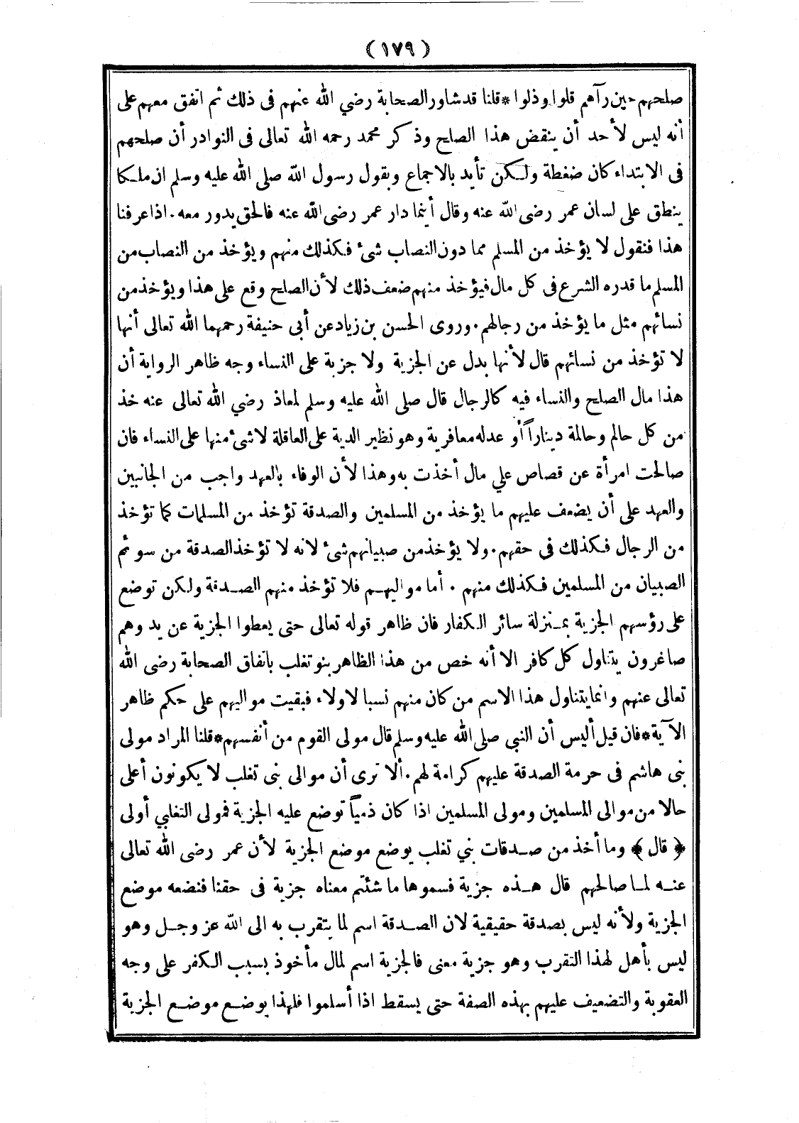 صُلْحَهُمْ حِينَ رَآهُمْ قَلُّوا وَذَلُّوا قُلْنَا قَدْ شَاوَرَ الصَّحَابَةَ - رَضِيَ اللَّهُ عَنْهُمْ - فِي ذَلِكَ، ثُمَّ اتَّفَقَ مَعَهُمْ عَلَى أَنَّهُ لَيْسَ لِأَحَدٍ أَنْ يَنْقُضَ هَذَا الصُّلْحَ، وَذَكَرَ مُحَمَّدٌ - رَحِمَهُ اللَّهُ تَعَالَى - فِي النَّوَادِرِ أَنَّ صُلْحَهُمْ فِي الِابْتِدَاءِ كَانَ ضَغْطَةً وَلَكِنْ تَأَيَّدَ بِالْإِجْمَاعِ وَبِقَوْلِ رَسُولِ اللَّهِ - صَلَّى اللَّهُ عَلَيْهِ وَسَلَّمَ - إنَّ مَلَكًا يَنْطِقُ عَلَى لِسَانِ عُمَرَ - رَضِيَ اللَّهُ عَنْهُ -، وَقَالَ: أَيْنَمَا دَارَ عُمَرُ - رَضِيَ اللَّهُ عَنْهُ - فَالْحَقُّ يَدُورُ مَعَهُ. إذَا عَرَفْنَا هَذَا فَنَقُولُ لَا يُؤْخَذُ مِنْ الْمُسْلِمِ مِمَّا دُونَ النِّصَابِ شَيْءٌ، فَكَذَلِكَ مِنْهُمْ وَيُؤْخَذُ مِنْ النِّصَابِ مِنْ الْمُسْلِمِ مَا قَدَّرَهُ الشَّرْعُ فِي كُلِّ مَالٍ فَيُؤْخَذُ مِنْهُمْ ضَعْفُ ذَلِكَ؛ لِأَنَّ الصُّلْحَ وَقَعَ عَلَى هَذَا وَيُؤْخَذُ مِنْ نِسَائِهِمْ مِثْلُ مَا يُؤْخَذُ مِنْ رِجَالِهِمْ.