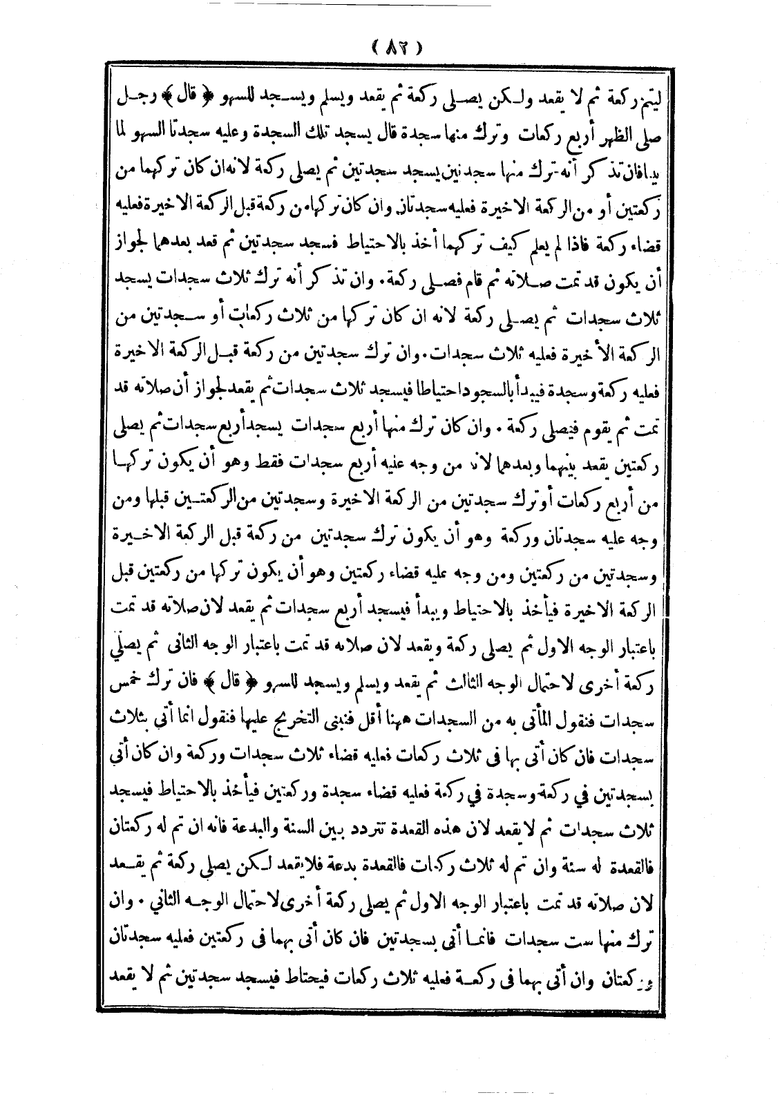 وَإِنْ تَرَكَ سَجْدَتَيْنِ مِنْ رَكْعَةٍ قَبْلَ الرَّكْعَةِ الْأَخِيرَةِ فَعَلَيْهِ رَكْعَةٌ وَسَجْدَةٌ فَيَبْدَأُ بِالسُّجُودِ احْتِيَاطًا فَيَسْجُدُ ثَلَاثَ سَجَدَاتٍ، ثُمَّ يَقْعُدُ لِجَوَازِ أَنَّ صَلَاتَهُ قَدْ تَمَّتْ ثُمَّ يَقُومُ فَيُصَلِّي رَكْعَةً، وَإِنْ كَانَ تَرَكَ مِنْهَا أَرْبَعَ سَجَدَاتٍ يَسْجُدُ أَرْبَعَ سَجَدَاتٍ، ثُمَّ يُصَلِّي رَكْعَتَيْنِ يَقْعُدُ بَيْنَهُمَا وَبَعْدَهُمَا؛ لِأَنَّهُ مِنْ وَجْهٍ عَلَيْهِ أَرْبَعُ سَجَدَاتٍ فَقَطْ، وَهُوَ أَنْ يَكُونَ تَرَكَهَا مِنْ أَرْبَعِ رَكَعَاتٍ أَوْ تَرَكَ سَجْدَتَيْنِ مِنْ الرَّكْعَةِ الْأَخِيرَةِ وَسَجْدَتَيْنِ مِنْ الرَّكْعَتَيْنِ قَبْلَهَا، وَمِنْ وَجْهٍ عَلَيْهِ سَجْدَتَانِ وَرَكْعَةٌ، وَهُوَ أَنْ يَكُونَ تَرَكَ سَجْدَتَيْنِ مِنْ رَكْعَةٍ قَبْلَ الرَّكْعَةِ الْأَخِيرَةِ وَسَجْدَتَيْنِ مِنْ رَكْعَتَيْنِ، وَمِنْ وَجْهٍ عَلَيْهِ قَضَاءُ رَكْعَتَيْنِ، وَهُوَ أَنْ يَكُونَ تَرَكَهَا مِنْ رَكْعَتَيْنِ قَبْلَ الرَّكْعَةِ الْأَخِيرَةِ فَيَأْخُذُ بِالِاحْتِيَاطِ وَيَبْدَأُ فَيَسْجُدُ أَرْبَعَ سَجَدَاتٍ ثُمَّ يَقْعُدُ؛ لِأَنَّ صَلَاتَهُ قَدْ تَمَّتْ بِاعْتِبَارِ الْوَجْهِ الْأَوَّلِ، ثُمَّ يُصَلِّي رَكْعَةً وَيَقْعُدُ؛ لِأَنَّ صَلَاتَهُ قَدْ تَمَّتْ بِاعْتِبَارِ الْوَجْهِ الثَّانِي، ثُمَّ يُصَلِّي رَكْعَةً أُخْرَى لِاحْتِمَالِ الْوَجْهِ الثَّالِثِ، ثُمَّ يَقْعُدُ وَيُسَلِّمُ وَيَسْجُدُ لِلسَّهْوِ.