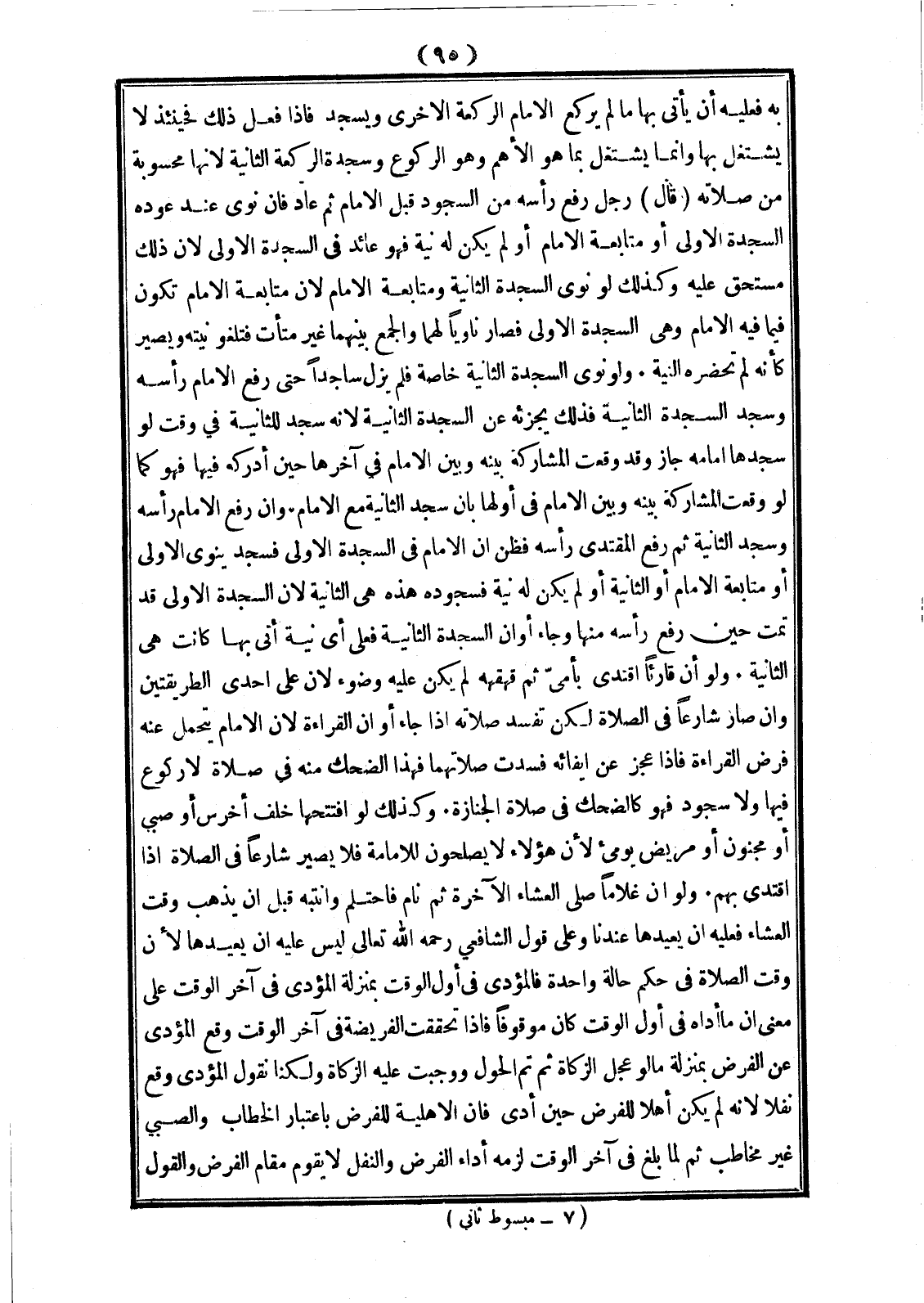بِهِ فَعَلَيْهِ أَنْ يَأْتِيَ بِهَا مَا لَمْ يَرْكَعْ الْإِمَامُ الرَّكْعَةَ الْأُخْرَى وَيَسْجُدْ فَإِذَا فَعَلَ ذَلِكَ فَحِينَئِذٍ لَا يَشْتَغِلُ بِهَا وَإِنَّمَا يَشْتَغِلُ بِمَا هُوَ الْأَهَمُّ، وَهُوَ الرُّكُوعُ، وَسَجْدَةُ الرَّكْعَةِ الثَّانِيَةِ؛ لِأَنَّهَا مَحْسُوبَةٌ مِنْ صَلَاتِهِ.