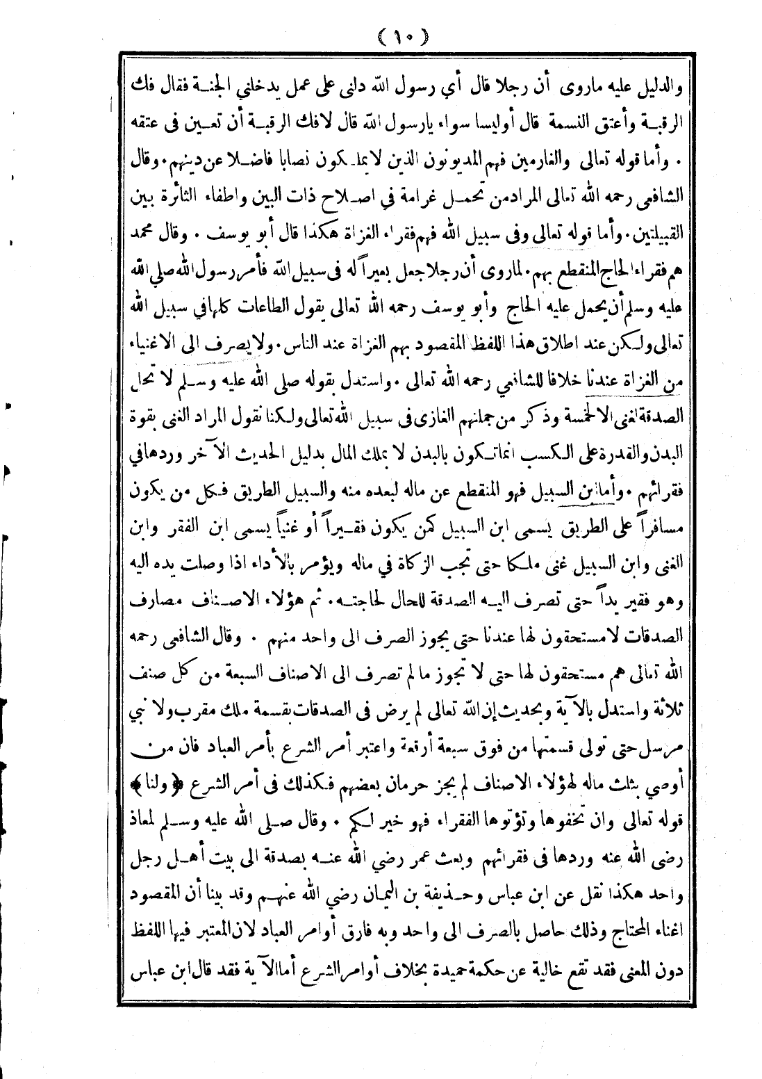 وَالدَّلِيلُ عَلَيْهِ مَا رُوِيَ «أَنَّ رَجُلًا قَالَ أَيْ رَسُولَ اللَّهِ دُلَّنِي عَلَى عَمَلٍ يُدْخِلُنِي الْجَنَّةَ فَقَالَ: فُكَّ الرَّقَبَةَ وَأَعْتِقْ النَّسَمَةَ قَالَ: أَوَ لَيْسَا سَوَاءً يَا رَسُولَ اللَّهِ قَالَ: لَا، فَكُّ الرَّقَبَةِ أَنْ تُعِينَ فِي عِتْقِهِ». وَأَمَّا قَوْله تَعَالَى {وَالْغَارِمِينَ} [التوبة: 60] فَهُمْ الْمَدْيُونُونَ الَّذِينَ لَا يَمْلِكُونَ نِصَابًا فَاضِلًا عَنْ دَيْنِهِمْ. وَقَالَ الشَّافِعِيُّ - رَحِمَهُ اللَّهُ تَعَالَى -: الْمُرَادُ مَنْ تَحَمَّلَ غَرَامَةً فِي إصْلَاحِ ذَاتِ الْبَيْنِ وَإِطْفَاءِ الثَّائِرَةِ بَيْنَ الْقَبِيلَتَيْنِ. وَأَمَّا قَوْله تَعَالَى {وَفِي سَبِيلِ اللَّهِ} [التوبة: 60] فَهُمْ فُقَرَاءُ الْغُزَاةِ هَكَذَا قَالَ أَبُو يُوسُفَ. وَقَالَ مُحَمَّدٌ: هُمْ فُقَرَاءُ الْحَاجِّ الْمُنْقَطِعِ بِهِمْ. لِمَا رُوِيَ «أَنَّ رَجُلًا جَعَلَ بَعِيرًا لَهُ فِي سَبِيلِ اللَّهِ فَأَمَرَ رَسُولُ اللَّهِ - صَلَّى اللَّهُ عَلَيْهِ وَسَلَّمَ - أَنْ يُحْمَلَ عَلَيْهِ الْحَاجُّ» وَأَبُو يُوسُفَ - رَحِمَهُ اللَّهُ تَعَالَى - يَقُولُ: الطَّاعَاتُ كُلُّهَا فِي سَبِيلِ اللَّهِ تَعَالَى وَلَكِنْ عِنْدَ إطْلَاقِ هَذَا اللَّفْظِ الْمَقْصُودُ بِهِمْ الْغُزَاةُ عِنْدَ النَّاسِ.