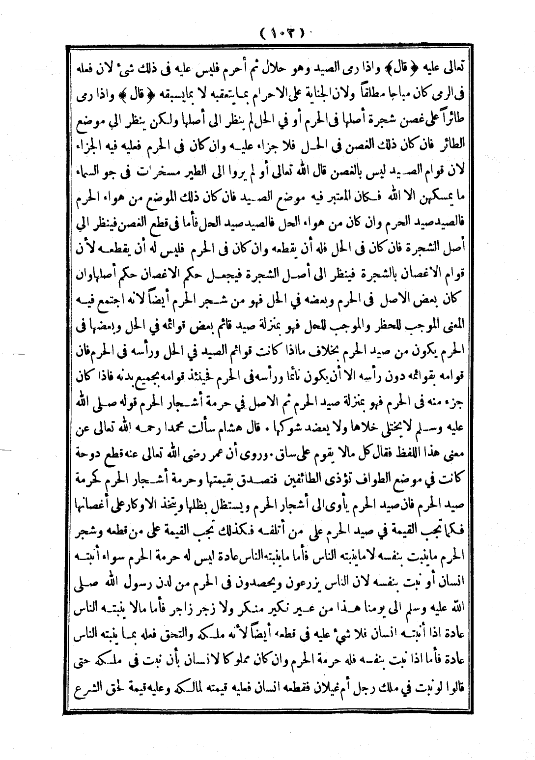 (قَالَ) وَإِذَا رَمَى طَائِرًا عَلَى غُصْنِ شَجَرَةٍ أَصْلُهَا فِي الْحَرَمِ أَوْ فِي الْحِلِّ لَمْ يُنْظَرْ إلَى أَصْلِهَا، وَلَكِنْ يُنْظَرُ إلَى مَوْضِعِ الطَّائِرِ فَإِنْ كَانَ ذَلِكَ الْغُصْنُ فِي الْحِلِّ فَلَا جَزَاءَ عَلَيْهِ، وَإِنْ كَانَ فِي الْحَرَمِ فَعَلَيْهِ فِيهِ الْجَزَاءُ لِأَنَّ قِوَامَ الصَّيْدِ لَيْسَ بِالْغُصْنِ قَالَ اللَّهُ تَعَالَى {أَلَمْ يَرَوْا إلَى الطَّيْرِ مُسَخَّرَاتٍ فِي جَوِّ السَّمَاءِ مَا يُمْسِكُهُنَّ إلَّا اللَّهُ} [النحل: 79] فَكَانَ الْمُعْتَبَرُ فِيهِ مَوْضِعَ الصَّيْدِ فَإِنْ كَانَ ذَلِكَ الْمَوْضِعُ مِنْ هَوَاءِ الْحَرَمِ فَالصَّيْدُ صَيْدُ الْحَرَمِ، وَإِنْ كَانَ مِنْ هَوَاءِ الْحِلِّ فَالصَّيْدُ صَيْدُ الْحِلِّ فَأَمَّا فِي قَطْعِ الْغُصْنِ فَيُنْظَرُ إلَى أَصْلِ الشَّجَرَةِ فَإِنْ كَانَ فِي الْحِلِّ فَلَهُ أَنْ يَقْطَعَهُ، وَإِنْ كَانَ فِي الْحَرَمِ فَلَيْسَ لَهُ أَنْ يَقْطَعَهُ لِأَنَّ قِوَامَ الْأَغْصَانِ بِالشَّجَرَةِ فَيُنْظَرُ إلَى أَصْلِ الشَّجَرَةِ فَيُجْعَلُ حُكْمُ الْأَغْصَانِ حُكْمَ أَصْلِهَا، وَإِنْ كَانَ بَعْضُ الْأَصْلِ فِي الْحَرَمِ، وَبَعْضُهُ فِي الْحِلِّ فَهُوَ مِنْ شَجَرِ الْحَرَمِ أَيْضًا لِأَنَّهُ اجْتَمَعَ فِيهِ الْمَعْنَى الْمُوجِبُ لِلْحَظْرِ وَالْمُوجِبُ لِلْحِلِّ فَهُوَ بِمَنْزِلَةِ صَيْدٍ قَائِمُ بَعْضِ قَوَائِمِهِ فِي الْحِلِّ وَبَعْضُهَا فِي الْحَرَمِ يَكُونُ مِنْ صَيْدِ الْحَرَمِ بِخِلَافِ مَا إذَا كَانَتْ قَوَائِمُ الصَّيْدِ فِي الْحِلِّ وَرَأْسُهُ فِي الْحَرَمِ فَإِنَّ قِوَامَهُ بِقَوَائِمِهِ دُونَ رَأْسِهِ إلَّا أَنْ يَكُونَ نَائِمًا وَرَأْسُهُ فِي الْحَرَمِ فَحِينَئِذٍ قِوَامُهُ بِجَمِيعِ بَدَنِهِ فَإِذَا كَانَ جُزْءٌ مِنْهُ فِي الْحَرَمِ فَهُوَ بِمَنْزِلَةِ صَيْدِ الْحَرَمِ ثُمَّ الْأَصْلُ فِي حُرْمَةِ أَشْجَارِ الْحَرَمِ قَوْلُهُ - صَلَّى اللَّهُ عَلَيْهِ وَسَلَّمَ - «لَا يُخْتَلَى خَلَاهَا، وَلَا يُعْضَدُ شَوْكُهَا» قَالَ هِشَامٌ سَأَلْت مُحَمَّدًا - رَحِمَهُ اللَّهُ تَعَالَى - عَنْ مَعْنَى هَذَا اللَّفْظِ فَقَالَ كُلُّ مَا لَا يَقُومُ عَلَى سَاقٍ. وَرُوِيَ أَنَّ عُمَرَ - رَضِيَ اللَّهُ تَعَالَى عَنْهُ - قَطَعَ دَوْحَةً كَانَتْ فِي مَوْضِعِ الطَّوَافِ تُؤْذِي الطَّائِفِينَ فَتَصَدَّقَ بِقِيمَتِهَا، وَحُرْمَةُ أَشْجَارِ الْحَرَمِ كَحُرْمَةِ صَيْدِ الْحَرَمِ فَإِنَّ صَيْدَ الْحَرَمِ يَأْوِي إلَى أَشْجَارِ الْحَرَمِ، وَيَسْتَظِلُّ بِظِلِّهَا، وَيَتَّخِذُ الْأَوْكَارَ عَلَى أَغْصَانِهَا فَكَمَا تَجِبُ الْقِيمَةُ فِي صَيْدِ الْحَرَمِ عَلَى مَنْ أَتْلَفَهُ فَكَذَلِكَ تَجِبُ الْقِيمَةُ عَلَى مَنْ قَطَعَهُ، وَشَجَرُ الْحَرَمِ مَا يَنْبُتُ بِنَفْسِهِ لَا مَا يُنْبِتُهُ النَّاسُ فَأَمَّا مَا يُنْبِتُهُ النَّاسُ عَادَةً لَيْسَ لَهُ حُرْمَةُ الْحَرَمِ سَوَاءٌ أَنْبَتَهُ إنْسَانٌ أَوْ نَبَتَ بِنَفْسِهِ لِأَنَّ النَّاسَ يَزْرَعُونَ وَيَحْصُدُونَ فِي الْحَرَمِ مِنْ لَدُنْ رَسُولِ اللَّهِ - صَلَّى اللَّهُ عَلَيْهِ وَسَلَّمَ - إلَى يَوْمِنَا هَذَا مِنْ غَيْرِ نَكِيرِ مُنْكِرٍ، وَلَا زَجْرِ زَاجِرٍ فَأَمَّا مَا لَا يُنْبِتُهُ النَّاسُ عَادَةً إذَا أَنْبَتَهُ إنْسَانٌ فَلَا شَيْءَ عَلَيْهِ فِي قَطْعِهِ أَيْضًا لِأَنَّهُ مِلْكُهُ، وَالْتَحَقَ فِعْلُهُ بِمَا يَنْبُتُهُ النَّاسُ عَادَةً فَأَمَّا إذَا نَبَتَ بِنَفْسِهِ فَلَهُ حُرْمَةُ الْحَرَمِ، وَإِنْ كَانَ مَمْلُوكًا لِإِنْسَانٍ بِأَنْ نَبَتَ فِي مِلْكِهِ حَتَّى قَالُوا لَوْ نَبَتَ فِي مِلْكِ رِجْلِ أُمِّ غِيلَانٍ فَقَطَعَهُ إنْسَانٌ فَعَلَيْهِ قِيمَتُهُ لِمَالِكِهِ، وَعَلَيْهِ قِيمَتُهُ لِحَقِّ الشَّرْعِ