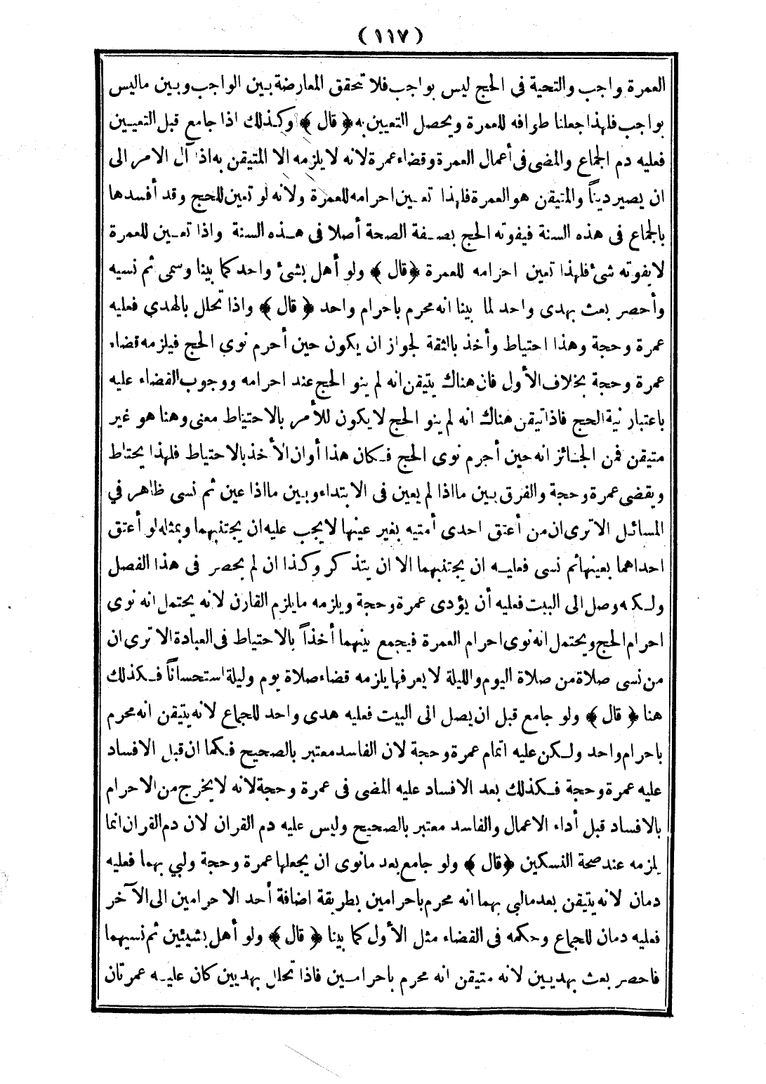 (قَالَ) وَلَوْ جَامَعَ قَبْلَ أَنْ يَصِلَ إلَى الْبَيْتِ فَعَلَيْهِ هَدْيٌ وَاحِدٌ لِلْجِمَاعِ لِأَنَّهُ يَتَيَقَّنُ أَنَّهُ مُحْرِمٌ بِإِحْرَامٍ وَاحِدٍ، وَلَكِنْ عَلَيْهِ إتْمَامُ عُمْرَةٍ وَحَجَّةٍ لِأَنَّ الْفَاسِدَ مُعْتَبَرٌ بِالصَّحِيحِ فَكَمَا أَنَّ قَبْلَ الْإِفْسَادِ عَلَيْهِ عُمْرَةٌ وَحَجَّةٌ فَكَذَلِكَ بَعْدَ الْإِفْسَادِ عَلَيْهِ الْمُضِيُّ فِي عُمْرَةٍ وَحَجَّةٍ لِأَنَّهُ لَا يَخْرُجُ مِنْ الْإِحْرَامِ بِالْإِفْسَادِ قَبْلَ أَدَاءِ الْأَعْمَالِ، وَالْفَاسِدُ مُعْتَبَرٌ بِالصَّحِيحِ، وَلَيْسَ عَلَيْهِ دَمُ الْقِرَانِ لِأَنَّ دَمَ الْقِرَانِ إنَّمَا يَلْزَمُهُ عِنْدَ صِحَّةِ النُّسُكَيْنِ.