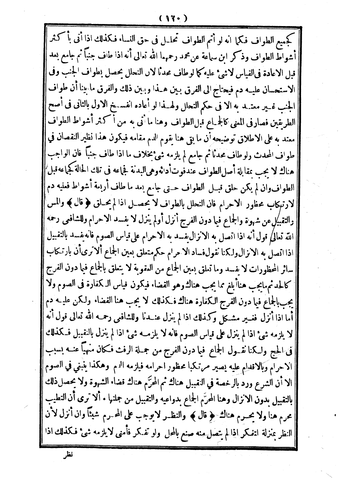 (قَالَ): وَالنَّظَرُ لَا يُوجِبُ عَلَى الْمُحْرِمِ شَيْئًا وَإِنْ أَنْزَلَ؛ لِأَنَّ النَّظَرَ بِمَنْزِلَةِ التَّفَكُّرِ إذَا لَمْ يَتَّصِلْ مِنْهُ صُنْعٌ بِالْمَحِلِّ، وَلَوْ تَفَكَّرَ فَأَمْنَى لَا يَلْزَمُهُ شَيْءٌ فَكَذَلِكَ إذَا