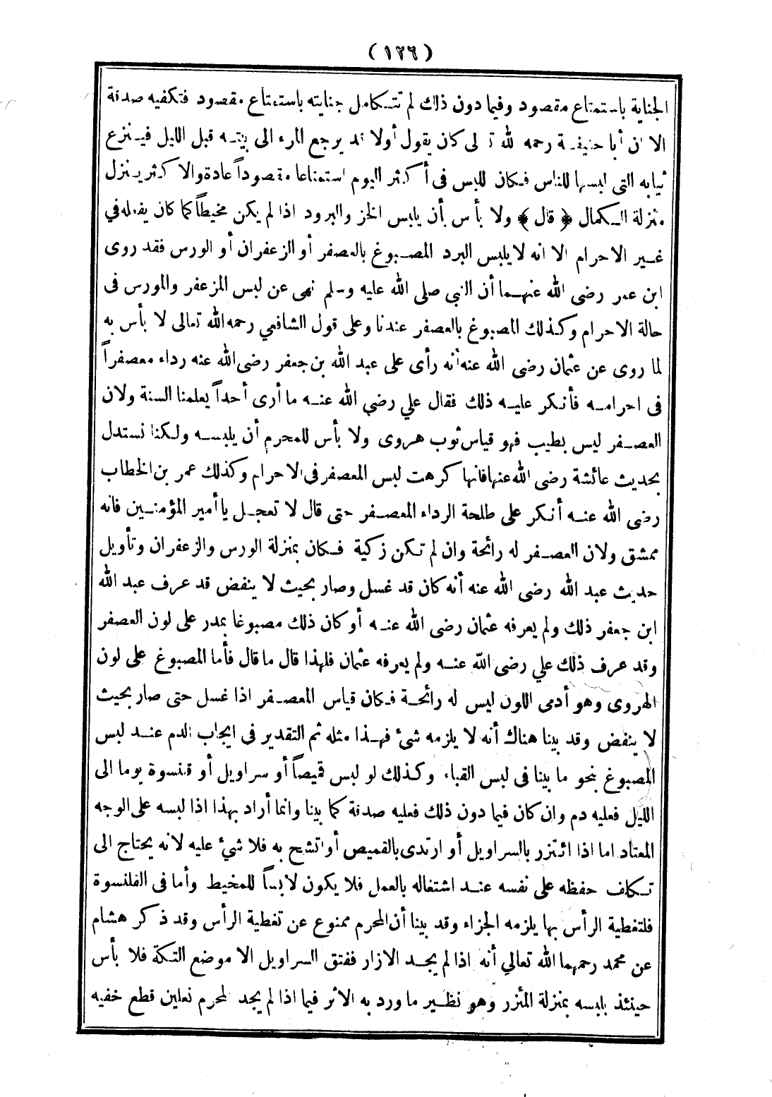 (قَالَ): وَلَا بَأْسَ بِأَنْ يَلْبَسَ الْخَزَّ وَالْبُرُودَ إذَا لَمْ يَكُنْ مَخِيطًا كَمَا كَانَ يَفْعَلُهُ فِي غَيْرِ الْإِحْرَامِ إلَّا أَنَّهُ لَا يَلْبَسُ الْبُرْدَ الْمَصْبُوغَ بِالْعُصْفُرِ أَوْ الزَّعْفَرَانِ أَوْ الْوَرْسِ فَقَدْ رَوَى ابْنُ عُمَرَ - رَضِيَ اللَّهُ تَعَالَى عَنْهُمَا - «أَنَّ النَّبِيَّ - صَلَّى اللَّهُ عَلَيْهِ وَسَلَّمَ - نَهَى عَنْ لُبْسِ الْمُزَعْفَرِ وَالْمُوَرَّسِ فِي حَالَةِ الْإِحْرَامِ»، وَكَذَلِكَ الْمَصْبُوغُ بِالْعُصْفُرِ عِنْدَنَا، وَعَلَى قَوْلِ الشَّافِعِيِّ - رَحِمَهُ اللَّهُ تَعَالَى - لَا بَأْسَ بِهِ لِمَا رُوِيَ عَنْ عُثْمَانَ - رَضِيَ اللَّهُ عَنْهُ - أَنَّهُ رَأَى عَلَى عَبْدِ اللَّهِ بْنِ جَعْفَرٍ - رَضِيَ اللَّهُ عَنْهُ - رِدَاءً مُعَصْفَرًا فِي إحْرَامِهِ فَأَنْكَرَ عَلَيْهِ ذَلِكَ، فَقَالَ عَلِيٌّ - رَضِيَ اللَّهُ عَنْهُ -: مَا أَرَى أَحَدًا يُعَلِّمُنَا السُّنَّةَ، وَلِأَنَّ الْعُصْفُرَ لَيْسَ بِطِيبٍ فَهُوَ قِيَاسُ ثَوْبٍ هَرَوِيٍّ وَلَا بَأْسَ لِلْمُحْرِمِ أَنْ يَلْبَسَهُ، وَلَكِنَّا نَسْتَدِلُّ بِحَدِيثِ عَائِشَةَ - رَضِيَ اللَّهُ عَنْهَا - فَإِنَّهَا كَرِهَتْ لُبْسَ الْمُعَصْفَرِ فِي الْإِحْرَامِ، وَكَذَلِكَ عُمَرُ بْنُ الْخَطَّابِ - رَضِيَ اللَّهُ عَنْهُ - أَنْكَرَ عَلَى طَلْحَةَ الرِّدَاءَ الْمُعَصْفَرَ حَتَّى قَالَ: لَا تَعْجَلْ يَا أَمِيرَ الْمُؤْمِنِينَ فَإِنَّهُ مُمَشَّقٌ، وَلِأَنَّ الْعُصْفُرَ لَهُ رَائِحَةٌ، وَإِنْ لَمْ تَكُنْ زَكِيَّةً فَكَانَ بِمَنْزِلَةِ الْوَرْسِ وَالزَّعْفَرَانِ، وَتَأْوِيلُ حَدِيثِ عَبْدِ اللَّهِ - رَضِيَ اللَّهُ عَنْهُ - أَنَّهُ كَانَ قَدْ غُسِلَ وَصَارَ بِحَيْثُ لَا يُنْفَضُ قَدْ عَرَفَ عَبْدُ اللَّهِ بْنُ جَعْفَرٍ ذَلِكَ، وَلَمْ يَعْرِفْهُ عُثْمَانُ - رَضِيَ اللَّهُ عَنْهُ - أَوْ كَانَ ذَلِكَ مَصْبُوغًا بِمَدَرٍ عَلَى لَوْنِ الْعُصْفُرِ، وَقَدْ عَرَفَ ذَلِكَ عَلِيٌّ - رَضِيَ اللَّهُ عَنْهُ -، وَلَمْ يَعْرِفْهُ عُثْمَانُ فَلِهَذَا قَالَ مَا قَالَ فَأَمَّا الْمَصْبُوغُ عَلَى لَوْنِ الْهَرَوِيِّ هُوَ أَدْمَى اللَّوْنِ لَيْسَ لَهُ رَائِحَةٌ فَكَانَ قِيَاسَ الْمُعَصْفَرِ إذَا غُسِلَ حَتَّى صَارَ بِحَيْثُ لَا يُنْفَضُ، وَقَدْ بَيَّنَّا هُنَاكَ أَنَّهُ لَا يَلْزَمُهُ شَيْءٌ فَهَذَا مِثْلُهُ، ثُمَّ التَّقْدِيرُ فِي إيجَابِ الدَّمِ عِنْدَ لُبْسِ الْمَصْبُوغِ، بِنَحْوِ مَا بَيَّنَّا فِي لُبْسِ الْقَبَاءِ.