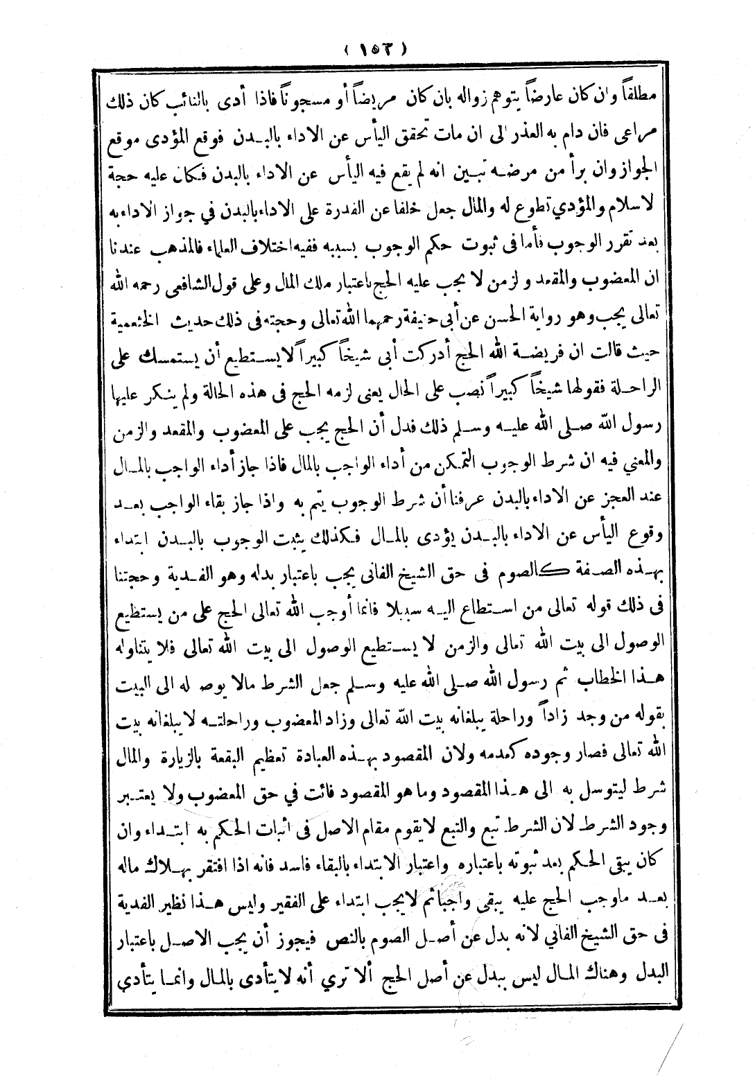 وَإِنْ كَانَ عَارِضًا يُتَوَهَّمُ زَوَالُهُ بِأَنْ كَانَ مَرِيضًا أَوْ مَسْجُونًا، فَإِذَا أَدَّى بِالنَّائِبِ كَانَ ذَلِكَ مُرَاعًى، فَإِنْ دَامَ بِهِ الْعُذْرُ إلَى أَنْ مَاتَ تَحَقَّقَ الْيَأْسُ عَنْ الْأَدَاءِ بِالْبَدَنِ فَوَقَعَ الْمُؤَدَّى مَوْقِعَ الْجَوَازِ، وَإِنْ بَرِئَ مِنْ مَرَضِهِ تَبَيَّنَ أَنَّهُ لَمْ يَقَعْ فِيهِ الْيَأْسُ عَنْ الْأَدَاءِ بِالْبَدَنِ فَكَانَ عَلَيْهِ حَجَّةُ الْإِسْلَامِ وَالْمُؤَدِّي تَطَوَّعَ لَهُ وَالْمَالُ جُعِلَ خَلَفًا عَنْ الْقُدْرَةِ عَلَى الْأَدَاءِ بِالْبَدَنِ فِي جَوَازِ الْأَدَاءِ بِهِ بَعْدَ تَقَرُّرِ الْوُجُوبِ، فَأَمَّا فِي ثُبُوتِ حُكْمِ الْوُجُوبِ بِسَبَبِهِ فَفِيهِ اخْتِلَافُ الْعُلَمَاءِ فَالْمَذْهَبُ عِنْدَنَا أَنَّ الْمَعْضُوبَ وَالْمُقْعَدَ وَالزَّمِنَ لَا يَجِبُ عَلَيْهِ الْحَجُّ بِاعْتِبَارِ مِلْكِ الْمَالِ، وَعَلَى قَوْلِ الشَّافِعِيِّ - رَحِمَهُ اللَّهُ تَعَالَى - يَجِبُ وَهُوَ رِوَايَةُ الْحَسَنِ عَنْ أَبِي حَنِيفَةَ - رَحِمَهُمَا اللَّهُ تَعَالَى - وَحُجَّتُهُ فِي ذَلِكَ حَدِيثُ الْخَثْعَمِيَّةِ حَيْثُ قَالَتْ: إنَّ فَرِيضَةَ اللَّهِ الْحَجُّ أَدْرَكْتُ أَبَى شَيْخًا كَبِيرًا لَا يَسْتَطِيعُ أَنْ يَسْتَمْسِكَ عَلَى الرَّاحِلَةِ فَقَوْلُهَا " شَيْخًا كَبِيرًا " نَصْبٌ عَلَى الْحَالِ يَعْنِي لَزِمَهُ الْحَجُّ فِي هَذِهِ الْحَالَةِ، وَلَمْ يُنْكِرْ عَلَيْهَا رَسُولُ اللَّهِ - صَلَّى اللَّهُ عَلَيْهِ وَسَلَّمَ - ذَلِكَ فَدَلَّ أَنَّ الْحَجَّ يَجِبُ عَلَى الْمَعْضُوبِ وَالْمُقْعَدِ وَالزَّمِنِ، وَالْمَعْنَى فِيهِ أَنَّ شَرْطَ الْوُجُوبِ التَّمَكُّنُ مِنْ أَدَاءِ الْوَاجِبِ بِالْمَالِ، فَإِذَا جَازَ أَدَاءُ الْوَاجِبِ بِالْمَالِ عِنْدَ الْعَجْزِ عَنْ الْأَدَاءِ بِالْبَدَنِ عَرَفْنَا أَنَّ شَرْطَ الْوُجُوبِ يَتِمُّ بِهِ. وَإِذَا جَازَ بَقَاءُ الْوَاجِبِ بَعْدَ وُقُوعِ الْيَأْسِ عَنْ الْأَدَاءِ بِالْبَدَنِ يُؤَدَّى بِالْمَالِ فَكَذَلِكَ يَثْبُتُ الْوُجُوبُ بِالْبَدَنِ ابْتِدَاءً بِهَذِهِ الصِّفَةِ كَالصَّوْمِ فِي حَقِّ الشَّيْخِ الْفَانِي يَجِبُ بِاعْتِبَارِ بَدَلِهِ وَهُوَ الْفِدْيَةُ.