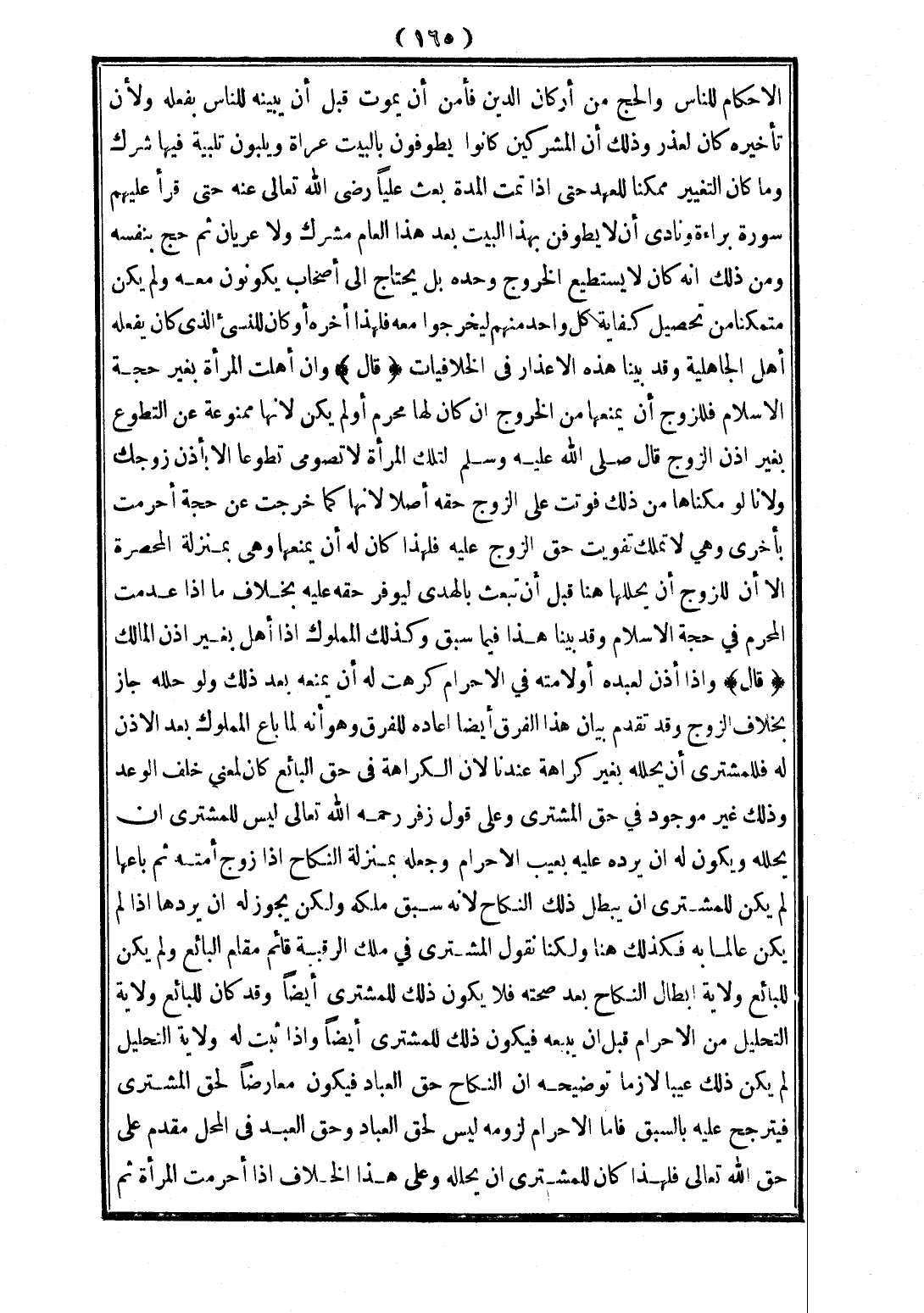الْأَحْكَامِ لِلنَّاسِ وَالْحَجُّ مِنْ أَرْكَانِ الدِّينِ فَأَمِنَ أَنْ يَمُوتَ قَبْلَ أَنْ يُبَيِّنَهُ لِلنَّاسِ بِفِعْلِهِ وَلِأَنَّ تَأْخِيرَهُ كَانَ لِعُذْرٍ، وَذَلِكَ أَنَّ الْمُشْرِكِينَ كَانُوا يَطُوفُونَ بِالْبَيْتِ عُرَاةً وَيُلَبُّونَ تَلْبِيَةً فِيهَا شِرْكٌ وَمَا كَانَ التَّغْيِيرُ مُمْكِنًا لِلْعَهْدِ حَتَّى إذَا تَمَّتْ الْمُدَّةُ بَعَثَ عَلِيًّا - رَضِيَ اللَّهُ تَعَالَى عَنْهُ - حَتَّى قَرَأَ عَلَيْهِمْ سُورَةَ بَرَاءَةٍ وَنَادَى أَنْ لَا يَطُوفَنَّ بِهَذَا الْبَيْتِ بَعْدَ هَذَا الْعَامِ مُشْرِكٌ وَلَا عُرْيَانُ، ثُمَّ حَجَّ بِنَفْسِهِ وَمِنْ ذَلِكَ أَنَّهُ كَانَ لَا يَسْتَطِيعُ الْخُرُوجَ وَحْدَهُ بَلْ يَحْتَاجُ إلَى أَصْحَابِهِ يَكُونُونَ مَعَهُ، وَلَمْ يَكُنْ مُتَمَكِّنًا مِنْ تَحْصِيلِ كِفَايَةِ كُلِّ وَاحِدٍ مِنْهُمْ لِيَخْرُجُوا مَعَهُ فَلِهَذَا أَخَّرَهُ أَوْ كَانَ لِلنَّسِيءِ الَّذِي كَانَ يَفْعَلُهُ أَهْلُ الْجَاهِلِيَّةِ، وَقَدْ بَيَّنَّا هَذِهِ الْأَعْذَارَ فِي الْخِلَافِيَّاتِ