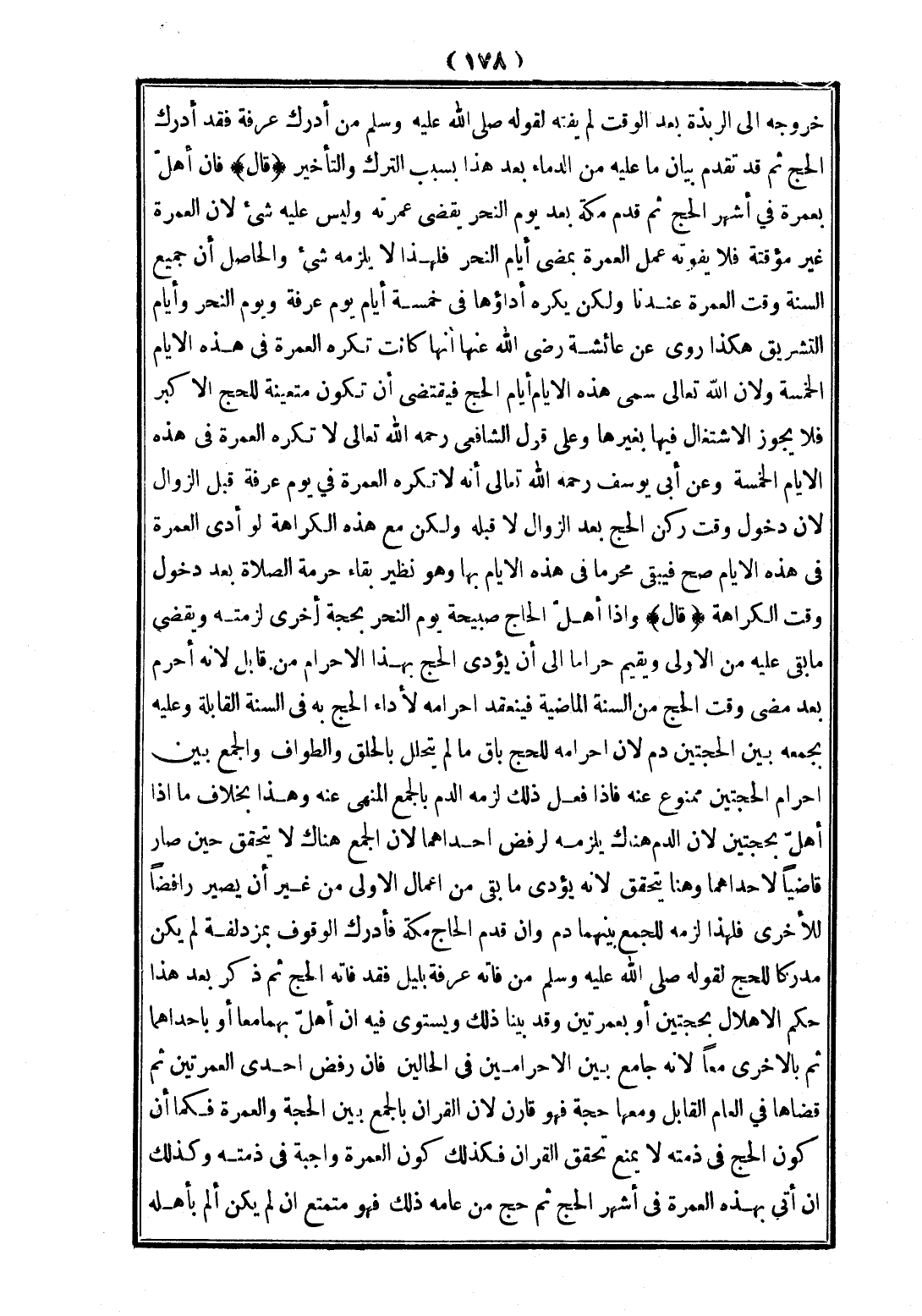 (قَالَ): فَإِنْ أَهَلَّ بِعُمْرَةٍ فِي أَشْهُرِ الْحَجِّ، ثُمَّ قَدِمَ مَكَّةَ بَعْدَ يَوْمِ النَّحْرِ يَقْضِي عُمْرَتَهُ، وَلَيْسَ عَلَيْهِ شَيْءٌ؛ لِأَنَّ الْعُمْرَةَ غَيْرُ مُؤَقَّتَةٍ فَلَا يَفُوتُهُ عَمَلُ الْعُمْرَةِ بِمُضِيِّ أَيَّامِ النَّحْرِ فَلِهَذَا لَا يَلْزَمُهُ شَيْءٌ وَالْحَاصِلُ أَنَّ جَمِيعَ السَّنَةِ وَقْتُ الْعُمْرَةِ عِنْدَنَا، وَلَكِنْ يُكْرَهُ أَدَاؤُهَا فِي خَمْسَةِ أَيَّامٍ يَوْمِ عَرَفَةَ وَيَوْمِ النَّحْرِ وَأَيَّامِ التَّشْرِيقِ، هَكَذَا رُوِيَ عَنْ عَائِشَةَ - رَضِيَ اللَّهُ عَنْهَا - أَنَّهَا كَانَتْ تَكْرَهُ الْعُمْرَةَ فِي هَذِهِ الْأَيَّامِ الْخَمْسَةِ، وَلِأَنَّ اللَّهَ تَعَالَى سَمَّى هَذِهِ الْأَيَّامَ أَيَّامَ الْحَجِّ فَيَقْتَضِي أَنْ تَكُونَ مُتَعَيِّنَةً لِلْحَجِّ الْأَكْبَرِ فَلَا يَجُوزُ الِاشْتِغَالُ فِيهَا بِغَيْرِهَا، وَعَلَى قَوْلِ الشَّافِعِيِّ - رَحِمَهُ اللَّهُ تَعَالَى - لَا تُكْرَهُ الْعُمْرَةُ فِي هَذِهِ الْأَيَّامِ الْخَمْسَةِ، وَعَنْ أَبِي يُوسُفَ - رَحِمَهُ اللَّهُ تَعَالَى - أَنَّهُ لَا تُكْرَهُ الْعُمْرَةُ فِي يَوْمِ عَرَفَةَ قَبْلَ الزَّوَالِ؛ لِأَنَّ دُخُولَ وَقْتِ رُكْنِ الْحَجِّ بَعْدَ الزَّوَالِ لَا قَبْلَهُ، وَلَكِنْ مَعَ هَذِهِ الْكَرَاهَةِ لَوْ أَدَّى الْعُمْرَةَ فِي هَذِهِ الْأَيَّامِ صَحَّ فَيَبْقَى مُحْرِمًا فِي هَذِهِ الْأَيَّامِ بِهَا وَهُوَ نَظِيرُ بَقَاءِ حُرْمَةِ الصَّلَاةِ بَعْدَ دُخُولِ وَقْتِ الْكَرَاهَةِ