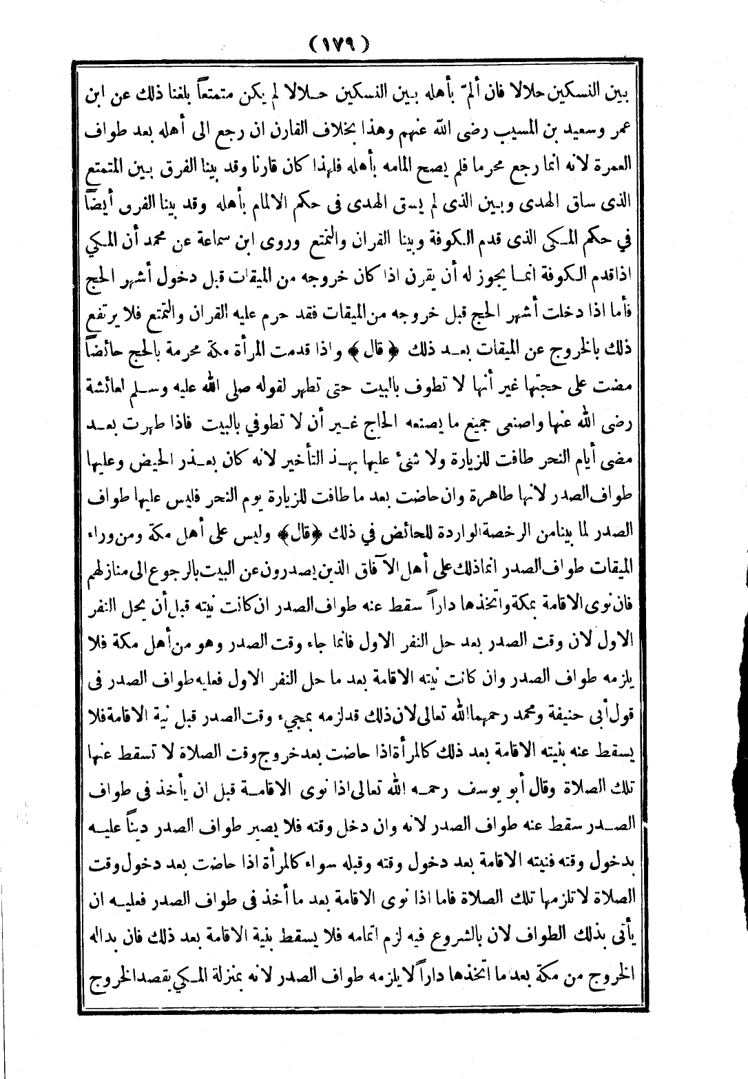 بَيْنَ النُّسُكَيْنِ حَلَالًا فَإِنْ أَلَمَّ بِأَهْلِهِ بَيْنَ النُّسُكَيْنِ حَلَالًا لَمْ يَكُنْ مُتَمَتِّعًا، بَلَغَنَا ذَلِكَ عَنْ ابْنِ عُمَرَ وَسَعِيدِ بْنِ الْمُسَيِّبِ - رَضِيَ اللَّهُ عَنْهُمْ -، وَهَذَا بِخِلَافِ الْقَارِنِ إنْ رَجَعَ إلَى أَهْلِهِ بَعْدَ طَوَافِ الْعُمْرَةِ؛ لِأَنَّهُ إنَّمَا رَجَعَ مُحْرِمًا فَلَمْ يَصِحَّ إلْمَامُهُ بِأَهْلِهِ فَلِهَذَا كَانَ قَارِنًا، وَقَدْ بَيَّنَّا الْفَرْقَ بَيْنَ الْمُتَمَتِّعِ الَّذِي سَاقَ الْهَدْيَ وَبَيْنَ الَّذِي لَمْ يَسُقْ الْهَدْيَ فِي حُكْمِ الْإِلْمَامِ بِأَهْلِهِ، وَقَدْ بَيَّنَّا الْفَرْقَ أَيْضًا فِي حُكْمِ الْمَكِّيِّ الَّذِي قَدِمَ الْكُوفَةَ وَبَيَّنَّا الْقِرَانَ وَالتَّمَتُّعَ. وَرَوَى ابْنُ سِمَاعَةَ عَنْ مُحَمَّدٍ أَنَّ الْمَكِّيَّ إذَا قَدِمَ الْكُوفَةَ إنَّمَا يَجُوزُ لَهُ أَنْ يَقْرِنَ إذَا كَانَ خُرُوجُهُ مِنْ الْمِيقَاتِ قَبْلَ دُخُولِ أَشْهُرِ الْحَجِّ، فَأَمَّا إذَا دَخَلَتْ أَشْهُرُ الْحَجِّ قَبْلَ خُرُوجِهِ مِنْ الْمِيقَاتِ فَقَدْ حَرُمَ عَلَيْهِ الْقِرَانُ وَالتَّمَتُّعُ فَلَا يَرْتَفِعُ ذَلِكَ بِالْخُرُوجِ عَنْ الْمِيقَاتِ بَعْدَ ذَلِكَ