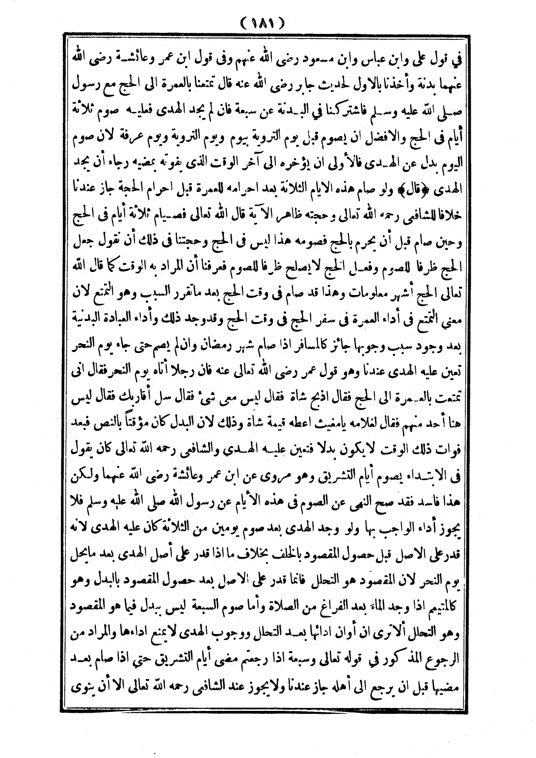 فِي قَوْلِ عَلِيٍّ وَابْنِ عَبَّاسٍ وَابْنِ مَسْعُودٍ - رَضِيَ اللَّهُ عَنْهُمْ - وَفِي قَوْلِ ابْنِ عُمَرَ وَعَائِشَةَ - رَضِيَ اللَّهُ عَنْهُمَا - بَدَنَةٌ وَأَخَذْنَا بِالْأَوَّلِ لِحَدِيثِ جَابِرٍ - رَضِيَ اللَّهُ عَنْهُ - قَالَ: «تَمَتَّعْنَا بِالْعُمْرَةِ إلَى الْحَجِّ مَعَ رَسُولِ اللَّهِ - صَلَّى اللَّهُ عَلَيْهِ وَسَلَّمَ - فَاشْتَرَكْنَا فِي الْبَدَنَةِ عَنْ سَبْعَةٍ» فَإِنْ لَمْ يَجِدْ الْهَدْيَ فَعَلَيْهِ صَوْمُ ثَلَاثَةِ أَيَّامٍ فِي الْحَجِّ. وَالْأَفْضَلُ أَنْ يَصُومَ قَبْلَ يَوْمِ التَّرْوِيَةِ بِيَوْمٍ وَيَوْمَ التَّرْوِيَةِ وَيَوْمَ عَرَفَةَ؛ لِأَنَّ صَوْمَ الْيَوْمِ بَدَلٌ عَنْ الْهَدْيِ فَالْأَوْلَى أَنْ يُؤَخِّرَهُ إلَى آخِرِ الْوَقْتِ الَّذِي يَفُوتُهُ بِمُضِيِّهِ رَجَاءَ أَنْ يَجِدَ الْهَدْيَ