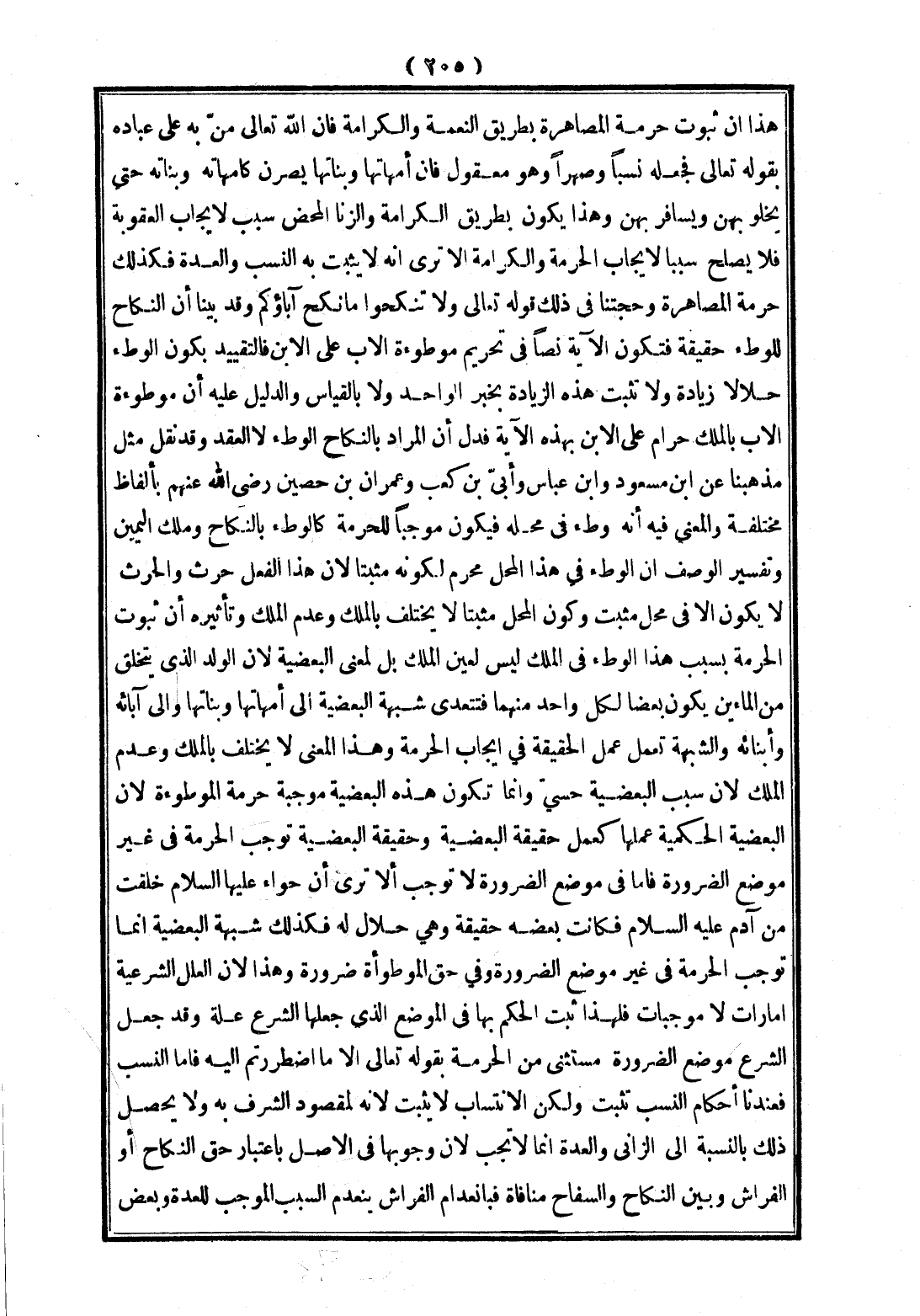 وَدَلِيلُ الْوَصْفِ أَنَّهُ لَوْ وَطِئَهَا، وَقَالَ: عَلِمْتُ أَنَّهَا عَلَيَّ حَرَامٌ يَلْزَمُهُ الْحَدُّ، وَلَوْ جَاءَتْ بِوَلَدٍ لِأَكْثَرَ مِنْ سَنَتَيْنِ حَتَّى عَلِمَ أَنَّ الْعُلُوقَ كَانَ فِي الْعِدَّةِ لَمْ يَثْبُتْ النَّسَبُ، وَلَوْ بَقِيَتْ بَيْنَهُمَا عَلَاقَةٌ مِنْ عَلَائِقِ النِّكَاحِ لَسَقَطَ بِهِ الْحَدُّ وَثَبَتَ النَّسَبُ وَالْعِدَّةُ الْوَاجِبَةُ إثْرَ مَاءٍ مُحْتَرَمٍ؛ لِأَنَّهَا مِنْ حُقُوقِ النِّكَاحِ حَتَّى لَا يَجِبَ بِدُونِ تَوَهُّمِ الدُّخُولِ وَمَا كَانَ مِنْ الْعِدَّةِ لِحَقِّ النِّكَاحِ لَا يُعْتَبَرُ فِيهِ تَوَهُّمُ الدُّخُولِ كَعِدَّةِ الْوَفَاةِ، وَإِذَا ثَبَتَ الْوَصْفُ فَتَأْثِيرُهُ أَنَّ الْمُحَرَّمَ هُوَ الْجَمْعُ بَيْنَهُمَا نِكَاحًا فَلَا يَصِيرُ جَامِعًا بِهَذَا حَتَّى لَمْ يَبْقَ بَيْنَهُ وَبَيْنَ الْأُولَى عُلْقَةٌ مِنْ عَلَائِقِ النِّكَاحِ، وَالْمَقْصُودُ مِنْ هَذَا التَّحْرِيمِ صِيَانَةُ الرَّحِمِ عَنْ الْقَطِيعَةِ الَّتِي تَكُونُ بِسَبَبِ الْمُنَازَعَةِ بَيْنَهُمَا فِي الْقَسْمِ، وَذَلِكَ لَا يَتَحَقَّقُ بَعْدَ الْخُلْعِ وَالتَّطْلِيقَاتِ الثَّلَاثَةِ.