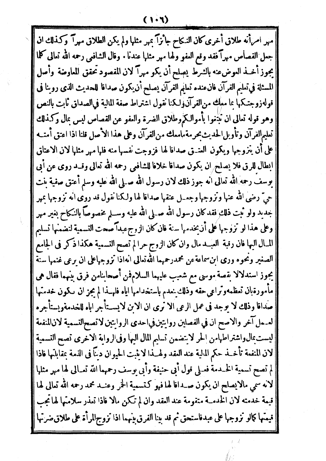 مَهْرَ امْرَأَتِهِ طَلَاقَ أُخْرَى كَانَ النِّكَاحُ جَائِزًا بِمَهْرِ مِثْلِهَا وَلَمْ يَكُنْ الطَّلَاقُ مَهْرًا، وَكَذَلِكَ إنْ جَعَلَ الْقِصَاصَ مَهْرًا فَقَدْ وَقَعَ الْعَفْوُ وَلَهَا مَهْرُ مِثْلِهَا عِنْدَنَا. وَقَالَ الشَّافِعِيُّ - رَحِمَهُ اللَّهُ تَعَالَى - كُلَّمَا يَجُوزُ أَخْذُ الْعِوَضِ عَنْهُ بِالشَّرْطِ يَصْلُحُ أَنْ يَكُونَ مَهْرًا؛ لِأَنَّ الْمَقْصُودَ تَحَقُّقُ الْمُعَاوَضَةِ وَأَصْلُ الْمَسْأَلَةِ فِي تَعْلِيمِ الْقُرْآنِ، فَإِنَّ عِنْدَهُ تَعْلِيمَ الْقُرْآنِ يَصْلُحُ أَنْ يَكُونَ صَدَاقًا لِلْحَدِيثِ الَّذِي رَوَيْنَا فِي قَوْلِهِ «زَوَّجْتُكَهَا بِمَا مَعَكَ مِنْ الْقُرْآنِ» وَلَكِنَّا نَقُولُ: اشْتِرَاطُ صِفَةِ الْمَالِيَّةِ فِي الصَّدَاقِ ثَابِتٌ بِالنَّصِّ وَهُوَ قَوْله تَعَالَى: {أَنْ تَبْتَغُوا بِأَمْوَالِكُمْ} [النساء: 24] وَطَلَاقُ الضَّرَّةِ وَالْعَفْوُ عَنْ الْقِصَاصِ لَيْسَ بِمَالٍ، وَكَذَلِكَ تَعْلِيمُ الْقُرْآنِ وَتَأْوِيلُ الْحَدِيثِ بِحُرْمَةِ مَا مَعَكَ مِنْ الْقُرْآنِ، وَعَلَى هَذَا الْأَصْلِ قُلْنَا: إذَا أَعْتَقَ أُمَّتَهُ عَلَى أَنْ يَتَزَوَّجَهَا، وَيَكُونُ الْعِتْقُ صَدَاقًا لَهَا فَزَوَّجَتْ نَفْسَهَا مِنْهُ فَلَهَا مَهْرُ مِثْلِهَا؛ لِأَنَّ الْإِعْتَاقَ إبْطَالٌ لِلرِّقِّ، فَلَا يَصْلُحُ أَنْ يَكُونَ صَدَاقًا خِلَافًا لِلشَّافِعِيِّ - رَحِمَهُ اللَّهُ تَعَالَى -، وَقَدْ رُوِيَ عَنْ أَبِي يُوسُفَ - رَحِمَهُ اللَّهُ تَعَالَى - أَنَّهُ جَوَّزَ ذَلِكَ؛ لِأَنَّ رَسُولَ اللَّهِ - صَلَّى اللَّهُ عَلَيْهِ وَسَلَّمَ - «أَعْتَقَ صَفِيَّةَ بِنْتَ حَيٍّ - رَضِيَ اللَّهُ عَنْهَا - وَتَزَوَّجَهَا وَجَعَلَ عِتْقَهَا صَدَاقًا لَهَا» وَلَكِنَّا نَقُولُ: قَدْ رُوِيَ أَنَّهُ تَزَوَّجَهَا بِمَهْرٍ جَدِيدٍ، وَلَوْ ثَبَتَ ذَلِكَ فَقَدْ كَانَ رَسُولُ اللَّهِ - صَلَّى اللَّهُ عَلَيْهِ وَسَلَّمَ - مَخْصُوصًا بِالنِّكَاحِ بِغَيْرِ مَهْرٍ، وَعَلَى هَذَا لَوْ تَزَوَّجَهَا عَلَى أَنْ يَخْدُمَهَا سَنَةً، فَإِنْ كَانَ الزَّوْجُ عَبْدًا صَحَّتْ التَّسْمِيَةُ لِتَضَمُّنِهَا تَسْلِيمَ الْمَالِ إلَيْهَا، فَإِنَّ رَقَبَةَ الْعَبْدِ مَالٌ، وَإِنْ كَانَ الزَّوْجُ حُرًّا لَمْ تَصِحَّ التَّسْمِيَةُ، هَكَذَا ذَكَرَ فِي الْجَامِعِ الصَّغِيرِ، وَنَحْوُهُ رَوَى ابْنُ سِمَاعَةَ عَنْ مُحَمَّدٍ رَحِمَهُمَا اللَّهُ تَعَالَى أَنَّهُ إذَا تَزَوَّجَهَا عَلَى أَنْ يَرْعَى غَنَمَهَا سَنَةً يَجُوزُ اسْتِدْلَالًا بِقِصَّةِ مُوسَى مَعَ شُعَيْبٍ - عَلَيْهِمَا السَّلَامُ -، فَمِنْ أَصْحَابِنَا مَنْ فَرَّقَ بَيْنَهُمَا فَقَالَ: هِيَ مَأْمُورَةٌ بِأَنْ تُعَظِّمَهُ وَتُرَاعِيَ حَقَّهُ، وَذَلِكَ يَنْعَدِمُ بِاسْتِخْدَامِهَا إيَّاهُ؛ فَلِهَذَا لَمْ يَجُزْ أَنْ تَكُونَ خِدْمَتُهَا صَدَاقًا، وَذَلِكَ لَا يُوجَدُ فِي عَمَلِ الرَّعْيِ.