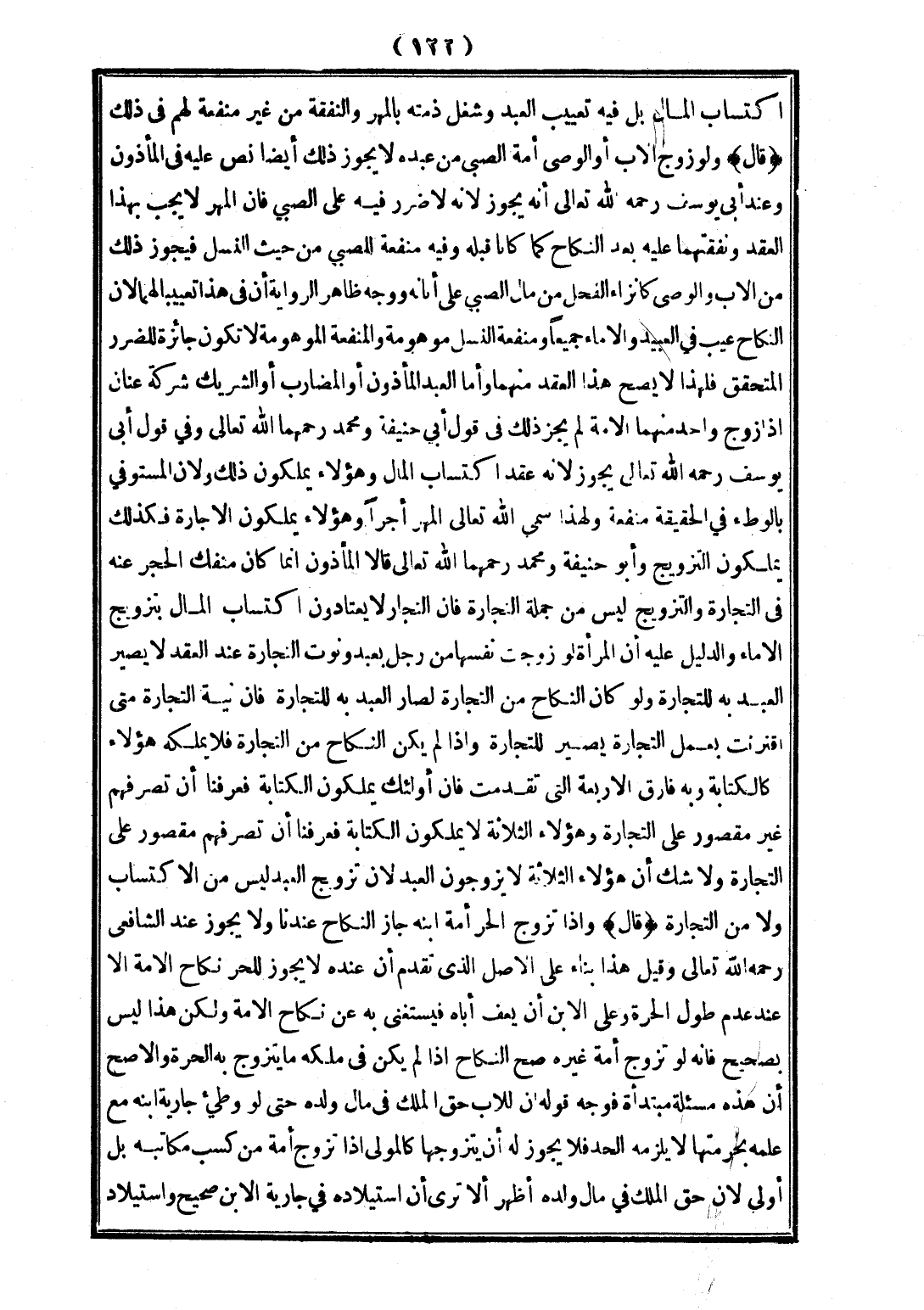 (قَالَ:) وَلَوْ زَوَّجَ الْأَبُ أَوْ الْوَصِيُّ أَمَةَ الصَّبِيِّ مِنْ عَبْدِهِ لَا يَجُوزُ ذَلِكَ أَيْضًا نَصَّ عَلَيْهِ فِي الْمَأْذُونِ، وَعِنْدَ أَبِي يُوسُفَ - رَحِمَهُ اللَّهُ تَعَالَى - أَنَّهُ يَجُوزُ؛ لِأَنَّهُ لَا ضَرَرَ فِيهِ عَلَى الصَّبِيِّ، فَإِنَّ الْمَهْرَ لَا يَجِبُ بِهَذَا الْعَقْدِ، وَنَفَقَتُهُمَا عَلَيْهِ بَعْدَ النِّكَاحِ كَمَا كَانَا قَبْلَهُ، وَفِيهِ مَنْفَعَةٌ لِلصَّبِيِّ مِنْ حَيْثُ النَّسْلِ فَيَجُوزُ ذَلِكَ مِنْ الْأَبِ وَالْوَصِيِّ كَإِنْزَاءِ الْفَحْلِ مِنْ مَالِ الصَّبِيِّ عَلَى أَتَانِهِ، وَوَجْهُ ظَاهِرِ الرِّوَايَةِ أَنَّ فِي هَذَا تَعْيِيبًا لَهُمَا؛ لِأَنَّ النِّكَاحَ عَيْبٌ فِي الْعَبِيدِ وَالْإِمَاءِ جَمِيعًا، وَمَنْفَعَةُ النَّسْلِ مَوْهُوبَةٌ وَالْمَنْفَعَةُ الْمَوْهُوبَةُ لَا تَكُونُ جَائِزَةً لِلضَّرَرِ الْمُتَحَقِّقِ، فَلِهَذَا لَا يَصِحُّ هَذَا الْعَقْدُ مِنْهُمَا، وَأَمَّا الْعَبْدُ الْمَأْذُونُ أَوْ الْمُضَارِبُ أَوْ الشَّرِيكُ شَرِكَةَ عِنَانٍ إذَا زَوَّجَ وَاحِدٌ مِنْهُمَا الْأَمَةَ لَمْ يَجُزْ ذَلِكَ فِي قَوْلِ أَبِي حَنِيفَةَ وَمُحَمَّدٍ - رَحِمَهُمَا اللَّهُ تَعَالَى - وَفِي قَوْلِ أَبِي يُوسُفَ - رَحِمَهُ اللَّهُ تَعَالَى - يَجُوزُ؛ لِأَنَّهُ عَقْدُ اكْتِسَابِ الْمَالِ وَهَؤُلَاءِ يَمْلِكُونَ ذَلِكَ، وَلِأَنَّ الْمُسْتَوْفَى بِالْوَطْءِ فِي الْحَقِيقَةِ مَنْفَعَةٌ، وَلِهَذَا سَمَّى اللَّهُ تَعَالَى الْمَهْرَ أَجْرًا، وَهَؤُلَاءِ يَمْلِكُونَ الْإِجَارَةَ فَكَذَلِكَ يَمْلِكُونَ التَّزْوِيجَ وَأَبُو حَنِيفَةَ وَمُحَمَّدٌ - رَحِمَهُمَا اللَّهُ تَعَالَى - قَالَا: الْمَأْذُونُ إنَّمَا كَانَ مُنْفَكَّ الْحَجْرِ عَنْهُ فِي التِّجَارَةِ، وَالتَّزْوِيجُ لَيْسَ مِنْ جُمْلَةِ التِّجَارَةِ، فَإِنَّ التُّجَّارَ لَا يَعْتَادُونَ اكْتِسَابَ الْمَالِ بِتَزْوِيجِ الْإِمَاءِ، وَالدَّلِيلُ عَلَيْهِ أَنَّ الْمَرْأَةَ لَوْ زَوَّجَتْ نَفْسَهَا مِنْ رَجُلٍ بِعَبْدٍ وَنَوَتْ التِّجَارَةَ عِنْدَ الْعَقْدِ لَا يَصِيرُ الْعَبْدُ بِهِ لِلتِّجَارَةِ، وَلَوْ كَانَ النِّكَاحُ مِنْ التِّجَارَةِ لَصَارَ الْعَبْدُ بِهِ لِلتِّجَارَةِ، فَإِنَّ نِيَّةَ التِّجَارَةِ مَتَى اقْتَرَنَتْ بِعَمَلِ التِّجَارَةِ يَصِيرُ لِلتِّجَارَةِ وَإِذَا لَمْ يَكُنْ النِّكَاحُ مِنْ التِّجَارَةِ، فَلَا يَمْلِكُهُ هَؤُلَاءِ كَالْكِتَابَةِ وَبِهِ فَارَقَ الْأَرْبَعَةَ الَّتِي تَقَدَّمَتْ، فَإِنَّ أُولَئِكَ يَمْلِكُونَ الْكِتَابَةَ فَعَرَفْنَا أَنَّ تَصَرُّفَهُمْ غَيْرُ مَقْصُورٍ عَلَى التِّجَارَةِ، وَهَؤُلَاءِ الثَّلَاثَةُ لَا يَمْلِكُونَ الْكِتَابَةَ فَعَرَفْنَا أَنَّ تَصَرُّفَهُمْ مَقْصُورٌ عَلَى التِّجَارَةِ، وَلَا شَكَّ أَنَّ هَؤُلَاءِ الثَّلَاثَةَ لَا يُزَوِّجُونَ الْعَبْدَ؛ لِأَنَّ تَزْوِيجَ الْعَبْدِ لَيْسَ مِنْ الِاكْتِسَابِ، وَلَا مِنْ التِّجَارَةِ.