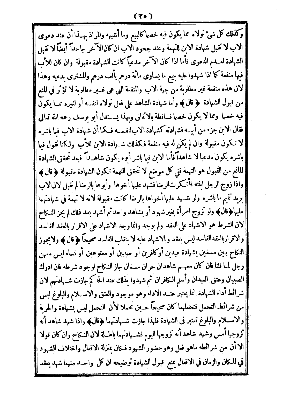 وَكَذَلِكَ كُلُّ شَيْءٍ تَوَلَّاهُ مِمَّا يَكُونُ فِيهِ خَصْمًا كَالْبَيْعِ، وَمَا أَشْبَهَهُ، وَالْمُرَادُ بِهَذَا أَنَّ عِنْدَ دَعْوَى الْأَبِ لَا تُقْبَلُ شَهَادَةُ الِابْنِ؛ لِلتُّهْمَةِ، وَعِنْدَ جُحُودِ الْأَبِ إنْ كَانَ الْآخَرُ جَاحِدًا أَيْضًا لَا تُقْبَلُ الشَّهَادَةُ؛ لِعَدَمِ الدَّعْوَى فَأَمَّا إذَا كَانَ الْآخَرُ مُدَّعِيًا كَانَتْ الشَّهَادَةُ مَقْبُولَةً، وَإِنْ كَانَ لِلْأَبِ فِيهَا مَنْفَعَةٌ كَمَا إذَا شَهِدُوا عَلَيْهِ بِبَيْعِ مَا يُسَاوِي مِائَةَ دِرْهَمٍ بِأَلْفِ دِرْهَمٍ، وَالْمُشْتَرِي يَدَّعِيهِ، وَهَذَا لِأَنَّ هَذِهِ مَنْفَعَةً غَيْرُ مَطْلُوبَةٍ مِنْ جِهَةِ الْأَبِ، وَالْمَنْفَعَةُ الَّتِي هِيَ غَيْرُ مَطْلُوبَةٍ لَا تُؤَثِّرُ فِي الْمَنْعِ مِنْ قَبُولِ الشَّهَادَةِ.
