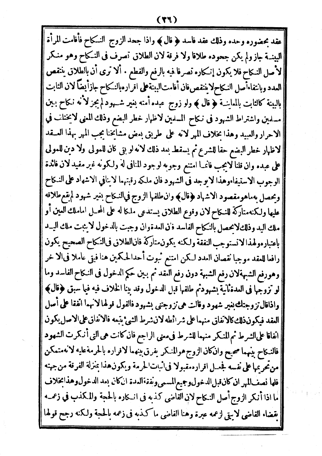 (قَالَ:) وَلَوْ زَوَّجَ عَبْدَهُ أُمَّتَهُ بِغَيْرِ شُهُودٍ لَمْ يَجُزْ؛ لِأَنَّهُ نِكَاحٌ بَيْنَ مُسْلِمَيْنِ، وَاشْتِرَاطُ الشُّهُودِ فِي نِكَاحِ الْمُسْلِمِينَ لِإِظْهَارِ خَطَرِ الْبُضْعِ، وَذَلِكَ الْمَعْنَى لَا يَخْتَلِفُ فِي الْأَحْرَارِ وَالْعَبِيدِ، وَهَذَا بِخِلَافِ الْمَهْرِ؛ لِأَنَّهُ عَلَى طَرِيقِ بَعْضِ مَشَايِخِنَا يَجِبُ الْمَهْرُ بِهَذَا الْعَقْدِ؛ لِإِظْهَارِ خَطَرِ الْبُضْعِ حَقًّا لِلشَّرْعِ ثُمَّ يَسْقُطُ بَعْدَ ذَلِكَ؛ لِأَنَّهُ لَوْ بَقِيَ كَانَ لِلْمَوْلَى، وَلَا دَيْنَ لِلْمَوْلَى عَلَى عَبْدِهِ، وَإِنْ قُلْنَا: لَا يَجِبُ فَإِنَّمَا امْتَنَعَ وُجُوبُهُ؛ لِوُجُودِ الْمُنَافِي لَهُ، وَلِكَوْنِهِ غَيْرَ مُفِيدٍ؛ لِأَنَّ فَائِدَةَ الْوُجُوبِ الِاسْتِيفَاءُ، وَهَذَا لَا يُوجَدُ فِي الشُّهُودِ فَإِنَّ مِلْكَهُ رَقَبَتَهُمَا لَا يُنَافِي الْإِشْهَادَ عَلَى النِّكَاحِ وَيَحْصُلُ بِهِ مَا هُوَ مَقْصُودُ الْإِشْهَادِ