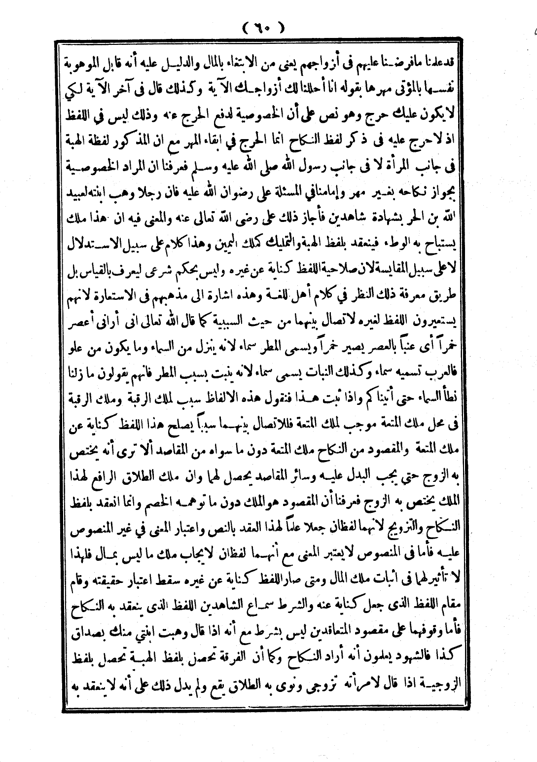 {قَدْ عَلِمْنَا مَا فَرَضْنَا عَلَيْهِمْ فِي أَزْوَاجِهِمْ} [الأحزاب: 50] يَعْنِي مِنْ الِابْتِغَاءِ بِالْمَالِ، وَالدَّلِيلُ عَلَيْهِ أَنَّهُ قَابَلَ الْمَوْهُوبَةَ نَفْسَهَا بِالْمُؤْتَى مَهْرُهَا بِقَوْلِهِ: {إنَّا أَحْلَلْنَا لَك أَزْوَاجَك} [الأحزاب: 50]، وَكَذَلِكَ قَالَ فِي آخِرِ الْآيَةِ: {لِكَيْلا يَكُونَ عَلَيْك حَرَجٌ} [الأحزاب: 50]، وَهُوَ نَصٌّ عَلَى أَنَّ الْخُصُوصِيَّةَ؛ لِدَفْعِ الْحَرَجِ عَنْهُ، وَذَلِكَ لَيْسَ فِي اللَّفْظِ إذْ لَا حَرَجَ عَلَيْهِ فِي ذِكْرِ لَفْظِ النِّكَاحِ، إنَّمَا الْحَرَجُ فِي إبْقَاءِ الْمَهْرِ مَعَ أَنَّ الْمَذْكُورَ لَفْظَةُ الْهِبَةِ فِي جَانِبِ الْمَرْأَةِ لَا فِي جَانِبِ رَسُولِ اللَّهِ - صَلَّى اللَّهُ عَلَيْهِ وَسَلَّمَ -، فَعَرَفْنَا أَنَّ الْمُرَادَ الْخُصُوصِيَّةُ بِجِوَارِ نِكَاحِهِ بِغَيْرِ مَهْرٍ.