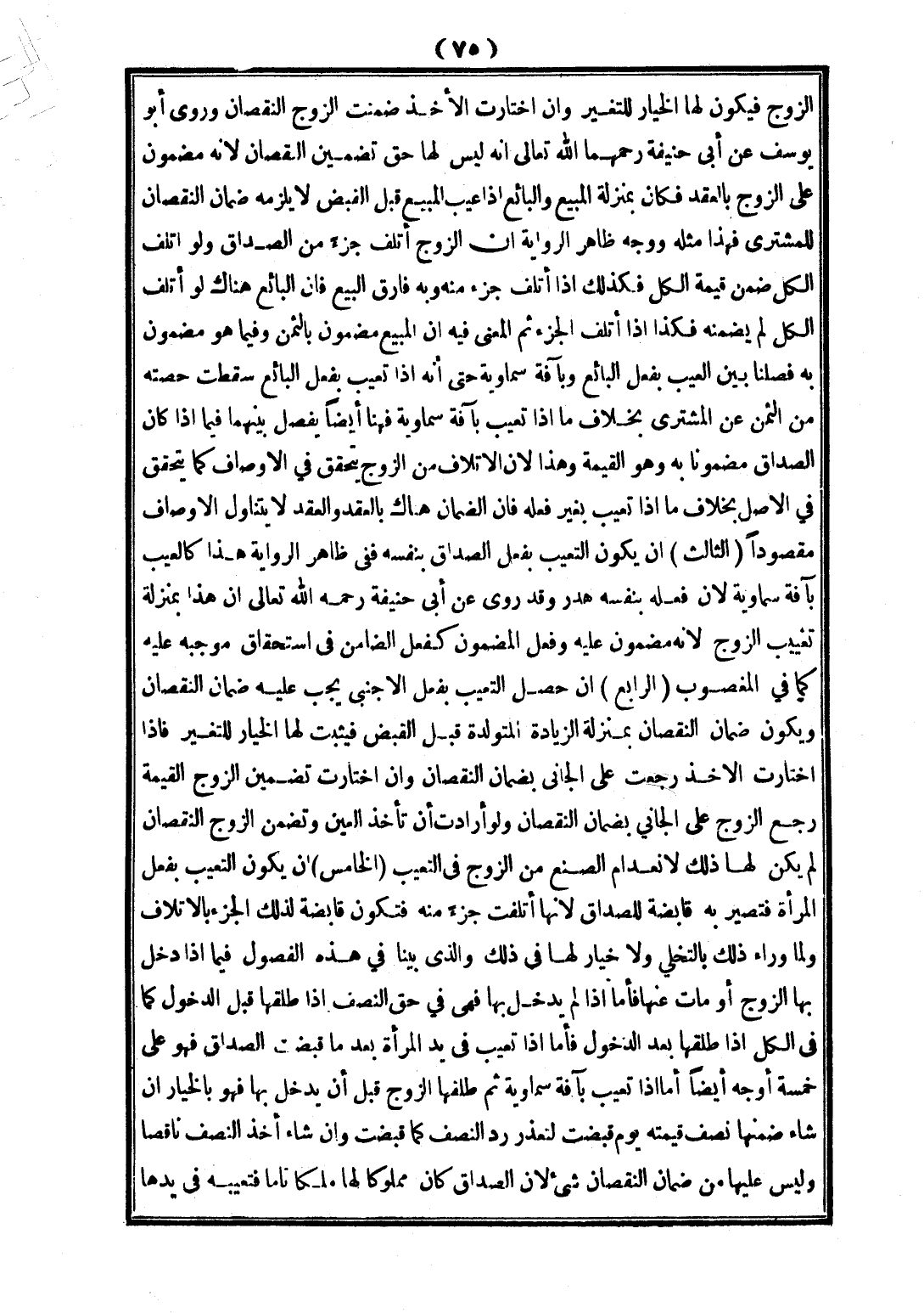 (الثَّالِثُ): أَنْ يَكُونَ التَّعَيُّبُ بِفِعْلِ الصَّدَاقِ بِنَفْسِهِ فَفِي ظَاهِرِ الرِّوَايَةِ هَذَا كَالْعَيْبِ بِآفَةٍ سَمَاوِيَّةٍ؛ لِأَنَّ فِعْلَهُ بِنَفْسِهِ هَدَرٌ، وَقَدْ رُوِيَ عَنْ أَبِي حَنِيفَةَ - رَحِمَهُ اللَّهُ تَعَالَى - أَنَّ هَذَا بِمَنْزِلَةِ تَغَيُّبِ الزَّوْجِ؛ لِأَنَّهُ مَضْمُونٌ عَلَيْهِ، وَفِعْلُ الْمَضْمُونِ كَفِعْلِ الضَّامِنِ فِي اسْتِحْقَاقِ مُوجِبِهِ عَلَيْهِ كَمَا فِي الْمَغْصُوبِ.