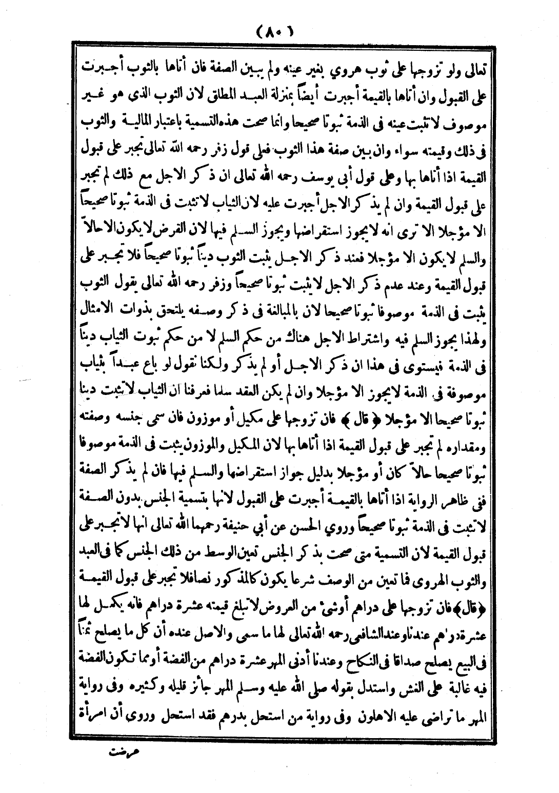 تَعَالَى، وَلَوْ تَزَوَّجَهَا عَلَى ثَوْبٍ هَرَوِيٍّ بِغَيْرِ عَيْنِهِ، وَلَمْ يُبَيِّنْ الصِّفَةَ فَإِنْ أَتَاهَا بِالثَّوْبِ أُجْبِرَتْ عَلَى الْقَبُولِ، وَإِنْ أَتَاهَا بِالْقِيمَةِ أُجْبِرَتْ أَيْضًا بِمَنْزِلَةِ الْعَبْدِ الْمُطْلَقِ؛ لِأَنَّ الثَّوْبَ الَّذِي هُوَ غَيْرُ مَوْصُوفٍ لَا تَثْبُتُ عَيْنُهُ فِي الذِّمَّةِ ثُبُوتًا صَحِيحًا وَزُفَرُ يَقُولُ: الثَّوْبُ يَثْبُتُ فِي الذِّمَّةِ مَوْصُوفًا ثُبُوتًا صَحِيحًا، وَإِنَّمَا صَحَّتْ هَذِهِ التَّسْمِيَةُ بِاعْتِبَارِ الْمَالِيَّةِ، وَالثَّوْبُ فِي ذَلِكَ وَقِيمَتُهُ سَوَاءٌ، وَإِنْ بَيَّنَ صِفَةَ هَذَا الثَّوْبِ فَعَلَى قَوْلِ زُفَرَ - رَحِمَهُ اللَّهُ تَعَالَى -: تُجْبَرُ عَلَى قَبُولِ الْقِيمَةِ إذَا أَتَاهَا بِهَا، وَعَلَى قَوْلِ أَبِي يُوسُفَ - رَحِمَهُ اللَّهُ تَعَالَى -: إنْ ذَكَرَ الْأَجَلَ مَعَ ذَلِكَ لَمْ تُجْبَرْ عَلَى قَبُولِ الْقِيمَةِ، وَإِنْ لَمْ يَذْكُرْ الْأَجَلَ أُجْبِرَتْ عَلَيْهِ؛ لِأَنَّ الثِّيَابَ لَا تَثْبُتُ فِي الذِّمَّةِ ثُبُوتًا صَحِيحًا إلَّا مُؤَجَّلًا، أَلَا تَرَى أَنَّهُ لَا يَجُوزُ اسْتِقْرَاضُهَا، وَيَجُوزُ السَّلَمُ فِيهَا؛ لِأَنَّ الْقَرْضَ لَا يَكُونُ إلَّا حَالًّا، وَالسَّلَمُ لَا يَكُونُ إلَّا مُؤَجَّلًا فَعِنْدَ ذِكْرِ الْأَجَلِ يَثْبُتُ الثَّوْبُ دَيْنًا ثُبُوتًا صَحِيحًا، فَلَا تُجْبَرُ عَلَى قَبُولِ الْقِيمَةِ، وَعِنْدَ عَدَمِ ذِكْرِ الْأَجَلِ لَا يَثْبُتُ ثُبُوتًا صَحِيحًا؛ لِأَنَّ بِالْمُبَالَغَةِ فِي ذِكْرِ وَصْفِهِ يَلْتَحِقُ بِذَوَاتِ الْأَمْثَالِ، وَلِهَذَا يَجُوزُ السَّلَمُ فِيهِ.