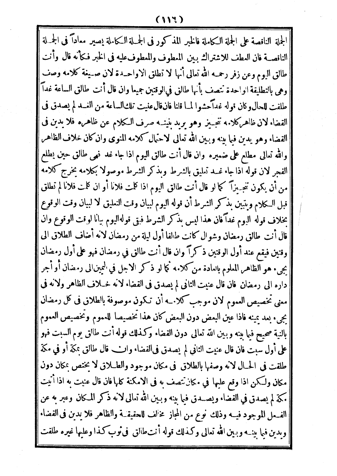 الْجُمْلَةَ النَّاقِصَةَ عَلَى الْجُمْلَةِ الْكَامِلَةِ فَالْخَبَرُ الْمَذْكُورُ فِي الْجُمْلَةِ الْكَامِلَةِ يَصِيرُ مُعَادًا فِي الْجُمْلَةِ النَّاقِصَةِ فَإِنَّ الْعَطْفَ لِلِاشْتِرَاكِ بَيْنَ الْمَعْطُوفِ وَالْمَعْطُوفِ عَلَيْهِ فِي الْخَبَرِ، فَكَأَنَّهُ قَالَ: وَأَنْتِ طَالِقٌ الْيَوْمَ.