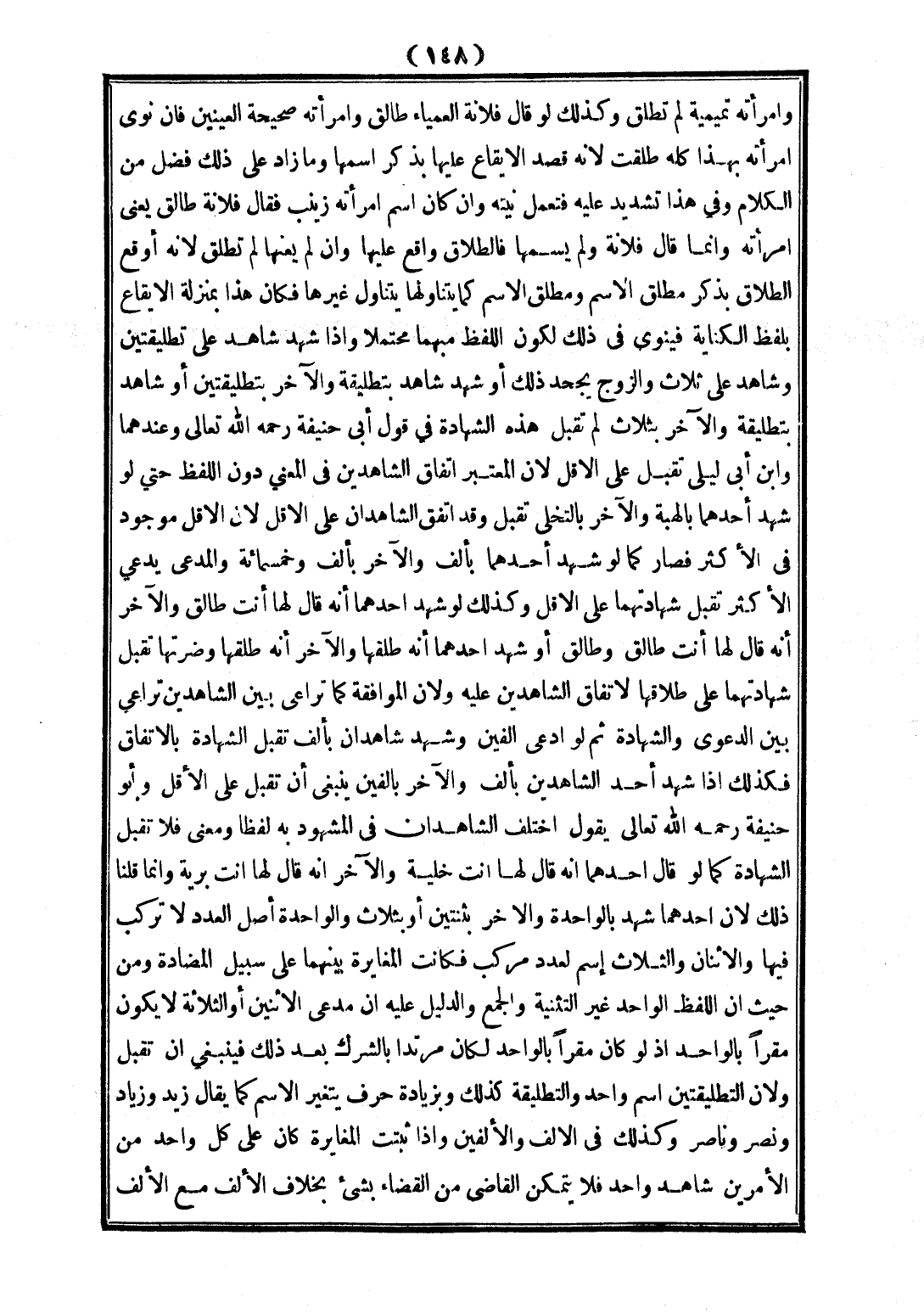 وَإِنْ كَانَ اسْمُ امْرَأَتِهِ زَيْنَبَ، فَقَالَ: فُلَانَةُ طَالِقٌ يَعْنِي امْرَأَتَهُ، وَإِنَّمَا قَالَ: فُلَانَةُ، وَلَمْ يُسَمِّهَا فَالطَّلَاقُ وَاقِعٌ عَلَيْهَا، وَإِنْ لَمْ يَعْنِهَا لَمْ تَطْلُقْ؛ لِأَنَّهُ أَوْقَعَ الطَّلَاقَ بِذِكْرِ مُطْلَقِ الِاسْمِ، وَمُطْلَقُ الِاسْمِ كَمَا يَتَنَاوَلُهَا يَتَنَاوَلُ غَيْرَهَا فَكَانَ هَذَا بِمَنْزِلَةِ الْإِيقَاعِ بِلَفْظِ الْكِنَايَةِ فَيَنْوِي فِي ذَلِكَ؛ لِكَوْنِ اللَّفْظِ مُبْهَمًا مُحْتَمَلًا، وَإِذَا شَهِدَ شَاهِدٌ عَلَى تَطْلِيقَتَيْنِ، وَشَاهِدٌ عَلَى ثَلَاثٍ، وَالزَّوْجُ يَجْحَدُ ذَلِكَ، أَوْ شَهِدَ شَاهِدٌ بِتَطْلِيقَةٍ، وَالْآخَرُ بِتَطْلِيقَتَيْنِ، أَوْ شَاهِدٌ بِتَطْلِيقَةٍ، وَالْآخَرُ بِثَلَاثٍ لَمْ تُقْبَلْ هَذِهِ الشَّهَادَةُ فِي قَوْلِ أَبِي حَنِيفَةَ - رَحِمَهُ اللَّهُ تَعَالَى - وَعِنْدَهُمَا وَابْنِ أَبِي لَيْلَى تُقْبَلُ عَلَى الْأَقَلِّ؛ لِأَنَّ الْمُعْتَبَرَ اتِّفَاقُ الشَّاهِدَيْنِ فِي الْمَعْنَى دُونَ اللَّفْظِ حَتَّى لَوْ شَهِدَ أَحَدُهُمَا بِالْهِبَةِ، وَالْآخَرُ بِالتَّخَلِّي تُقْبَلُ، وَقَدْ اتَّفَقَ الشَّاهِدَانِ عَلَى الْأَقَلِّ؛ لِأَنَّ الْأَقَلَّ مَوْجُودٌ فِي الْأَكْثَرِ فَصَارَ كَمَا لَوْ شَهِدَ أَحَدُهُمَا بِأَلْفٍ، وَالْآخَرُ بِأَلْفٍ وَخَمْسِمِائَةٍ، وَالْمُدَّعِي يَدَّعِي الْأَكْثَرَ تُقْبَلُ شَهَادَتُهُمَا عَلَى الْأَقَلِّ، وَكَذَلِكَ لَوْ شَهِدَ أَحَدُهُمَا أَنَّهُ قَالَ لَهَا: أَنْتِ طَالِقٌ، وَالْآخَرُ أَنَّهُ قَالَ لَهَا: أَنْتِ طَالِقٌ وَطَالِقٌ، أَوْ شَهِدَ أَحَدُهُمَا أَنَّهُ طَلَّقَهَا، وَالْآخَرُ أَنَّهُ طَلَّقَهَا وَضَرَّتَهَا تُقْبَلُ شَهَادَتُهُمَا عَلَى طَلَاقِهَا؛ لِاتِّفَاقِ الشَّاهِدَيْنِ عَلَيْهِ؛ وَلِأَنَّ الْمُوَافَقَةَ كَمَا تُرَاعَى بَيْنَ الشَّاهِدَيْنِ تُرَاعَى بَيْنَ الدَّعْوَى، وَالشَّهَادَةِ.