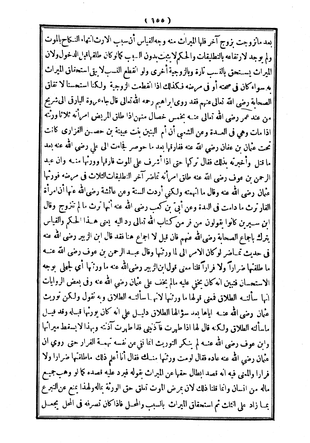 وَقَالَ عَبْدُ الرَّحْمَنِ بْنُ عَوْفٍ - رَضِيَ اللَّهُ عَنْهُ -: مَا طَلَّقْتهَا ضِرَارًا وَلَا فِرَارًا، قُلْنَا: مَعْنَى قَوْلِ ابْنِ الزُّبَيْرِ - رَضِيَ اللَّهُ عَنْهُ -: مَا وَرَّثْتهَا، أَيْ؛ لِجَهْلِي بِوَجْهِ الِاسْتِحْسَانِ فَتَبَيَّنَ أَنَّهُ كَانَ يَخْفَى عَلَيْهِ مَا لَمْ يَخَفْ عَلَى عُثْمَانَ - رَضِيَ اللَّهُ عَنْهُ -، وَفِي بَعْضِ الرِّوَايَاتِ أَنَّهَا سَأَلَتْهُ الطَّلَاقَ فَمَعْنَى قَوْلِهَا: مَا وَرَّثَهَا؛ لِأَنَّهَا سَأَلَتْهُ الطَّلَاقَ، وَبِهِ نَقُولُ، وَلَكِنَّ تَوْرِيثَ عُثْمَانَ - رَضِيَ اللَّهُ عَنْهُ - إيَّاهَا بَعْدَ سُؤَالِهَا الطَّلَاقَ دَلِيلٌ عَلَى أَنَّهُ كَانَ يُوَرِّثُهَا قَبْلَهُ، وَقَدْ قِيلَ: مَا سَأَلَتْهُ الطَّلَاقَ وَلَكِنَّهُ قَالَ لَهَا: إذَا طَهُرْتِ فَآذِنِينِي، فَلَمَّا طَهُرَتْ آذَنَتْهُ، وَبِهَذَا لَا يَسْقُطُ مِيرَاثُهَا، وَابْنُ عَوْفٍ - رَضِيَ اللَّهُ عَنْهُ - لَمْ يُنْكِرْ التَّوْرِيثَ إنَّمَا نَفَى عَنْ نَفْسِهِ تُهْمَةَ الْفِرَارِ حَتَّى رُوِيَ أَنَّ عُثْمَانَ - رَضِيَ اللَّهُ عَنْهُ - عَادَهُ، فَقَالَ: لَوْ مِتَّ وَرَّثْتُهَا مِنْك، فَقَالَ: أَنَا أَعْلَمُ ذَلِكَ مَا طَلَّقْتُهَا ضِرَارًا وَلَا فِرَارًا، وَالْمَعْنَى فِيهِ أَنَّهُ قَصَدَ إبْطَالَ حَقِّهَا عَنْ الْمِيرَاثِ بِقَوْلِهِ: فَيُرَدُّ عَلَيْهِ قَصْدُهُ كَمَا لَوْ وَهَبَ جَمِيعَ مَالِهِ مِنْ إنْسَانٍ، وَإِنَّمَا قُلْنَا ذَلِكَ؛ لِأَنَّ بِمَرَضِ الْمَوْتِ تَعَلَّقَ حَقُّ الْوَرَثَةِ بِمَالِهِ؛ وَلِهَذَا يُمْنَعُ عَنْ التَّبَرُّعِ بِمَا زَادَ عَلَى الثُّلُثِ، ثُمَّ اسْتِحْقَاقُ الْمِيرَاثِ بِالسَّبَبِ، وَالْمَحَلِّ.