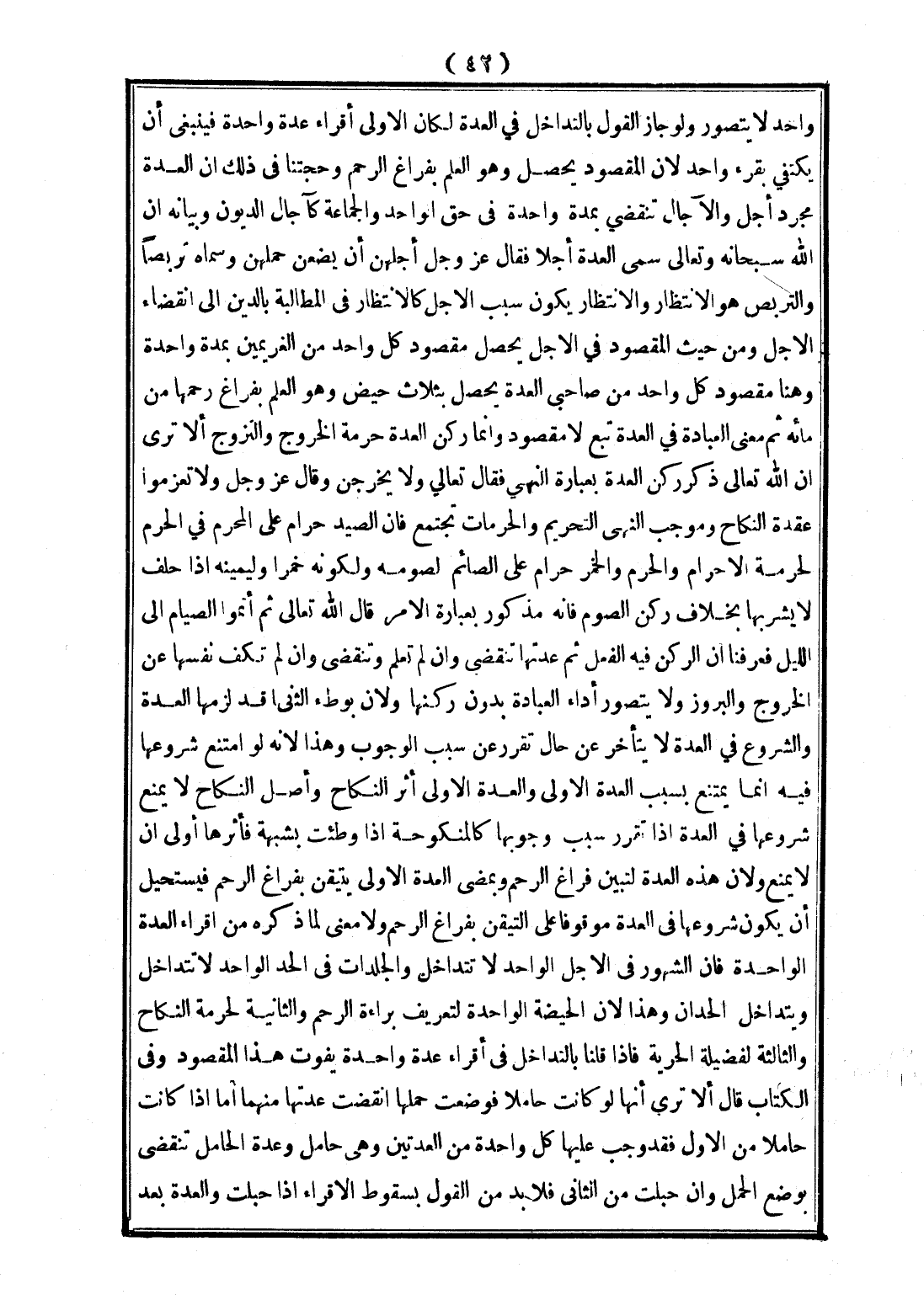 وَلَوْ جَازَ الْقَوْلُ بِالتَّدَاخُلِ فِي الْعِدَّةِ لَكَانَ الْأَوْلَى أَقْرَاءَ عِدَّةٍ وَاحِدَةٍ فَيَنْبَغِي أَنْ يَكْتَفِيَ بِقُرْءٍ وَاحِدٍ لِأَنَّ الْمَقْصُودَ يَحْصُلُ، وَهُوَ الْعِلْمُ بِفَرَاغِ الرَّحِمِ وَحُجَّتُنَا فِي ذَلِكَ أَنَّ الْعِدَّةَ مُجَرَّدُ أَجَلٍ وَالْآجَالُ تَنْقَضِي بِمُدَّةٍ وَاحِدَةٍ فِي حَقِّ الْوَاحِدِ وَالْجَمَاعَةِ كَآجَالِ الدُّيُونِ وَبَيَانُهُ أَنَّ اللَّهَ سُبْحَانَهُ وَتَعَالَى سَمَّى الْعِدَّةَ أَجَلًا فَقَالَ عَزَّ وَجَلَّ {أَجَلُهُنَّ أَنْ يَضَعْنَ حَمْلَهُنَّ} [الطلاق: 4] وَسَمَّاهُ تَرَبُّصًا وَالتَّرَبُّصُ هُوَ الِانْتِظَارُ وَالِانْتِظَارُ يَكُونُ سَبَبَ الْأَجَلِ كَالِانْتِظَارِ فِي الْمُطَالَبَةِ بِالدَّيْنِ إلَى انْقِضَاءِ الْأَجَلِ وَمِنْ حَيْثُ الْمَقْصُودِ فِي الْأَجَلِ يَحْصُلُ مَقْصُودُ كُلِّ وَاحِدٍ مِنْ الْغَرِيمَيْنِ بِمُدَّةٍ وَاحِدَةٍ وَهُنَا مَقْصُودُ كُلِّ وَاحِدٍ مِنْ صَاحِبَيْ الْعِدَّةِ يَحْصُلُ بِثَلَاثِ حِيَضٍ، وَهُوَ الْعِلْمُ بِفَرَاغِ رَحِمِهَا مِنْ مَائِهِ ثُمَّ مَعْنَى الْعِبَادَةِ فِي الْعِدَّةِ تَبَعٌ لَا مَقْصُودٌ وَإِنَّمَا رُكْنُ الْعِدَّةِ حُرْمَةُ الْخُرُوجِ وَالتَّزَوُّجِ أَلَا تَرَى أَنَّ اللَّهَ تَعَالَى ذَكَرَ رُكْنَ الْعِدَّةِ بِعِبَارَةِ النَّهْيِ فَقَالَ تَعَالَى وَلَا يَخْرُجْنَ وَقَالَ عَزَّ وَجَلَّ {وَلَا تَعْزِمُوا عُقْدَةَ النِّكَاحِ} [البقرة: 235] وَمُوجَبُ النَّهْيِ التَّحْرِيمُ وَالْحُرُمَاتُ تَجْتَمِعُ فَإِنَّ الصَّيْدَ حَرَامٌ عَلَى الْمُحْرِمِ فِي الْحَرَمِ لِحُرْمَةِ الْإِحْرَامِ وَالْحَرَمِ وَالْخَمْرُ حَرَامٌ عَلَى الصَّائِمِ لِصَوْمِهِ وَلِكَوْنِهِ خَمْرًا وَلِيَمِينِهِ إذَا حَلَفَ لَا يَشْرَبُهَا بِخِلَافِ رُكْنِ الصَّوْمِ فَإِنَّهُ مَذْكُورٌ بِعِبَارَةِ الْأَمْرِ قَالَ اللَّهُ تَعَالَى {ثُمَّ أَتِمُّوا الصِّيَامَ إلَى اللَّيْلِ} [البقرة: 187] فَعَرَفْنَا أَنَّ الرُّكْنَ فِيهِ الْفِعْلُ ثُمَّ عِدَّتُهَا تَنْقَضِي وَإِنْ لَمْ تَعْلَمْ وَتَنْقَضِي وَإِنْ لَمْ تَكْفِ نَفْسَهَا عَنْ الْخُرُوجِ وَالْبُرُوزِ وَلَا يُتَصَوَّرُ أَدَاءُ الْعِبَادَةِ بِدُونِ رُكْنِهَا وَلِأَنَّ بِوَطْءِ الثَّانِي قَدْ لَزِمَهَا الْعِدَّةُ وَالشُّرُوعُ فِي الْعِدَّةِ لَا يَتَأَخَّرُ عَنْ حَالٍ تَقَرَّرَ عَنْ سَبَبِ الْوُجُوبِ.