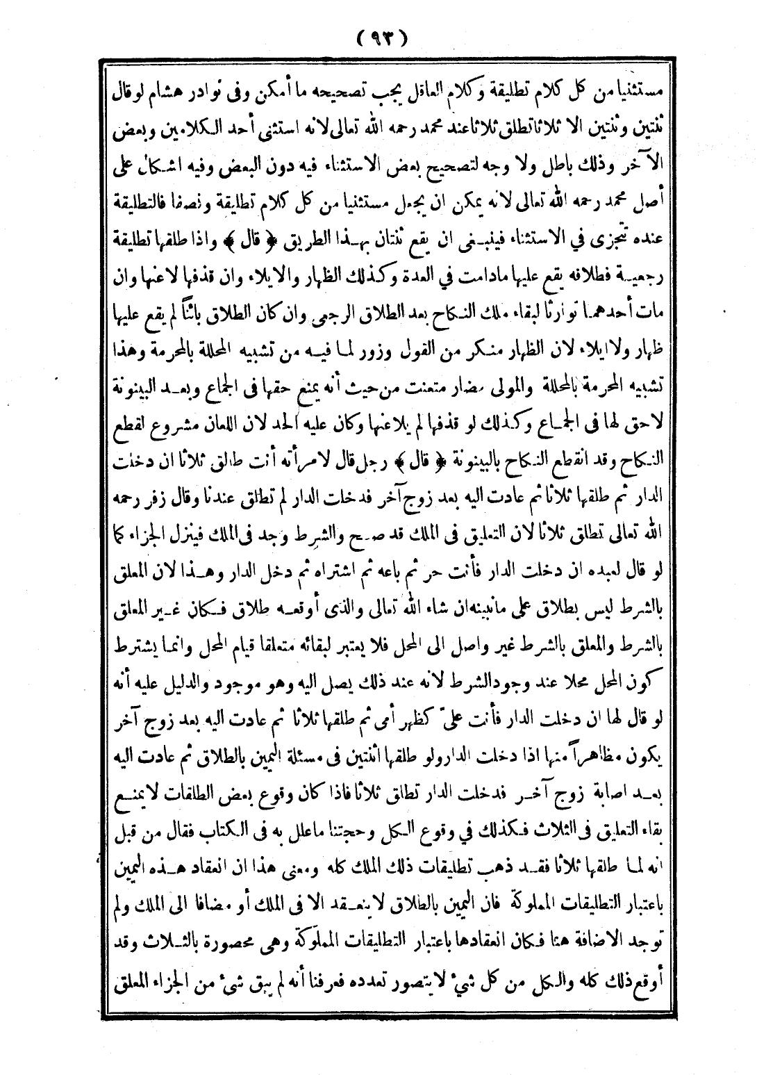 مُسْتَثْنِيًا مِنْ كُلِّ كَلَامٍ تَطْلِيقَةً، وَكَلَامُ الْعَاقِلِ يَجِبُ تَصْحِيحُهُ مَا أَمْكَنَ، وَفِي نَوَادِرِ هِشَامٍ لَوْ قَالَ: ثِنْتَيْنِ وَثِنْتَيْنِ إلَّا ثَلَاثًا، تَطْلُقُ ثَلَاثًا عِنْدَ مُحَمَّدٍ - رَحِمَهُ اللَّهُ تَعَالَى -؛ لِأَنَّهُ اسْتَثْنَى أَحَدَ الْكَلَامَيْنِ وَبَعْضَ الْآخَرِ، وَذَلِكَ بَاطِلٌ، وَلَا وَجْهَ لِتَصْحِيحِ بَعْضِ الِاسْتِثْنَاءِ فِيهِ دُونَ الْبَعْضِ، وَفِيهِ إشْكَالٌ عَلَى أَصْلِ مُحَمَّدٍ - رَحِمَهُ اللَّهُ تَعَالَى -؛ لِأَنَّهُ يُمْكِنُ أَنْ يُجْعَلَ مُسْتَثْنِيًا مِنْ كُلِّ كَلَامٍ تَطْلِيقَةً وَنِصْفًا، فَالتَّطْلِيقَةُ عِنْدَهُ تَتَجَزَّأُ فِي الِاسْتِثْنَاءِ فَيَنْبَغِي أَنْ يَقَعَ ثِنْتَانِ بِهَذَا الطَّرِيقِ.