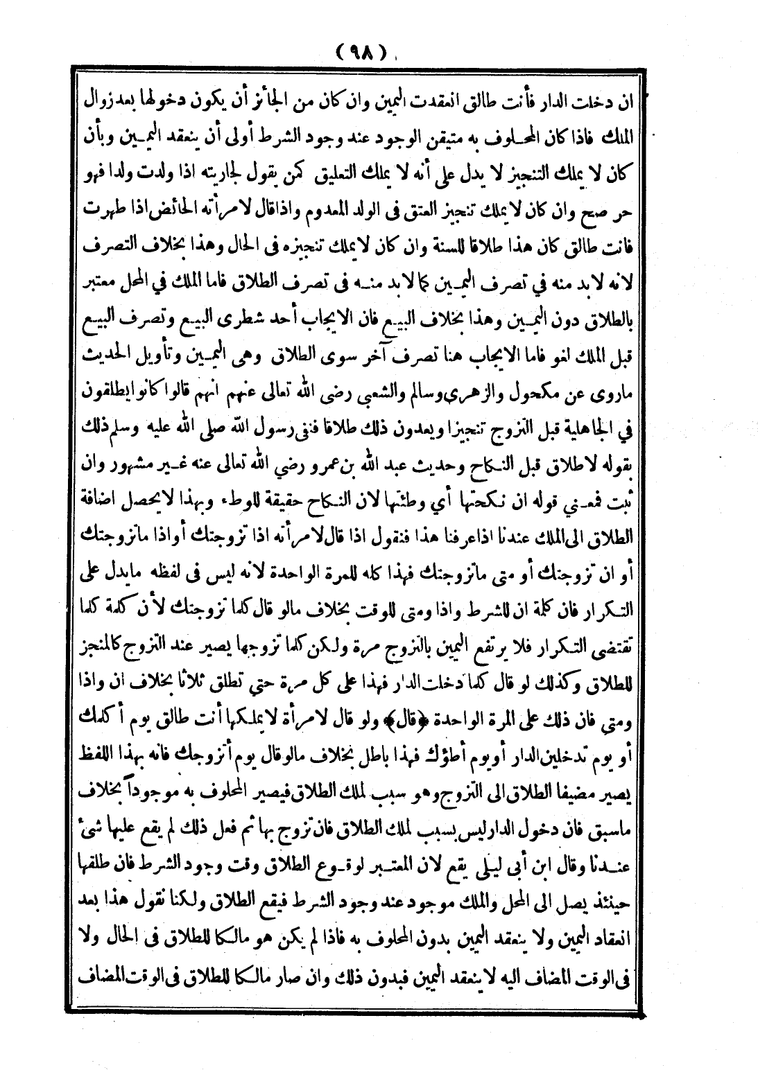 إنْ دَخَلْتِ الدَّارَ فَأَنْتِ طَالِقٌ انْعَقَدَتْ الْيَمِينُ، وَإِنْ كَانَ مِنْ الْجَائِزِ أَنْ يَكُونَ دُخُولُهَا بَعْدَ زَوَالِ الْمِلْكِ، فَإِذَا كَانَ الْمَحْلُوفُ بِهِ مُتَيَقَّنَ الْوُجُودِ عِنْدَ وُجُودِ الشَّرْطِ، أَوْلَى أَنْ يَنْعَقِدَ الْيَمِينُ، وَبِأَنْ كَانَ لَا يَمْلِكُ التَّنْجِيزَ لَا يَدُلُّ عَلَى أَنَّهُ لَا يَمْلِكُ التَّعْلِيقَ كَمَنْ يَقُولُ لِجَارِيَتِهِ: إذَا وَلَدْت وَلَدًا فَهُوَ حُرٌّ، صَحَّ، وَإِنْ كَانَ لَا يَمْلِكُ تَنْجِيزَ الْعِتْقِ فِي الْوَلَدِ الْمَعْدُومِ.