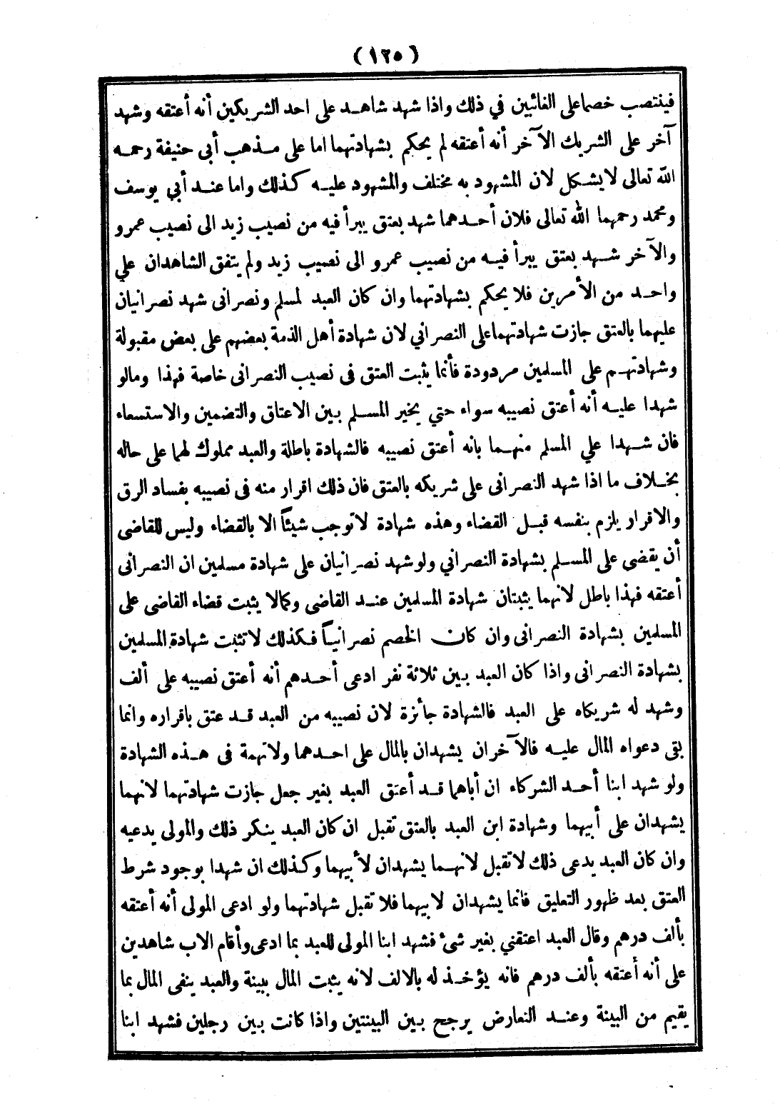 وَإِذَا كَانَ الْعَبْدُ بَيْنَ ثَلَاثَةِ نَفَرٍ ادَّعَى أَحَدُهُمْ أَنَّهُ أَعْتَقَ نَصِيبَهُ عَلَى أَلْفٍ وَشَهِدَ لَهُ شَرِيكَاهُ عَلَى الْعَبْدِ فَالشَّهَادَةُ جَائِزَةٌ لِأَنَّ نَصِيبَهُ مِنْ الْعَبْدِ قَدْ عَتَقَ بِإِقْرَارِهِ وَإِنَّمَا بَقِيَ دَعْوَاهُ الْمَالَ عَلَيْهِ فَالْآخَرَانِ يَشْهَدَانِ بِالْمَالِ عَلَى أَحَدِهِمَا وَلَا تُهْمَةَ فِي هَذِهِ الشَّهَادَةِ