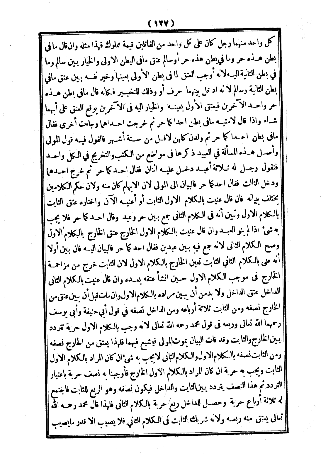 فَنَقُولُ رَجُلٌ لَهُ ثَلَاثَةُ أَعْبُدٍ دَخَلَ عَلَيْهِ اثْنَانِ فَقَالَ أَحَدُكُمَا حُرٌّ ثُمَّ خَرَجَ أَحَدُهُمَا وَدَخَلَ الثَّالِثُ فَقَالَ أَحَدُكُمَا حُرٌّ فَالْبَيَانُ إلَى الْمَوْلَى لِأَنَّ الْإِيهَامَ كَانَ مِنْهُ وَلِأَنَّ حُكْمَ الْكَلَامَيْنِ يَخْتَلِفُ بِبَيَانِهِ، فَإِنْ قَالَ عَنَيْت بِالْكَلَامِ الْأَوَّلِ الثَّابِتَ أَوْ أَعْنِيهِ الْآنَ وَاخْتَارَهُ عَتَقَ الثَّابِتُ بِالْكَلَامِ الْأَوَّلِ وَتَبَيَّنَ أَنَّهُ فِي الْكَلَامِ الثَّانِي جَمَعَ بَيْنَ حُرٍّ وَعَبْدٍ وَقَالَ أَحَدُكُمَا حُرٌّ فَلَا يَجِبُ بِهِ شَيْءٌ إذَا لَمْ يَنْوِ الْعَبْدَ، وَإِنْ قَالَ عَنَيْت بِالْكَلَامِ الْأَوَّلِ الْخَارِجَ عَتَقَ الْخَارِجُ بِالْكَلَامِ الْأَوَّلِ وَصَحَّ الْكَلَامُ الثَّانِي لِأَنَّهُ جَمَعَ فِيهِ بَيْنَ عَبْدَيْنِ فَقَالَ أَحَدُكُمَا حُرٌّ فَالْبَيَانُ إلَيْهِ، فَإِنْ بَيَّنَ أَوَّلًا أَنَّهُ عَنَى بِالْكَلَامِ الثَّانِي الثَّابِتَ تَعَيَّنَ الْخَارِجُ بِالْكَلَامِ الْأَوَّلِ لِأَنَّ الثَّابِتَ خَرَجَ مِنْ مُزَاحَمَةِ الْخَارِجِ فِي مُوجِبِ الْكَلَامِ الْأَوَّلِ حِينَ أَنْشَأَ عِتْقَهُ بَعْدَهُ، وَإِنْ قَالَ عَنَيْت بِالْكَلَامِ الثَّانِي الدَّاخِلَ عَتَقَ الدَّاخِلُ وَلَا بُدَّ مِنْ أَنْ يُبَيِّنَ مُرَادَهُ بِالْكَلَامِ الْأَوَّلِ وَإِنْ مَاتَ قَبْلَ أَنْ يُبَيِّنَ عَتَقَ مِنْ الْخَارِجِ نِصْفُهُ وَمِنْ الثَّابِتِ ثَلَاثَةُ أَرْبَاعِهِ وَمِنْ الدَّاخِلِ نِصْفُهُ فِي قَوْلِ أَبِي حَنِيفَةَ وَأَبِي يُوسُفَ رَحِمَهُمَا اللَّهُ تَعَالَى وَرُبْعُهُ فِي قَوْلِ مُحَمَّدٍ - رَحِمَهُ اللَّهُ تَعَالَى - لِأَنَّهُ وَجَبَ بِالْكَلَامِ الْأَوَّلِ حُرِّيَّةٌ تَتَرَدَّدُ بَيْنَ الْخَارِجِ وَالثَّابِتِ وَقَدْ فَاتَ الْبَيَانُ بِمَوْتِ الْمَوْلَى فَيَشِيعُ فِيهِمَا فَلِهَذَا يَعْتِقُ مِنْ الْخَارِجِ نِصْفُهُ وَمِنْ الثَّابِتِ نِصْفُهُ بِالْكَلَامِ الْأَوَّلِ وَالْكَلَامُ الثَّانِي لَا يَجِبُ بِهِ شَيْءٌ إنْ كَانَ الْمُرَادُ بِالْكَلَامِ الْأَوَّلِ الثَّابِتَ، وَيَجِبُ بِهِ حُرِّيَّةٌ إنْ كَانَ الْمُرَادُ بِالْكَلَامِ الْأَوَّلِ الْخَارِجَ فَأَوْجَبْنَا بِهِ نِصْفَ حُرِّيَّةٍ بِاعْتِبَارِ التَّرَدُّدِ ثُمَّ هَذَا النِّصْفُ يَتَرَدَّدُ بَيْنَ الثَّابِتِ وَالدَّاخِلِ فَيَكُونُ نِصْفُهُ وَهُوَ الرُّبْعُ لِلثَّابِتِ فَاجْتَمَعَ لَهُ ثَلَاثَةُ أَرْبَاعِ حُرِّيَّةٍ وَحَصَلَ لِلدَّاخِلِ رُبْعُ حُرِّيَّةٍ بِالْكَلَامِ الثَّانِي فَلِهَذَا قَالَ مُحَمَّدٌ - رَحِمَهُ اللَّهُ تَعَالَى - يَعْتِقُ مِنْهُ رُبْعُهُ وَلِأَنَّهُ شَرِيكُ الثَّابِتِ فِي الْكَلَامِ الثَّانِي فَلَا يُصِيبُ إلَّا قَدْرَ مَا يُصِيبُ