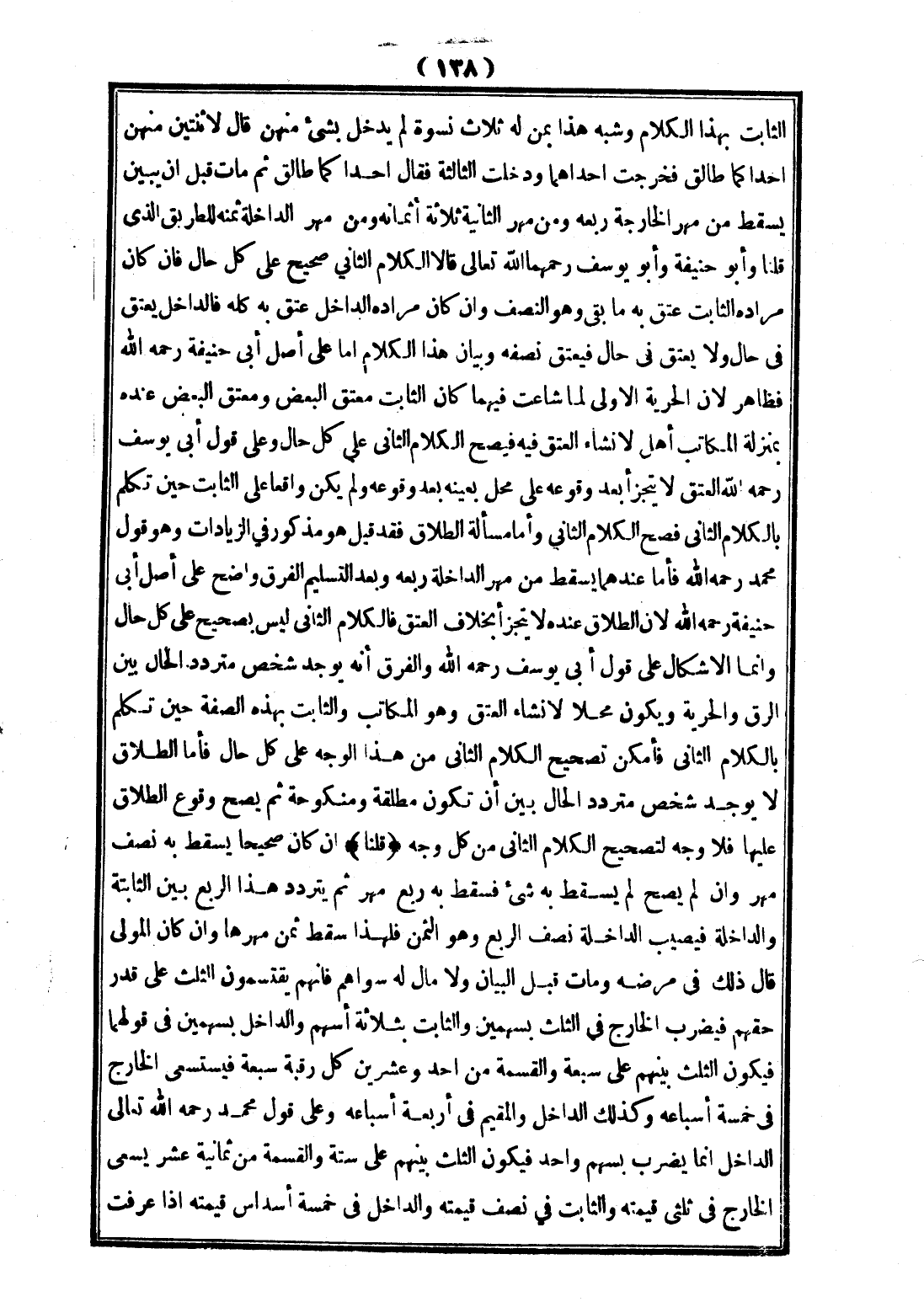 فَأَمَّا عِنْدَهُمَا يَسْقُطُ مِنْ مَهْرِ الدَّاخِلَةِ رُبْعُهُ وَبَعْدَ التَّسْلِيمِ الْفَرْقُ وَاضِحٌ عَلَى أَصْلِ أَبِي حَنِيفَةَ - رَحِمَهُ اللَّهُ - لِأَنَّ الطَّلَاقَ عِنْدَهُ لَا يَتَجَزَّأُ بِخِلَافِ الْعِتْقِ فَالْكَلَامُ الثَّانِي لَيْسَ بِصَحِيحٍ عَلَى كُلِّ حَالٍ وَإِنَّمَا الْإِشْكَالُ عَلَى قَوْلِ أَبِي يُوسُفَ - رَحِمَهُ اللَّهُ - وَالْفَرْقُ أَنَّهُ يُوجَدُ شَخْصٌ مُتَرَدِّدُ الْحَالِ بَيْنَ الرِّقِّ وَالْحُرِّيَّةِ وَيَكُونُ مَحَلًّا لِإِنْشَاءِ الْعِتْقِ وَهُوَ الْمُكَاتَبُ وَالثَّابِتُ بِهَذِهِ الصِّفَةِ حِينَ تَكَلَّمَ بِالْكَلَامِ الثَّانِي فَأَمْكَنَ تَصْحِيحُ الْكَلَامِ الثَّانِي مِنْ هَذَا الْوَجْهِ عَلَى كُلِّ حَالٍ فَأَمَّا الطَّلَاقُ لَا يُوجَدُ شَخْصٌ مُتَرَدِّدُ الْحَالِ بَيْنَ أَنْ تَكُونَ مُطَلَّقَةً وَمَنْكُوحَةً ثُمَّ يَصِحُّ وُقُوعُ الطَّلَاقِ عَلَيْهَا فَلَا وَجْهَ لِتَصْحِيحِ الْكَلَامِ الثَّانِي مِنْ كُلِّ وَجْهٍ (قُلْنَا) إنْ كَانَ صَحِيحًا يَسْقُطُ بِهِ نِصْفُ مَهْرٍ، وَإِنْ لَمْ يَصِحَّ لَمْ يَسْقُطْ بِهِ شَيْءٌ، فَسَقَطَ بِهِ رُبْعُ مَهْرٍ ثُمَّ يَتَرَدَّدُ هَذَا الرُّبْعُ بَيْنَ الثَّابِتَةِ وَالدَّاخِلَةِ فَيُصِيبُ الدَّاخِلَةَ نِصْفُ الرُّبْعِ وَهُوَ الثُّمُنُ فَلِهَذَا سَقَطَ ثُمُنُ مَهْرِهَا، وَإِنْ كَانَ الْمَوْلَى قَالَ ذَلِكَ فِي مَرَضِهِ وَمَاتَ قَبْلَ الْبَيَانِ وَلَا مَالَ لَهُ سِوَاهُمْ فَإِنَّهُمْ يَقْتَسِمُونَ الثُّلُثَ عَلَى قَدْرِ حَقِّهِمْ فَيُضْرَبُ الْخَارِجُ فِي الثُّلُثِ بِسَهْمَيْنِ وَالثَّابِتُ بِثَلَاثَةِ أَسْهُمٍ وَالدَّاخِلُ بِسَهْمَيْنِ فِي قَوْلِهِمَا فَيَكُونُ الثُّلُثُ بَيْنَهُمْ عَلَى سَبْعَةٍ وَالْقِسْمَةُ مِنْ أَحَدٍ وَعِشْرِينَ كُلُّ رَقَبَةٍ سَبْعَةٌ، فَيَسْتَسْعِي الْخَارِجُ فِي خَمْسَةِ أَسْبَاعِهِ، وَكَذَلِكَ الدَّاخِلُ وَالْمُقِيمُ فِي أَرْبَعَةِ أَسْبَاعِهِ وَعَلَى قَوْلِ مُحَمَّدٍ - رَحِمَهُ اللَّهُ تَعَالَى - الدَّاخِلُ إنَّمَا يُضْرَبُ بِسَهْمٍ وَاحِدٍ فَيَكُونُ الثُّلُثُ بَيْنَهُمْ عَلَى سِتَّةٍ وَالْقِسْمَةُ مِنْ ثَمَانِيَةَ عَشَرَ يَسْعَى الْخَارِجُ فِي ثُلُثَيْ قِيمَتِهِ وَالثَّابِتُ فِي نِصْفِ قِيمَتِهِ وَالدَّاخِلُ فِي خَمْسَةِ أَسْدَاسِ قِيمَتِهِ. إذَا عَرَفْتَ