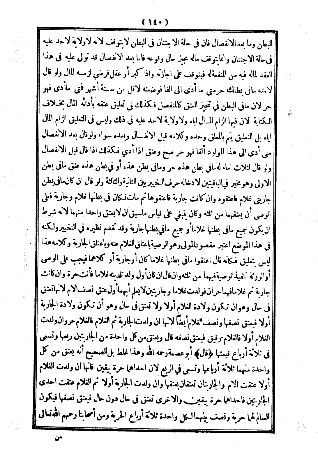 الْبَطْنِ وَمَا بَعْدَ الِانْفِصَالِ فَإِنَّ حَالَةَ الِاجْتِنَانِ فِي الْبَطْنِ لَا يَتَوَقَّفُ لِأَنَّهُ لَا وِلَايَةَ لِأَحَدٍ عَلَيْهِ فِي حَالَةِ الِاجْتِنَانِ وَإِنَّمَا يَتَوَقَّفُ مَا لَهُ مُجِيزٌ حَالَ وُقُوعِهِ، فَأَمَّا بَعْدَ الِانْفِصَالِ قَدْ تَوَلَّى عَلَيْهِ فِي هَذَا الْعَقْدِ لِمَا لَهُ فِيهِ مِنْ الْمَنْفَعَةِ لَهُ فَيَتَوَقَّفُ عَلَى إجَازَتِهِ وَإِذَا كَبِرَ أَوْ عَقَلَ فَرَضِيَ لَزِمَهُ الْمَالُ