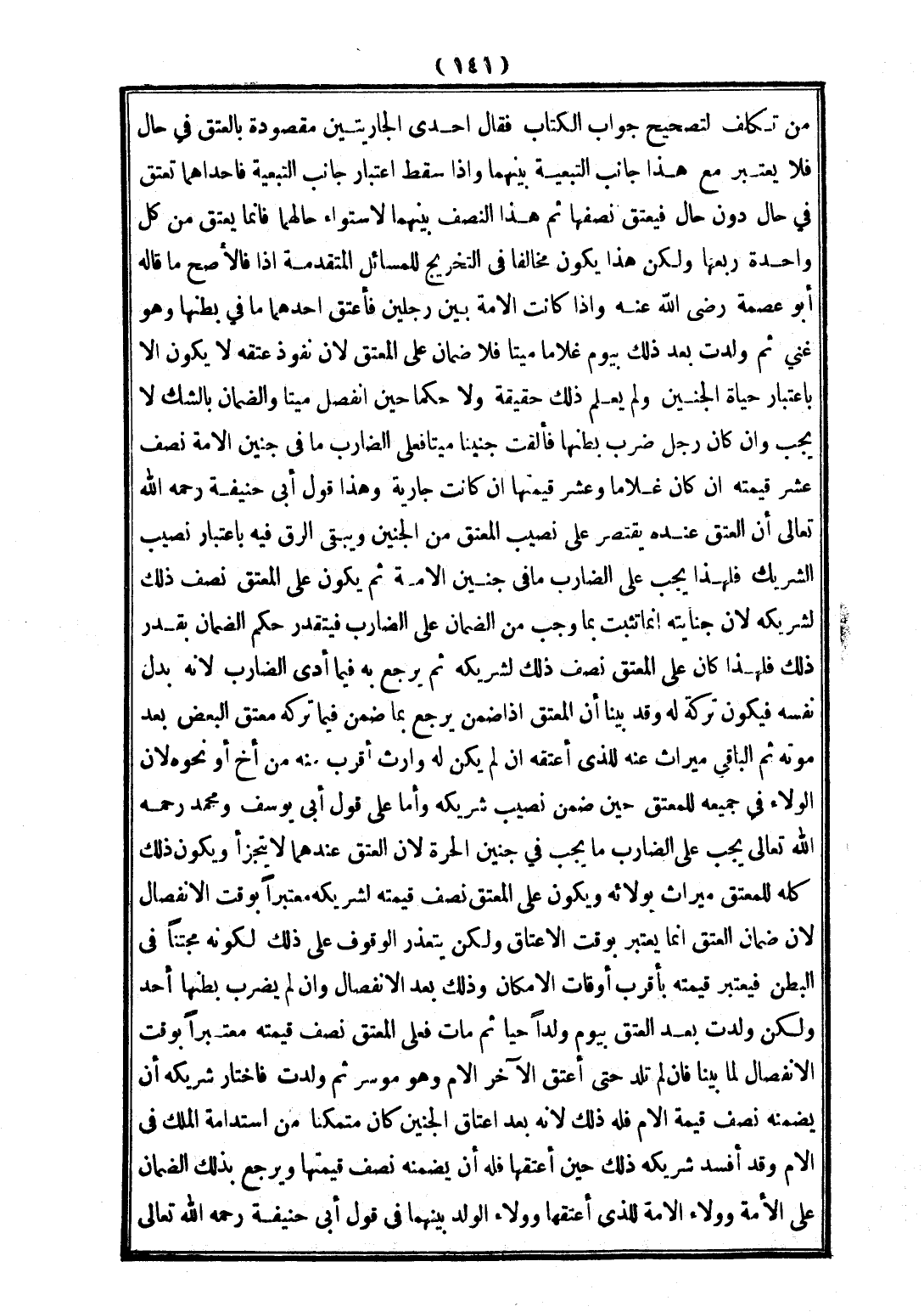 مَنْ تَكَلَّفَ لِتَصْحِيحِ جَوَابِ الْكِتَابِ فَقَالَ إحْدَى الْجَارِيَتَيْنِ مَقْصُودَةٌ بِالْعِتْقِ فِي حَالٍ فَلَا يُعْتَبَرُ مَعَ هَذَا جَانِبُ التَّبَعِيَّةِ بَيْنَهُمَا وَإِذَا سَقَطَ اعْتِبَارُ جَانِبِ التَّبَعِيَّةِ فَإِحْدَاهُمَا تَعْتِقُ فِي حَالٍ دُونَ حَالٍ فَيَعْتِقُ نِصْفُهَا ثُمَّ هَذَا النِّصْفُ بَيْنَهُمَا لِاسْتِوَاءِ حَالِهِمَا فَإِنَّمَا يَعْتِقُ مِنْ كُلِّ وَاحِدَةٍ رُبْعُهَا وَلَكِنْ هَذَا يَكُونُ مُخَالِفًا فِي التَّخْرِيجِ لِلْمَسَائِلِ الْمُتَقَدِّمَةِ إذًا فَالْأَصَحُّ مَا قَالَهُ أَبُو عِصْمَةَ - رَضِيَ اللَّهُ عَنْهُ -