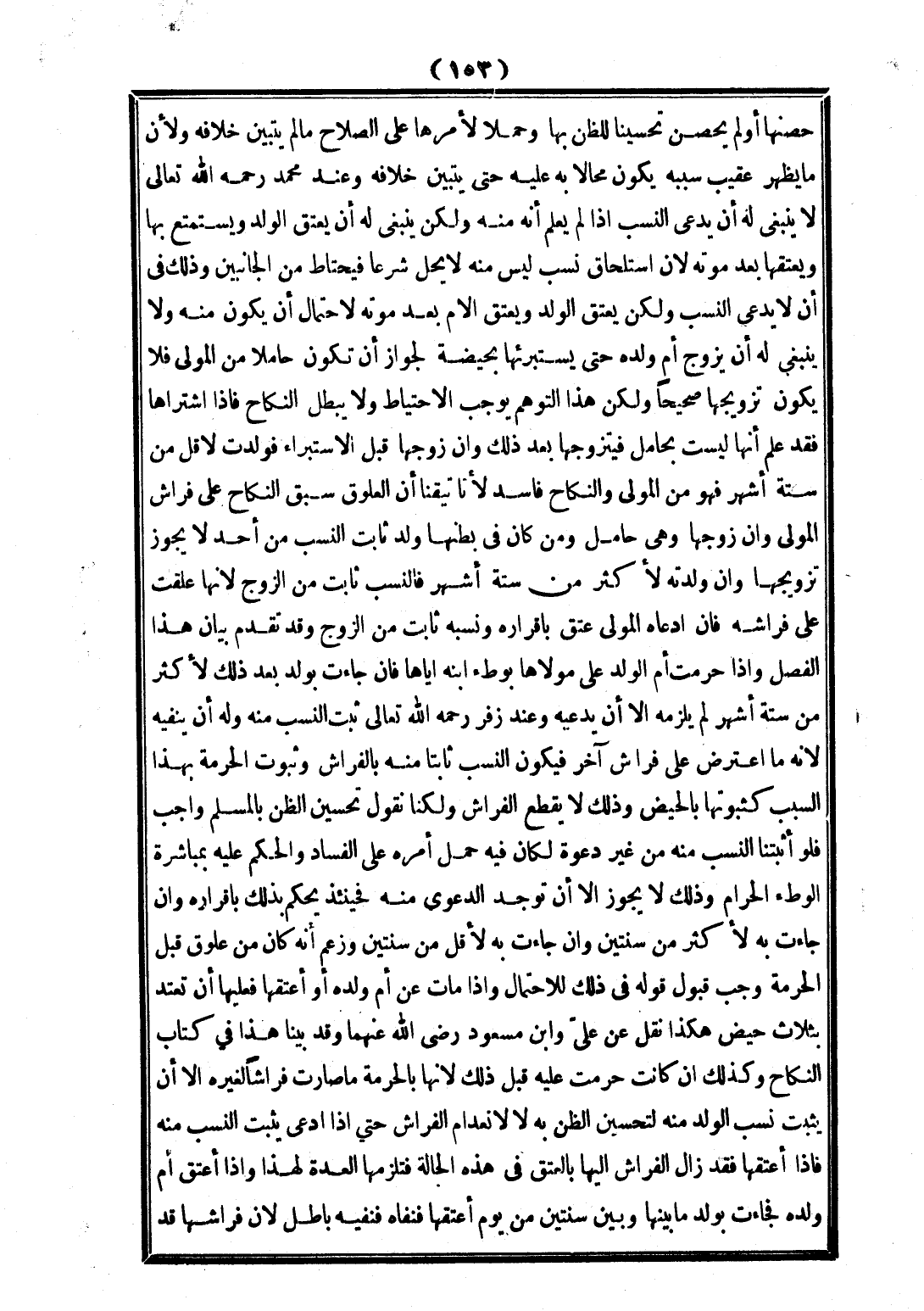 وَإِذَا أَعْتَقَ أُمَّ وَلَدِهِ فَجَاءَتْ بِوَلَدٍ مَا بَيْنَهَا وَبَيْنَ سَنَتَيْنِ مِنْ يَوْمَ أَعْتَقَهَا فَنَفَاهُ فَنَفْيُهُ بَاطِلٌ؛ لِأَنَّ فِرَاشَهَا قَدْ