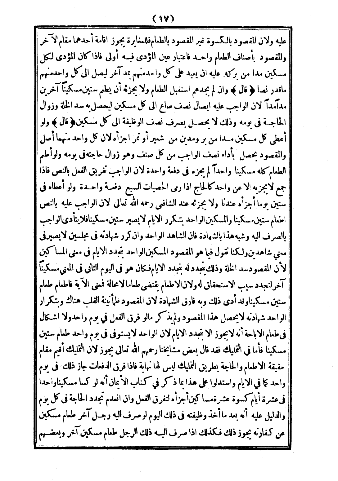 عَلَيْهِ؛ وَلِأَنَّ الْمَقْصُودَ بِالْكِسْوَةِ غَيْرُ الْمَقْصُودِ بِالطَّعَامِ فَلِلْمُغَايَرَةِ يَجُوزُ إقَامَةُ أَحَدِهِمَا مَقَامَ الْآخَرِ وَالْمَقْصُودُ بِأَصْنَافِ الطَّعَامِ وَاحِدٌ فَاعْتِبَارُ عَيْنِ الْمُؤَدَّى فِيهِ أَوْلَى، فَإِذَا كَانَ الْمُؤَدَّى لِكُلِّ مِسْكِينٍ مُدًّا مِنْ بُرٍّ كَانَ عَلَيْهِ أَنْ يُعِيدَ عَلَى كُلِّ وَاحِدٍ مِنْهُمْ بِمُدٍّ آخَرَ لِيَصِلَ إلَى كُلِّ وَاحِدٍ مِنْهُمْ مَا قَدَرَ نَصًّا.