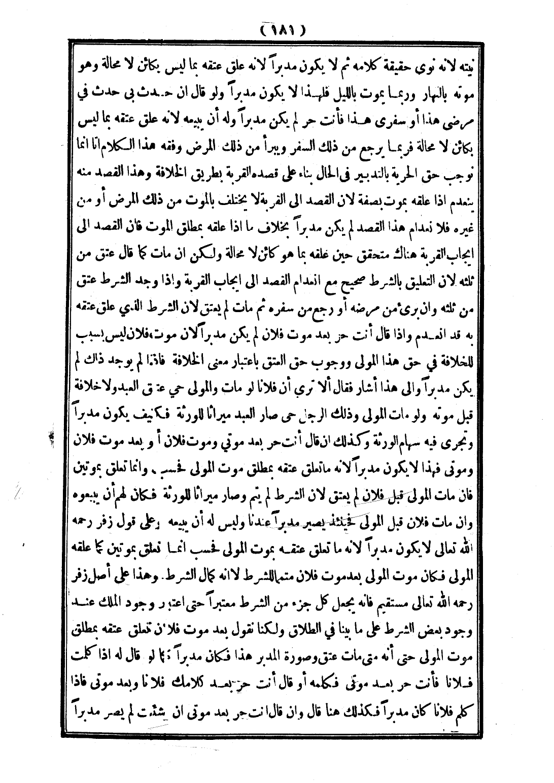 وَلَوْ قَالَ إنْ حَدَثَ بِي حَدَثٌ فِي مَرَضِي هَذَا أَوْ سَفَرِي هَذَا فَأَنْتَ حُرٌّ لَمْ يَكُنْ مُدَبَّرًا وَلَهُ أَنْ يَبِيعَهُ؛ لِأَنَّهُ عَلَّقَ عِتْقَهُ بِمَا لَيْسَ بِكَائِنٍ لَا مَحَالَةَ فَرُبَّمَا يَرْجِعُ مِنْ ذَلِكَ السَّفَرِ وَيَبْرَأُ مِنْ ذَلِكَ الْمَرَضِ، وَفِقْهُ هَذَا الْكَلَامِ أَنَّا إنَّمَا نُوجِبُ حَقَّ الْحُرِّيَّةِ بِالتَّدْبِيرِ فِي الْحَالِ بِنَاءً عَلَى قَصْدِهِ الْقُرْبَةَ بِطَرِيقِ الْخِلَافَةِ وَهَذَا الْقَصْدُ مِنْهُ يَنْعَدِمُ إذَا عَلَّقَهُ بِمَوْتٍ بِصِفَةٍ؛ لِأَنَّ الْقَصْدَ إلَى الْقُرْبَةِ لَا يَخْتَلِفُ بِالْمَوْتِ مِنْ ذَلِكَ الْمَرَضِ أَوْ مِنْ غَيْرِهِ فَلِانْعِدَامِ هَذَا الْقَصْدِ لَمْ يَكُنْ مُدَبَّرًا بِخِلَافِ مَا إذَا عَلَّقَهُ بِمُطْلَقِ الْمَوْتِ فَإِنَّ الْقَصْدَ إلَى إيجَابِ الْقُرْبَةِ هُنَاكَ مُتَحَقِّقٌ حِينَ عَلَّقَهُ بِمَا هُوَ كَائِنٌ لَا مَحَالَةَ وَلَكِنْ إنْ مَاتَ كَمَا قَالَ عَتَقَ مِنْ ثُلُثِهِ؛ لِأَنَّ التَّعْلِيقَ بِالشَّرْطِ صَحِيحٌ مَعَ انْعِدَامِ الْقَصْدِ إلَى إيجَابِ الْقُرْبَةِ وَإِذَا وُجِدَ الشَّرْطُ عَتَقَ مِنْ ثُلُثِهِ وَإِنْ بَرِئَ مِنْ مَرَضِهِ أَوْ رَجَعَ مِنْ سَفَرِهِ ثُمَّ مَاتَ لَمْ يَعْتِقْ؛ لِأَنَّ الشَّرْطَ الَّذِي عَلَّقَ عِتْقَهُ بِهِ قَدْ انْعَدَمَ.