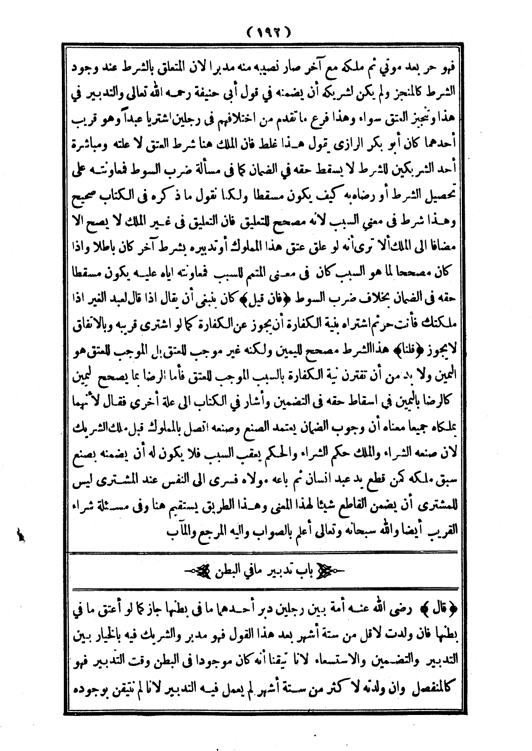 فَهُوَ حُرٌّ بَعْدَ مَوْتِي ثُمَّ مَلَكَهُ مَعَ آخَرَ صَارَ نَصِيبُهُ مِنْهُ مُدَبَّرًا؛ لِأَنَّ الْمُتَعَلِّقَ بِالشَّرْطِ عِنْدَ وُجُودِ الشَّرْطِ كَالْمُنَجَّزِ وَلَمْ يَكُنْ لِشَرِيكِهِ أَنْ يُضَمِّنَهُ فِي قَوْلِ أَبِي حَنِيفَةَ - رَحِمَهُ اللَّهُ تَعَالَى - وَالتَّدْبِيرُ فِي هَذَا وَتَنْجِيزُ الْعِتْقِ سَوَاءٌ وَهَذَا فَرْعُ مَا تَقَدَّمَ مِنْ اخْتِلَافِهِمْ فِي رَجُلَيْنِ اشْتَرَيَا عَبْدًا وَهُوَ قَرِيبُ أَحَدِهِمَا كَانَ أَبُو بَكْرٍ الرَّازِيّ يَقُولُ هَذَا غَلَطٌ فَإِنَّ الْمِلْكَ هُنَا شَرْطُ الْعِتْقِ لَا عِلَّتُهُ وَمُبَاشَرَةُ أَحَدِ الشَّرِيكَيْنِ لِلشَّرْطِ لَا يُسْقِطُ حَقَّهُ فِي الضَّمَانِ كَمَا فِي مَسْأَلَةِ ضَرْبِ السَّوْطِ فَمُعَاوَنَتُهُ عَلَى تَحْصِيلِ الشَّرْطِ أَوْ رِضَاهُ بِهِ كَيْف يَكُونُ مُسْقِطًا؟