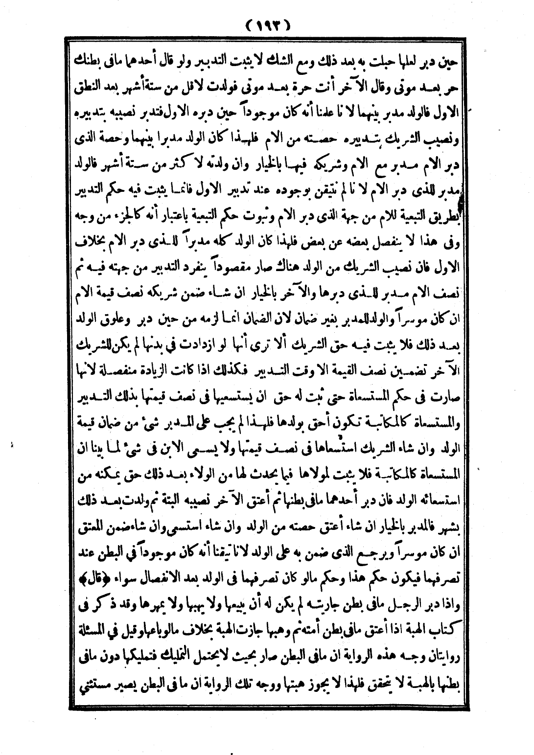 حِينَ دَبَّرَ لَعَلَّهَا حَبِلَتْ بِهِ بَعْدَ ذَلِكَ وَمَعَ الشَّكِّ لَا يَثْبُتُ التَّدْبِيرُ، وَلَوْ قَالَ أَحَدُهُمَا مَا فِي بَطْنِك حُرٌّ بَعْدَ مَوْتِي وَقَالَ الْآخَرُ أَنْتِ حُرَّةٌ بَعْدَ مَوْتِي فَوَلَدَتْ لِأَقَلَّ مِنْ سِتَّةِ أَشْهُرٍ بَعْدَ النُّطْقِ الْأَوَّلِ فَالْوَلَدُ مُدَبَّرٌ بَيْنَهُمَا؛ لِأَنَّا عَلِمْنَا أَنَّهُ كَانَ مَوْجُودًا حِينَ دَبَّرَهُ الْأَوَّلُ فَتَدَبَّرَ نَصِيبُهُ بِتَدْبِيرِهِ، وَنَصِيبُ الشَّرِيكِ بِتَدْبِيرِهِ حِصَّتَهُ مِنْ الْأُمِّ فَلِهَذَا كَانَ الْوَلَدُ مُدَبَّرًا بَيْنَهُمَا وَحِصَّةُ الَّذِي دَبَّرَ الْأُمَّ مُدَبَّرٌ مَعَ الْأُمِّ وَشَرِيكُهُ فِيهَا بِالْخِيَارِ وَإِنْ وَلَدَتْهُ لِأَكْثَرَ مِنْ سِتَّةِ أَشْهُرٍ فَالْوَلَدُ مُدَبَّرٌ لِلَّذِي دَبَّرَ الْأُمَّ؛ لِأَنَّا لَمْ نَتَيَقَّنْ بِوُجُودِهِ عِنْدَ تَدْبِيرِ الْأَوَّلِ فَإِنَّمَا يَثْبُتُ فِيهِ حُكْمُ التَّدْبِيرِ بِطَرِيقِ التَّبَعِيَّةِ لِلْأُمِّ مِنْ جِهَةِ الَّذِي دَبَّرَ الْأُمَّ وَثُبُوتُ حُكْمِ التَّبَعِيَّةِ بِاعْتِبَارِ أَنَّهُ كَالْجُزْءِ مِنْ وَجْهٍ وَفِي هَذَا لَا يَنْفَصِلُ بَعْضُهُ عَنْ بَعْضٍ فَلِهَذَا كَانَ الْوَلَدُ كُلُّهُ مُدَبَّرًا لِلَّذِي دَبَّرَ الْأُمَّ بِخِلَافِ الْأَوَّلِ فَإِنَّ نَصِيبَ الشَّرِيكِ مِنْ الْوَلَدِ هُنَاكَ صَارَ مَقْصُودًا يَنْفَرِدُ التَّدْبِيرُ مِنْ جِهَتِهِ فِيهِ، ثُمَّ نِصْفُ الْأُمِّ مُدَبَّرٌ لِلَّذِي دَبَّرَهَا وَالْآخَرُ بِالْخِيَارِ إنْ شَاءَ ضَمَّنَ شَرِيكَهُ نِصْفَ قِيمَةِ الْأُمِّ إنْ كَانَ مُوسِرًا وَالْوَلَدُ لِلْمُدَبِّرِ بِغَيْرِ ضَمَانٍ؛ لِأَنَّ الضَّمَانَ إنَّمَا لَزِمَهُ مِنْ حِينِ دَبَّرَ، وَعُلُوقُ الْوَلَدِ بَعْدَ ذَلِكَ فَلَا يَثْبُتُ فِيهِ حَقُّ الشَّرِيكِ أَلَا تَرَى أَنَّهَا لَوْ ازْدَادَتْ فِي بَدَنِهَا لَمْ يَكُنْ لَلشَّرِيك الْآخَرِ تَضْمِينُ نِصْفِ الْقِيمَةِ إلَّا وَقْتَ التَّدْبِيرِ فَكَذَلِكَ إذَا كَانَتْ الزِّيَادَةُ مُنْفَصِلَةً؛ لِأَنَّهَا صَارَتْ فِي حُكْمِ الْمُسْتَسْعَاةِ حَتَّى ثَبَتَ لَهُ حَقُّ أَنْ يَسْتَسْعِيَهَا فِي نِصْفِ قِيمَتِهَا بِذَلِكَ التَّدْبِيرِ وَالْمُسْتَسْعَاةُ كَالْمُكَاتَبَةِ تَكُونُ أَحَقَّ بِوَلَدِهَا فَلِهَذَا لَمْ يَجِبْ عَلَى الْمُدَبِّرِ شَيْءٌ مِنْ ضَمَانِ قِيمَةِ الْوَلَدِ وَإِنْ شَاءَ الشَّرِيكُ اسْتَسْعَاهَا فِي نِصْفِ قِيمَتِهَا وَلَا يَسْعَى الِابْنُ فِي شَيْءٍ لِمَا بَيَّنَّا أَنَّ الْمُسْتَسْعَاةَ كَالْمُكَاتَبَةِ فَلَا يَثْبُتُ لِمَوْلَاهَا فِيمَا يَحْدُثُ لَهَا مِنْ الْوَلَاءِ بَعْدَ ذَلِكَ حَقٌّ يُمَكِّنُهُ مِنْ اسْتِسْعَائِهِ الْوَلَدَ، فَإِنْ دَبَّرَ أَحَدُهُمَا مَا فِي بَطْنِهَا ثُمَّ أَعْتَقَ الْآخَرُ نَصِيبَهُ أَلْبَتَّةَ ثُمَّ وَلَدَتْ بَعْدَ ذَلِكَ بِشَهْرٍ فَالْمُدَبِّرُ بِالْخِيَارِ إنْ شَاءَ أَعْتَقَ حِصَّتَهُ مِنْ الْوَلَدِ وَإِنْ شَاءَ اسْتَسْعَى وَإِنْ شَاءَ ضَمَّنَ الْمُعْتِقَ إنْ كَانَ مُوسِرًا وَيَرْجِعُ الَّذِي ضَمِنَ بِهِ عَلَى الْوَلَدِ؛ لِأَنَّا تَيَقَّنَّا أَنَّهُ كَانَ مَوْجُودًا فِي الْبَطْنِ عِنْدَ تَصَرُّفِهِمَا فَيَكُونُ حُكْمُ هَذَا وَحُكْمُ مَا لَوْ كَانَ تَصَرُّفُهُمَا فِي الْوَلَدِ بَعْدَ الِانْفِصَالَ سَوَاءً