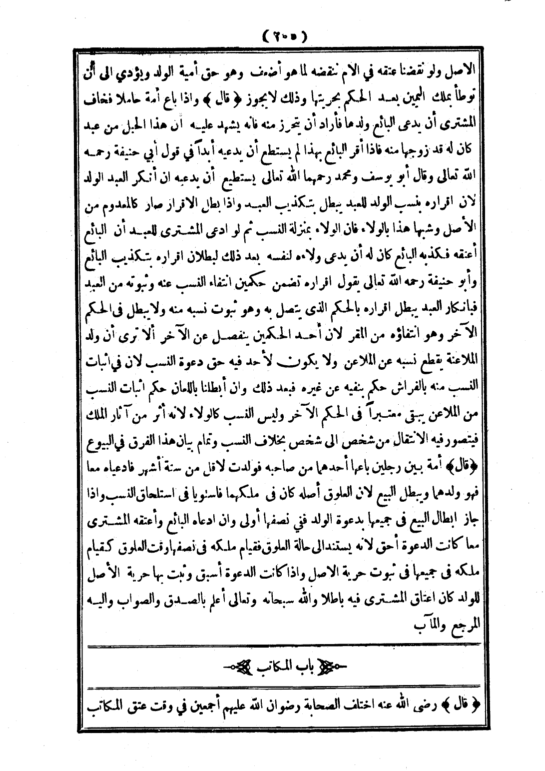بَابُ الْمُكَاتَبِ (قَالَ) - رَضِيَ اللَّهُ عَنْهُ - اخْتَلَفَ الصَّحَابَةُ - رِضْوَانُ اللَّهِ عَلَيْهِمْ أَجْمَعِينَ - فِي وَقْتِ عِتْقِ الْمُكَاتَبِ