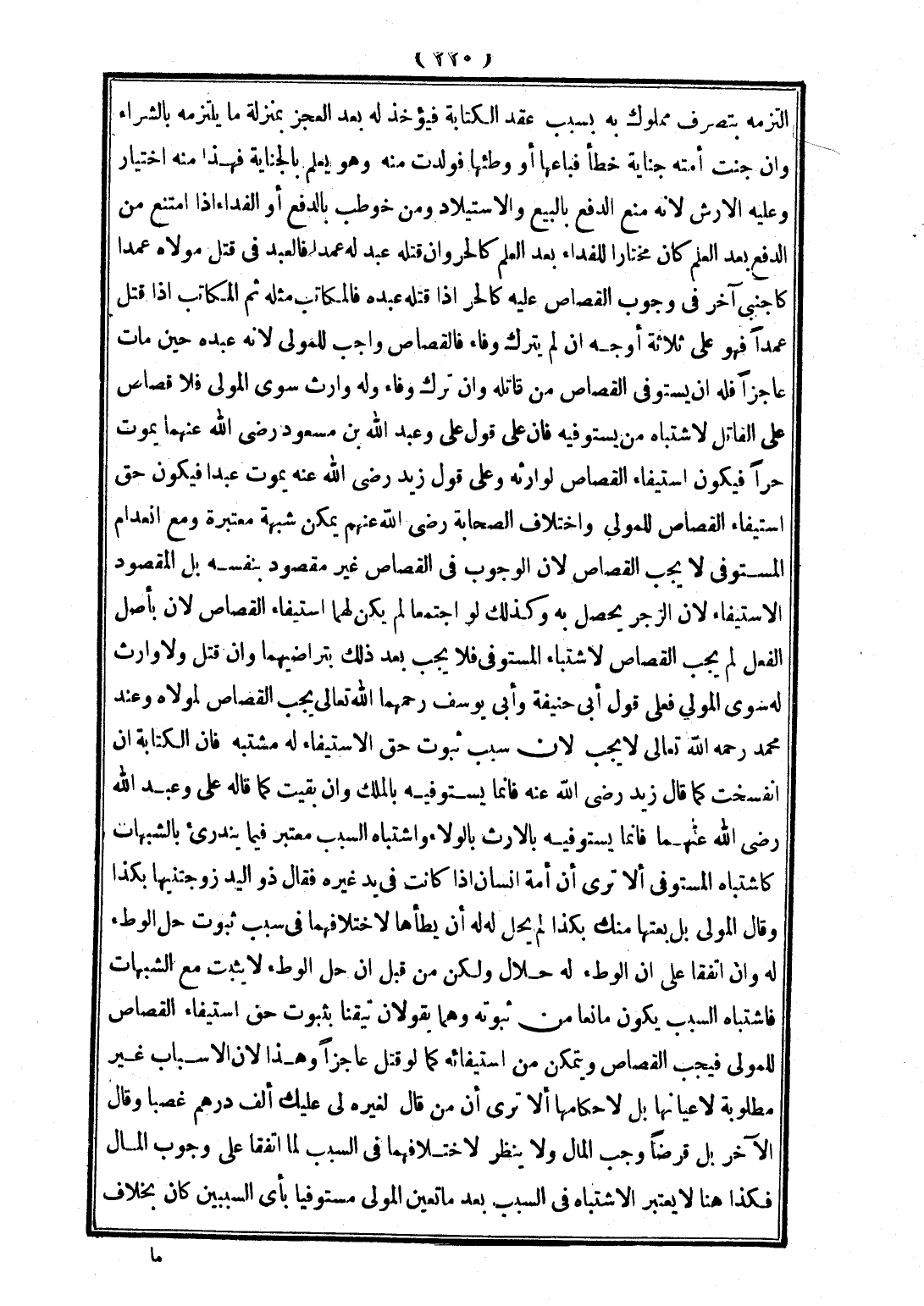 ثُمَّ الْمُكَاتَبُ إذَا قُتِلَ عَمْدًا فَهُوَ عَلَى ثَلَاثَةِ أَوْجُهٍ إنْ لَمْ يَتْرُكْ وَفَاءً فَالْقِصَاصُ وَاجِبٌ لِلْمَوْلَى؛ لِأَنَّهُ عَبْدُهُ حِينَ مَاتَ عَاجِزًا فَلَهُ أَنْ يَسْتَوْفِيَ الْقِصَاصَ مِنْ قَاتِلِهِ، وَإِنْ تَرَكَ وَفَاءً وَلَهُ وَارِثٌ سِوَى الْمَوْلَى فَلَا قِصَاصَ عَلَى الْقَاتِلِ لِاشْتِبَاهِ مَنْ يَسْتَوْفِيهِ فَإِنَّ عَلَى قَوْلِ عَلِيٍّ وَعَبْدِ اللَّهِ بْنِ مَسْعُودٍ - رَضِيَ اللَّهُ عَنْهُمَا - يَمُوتُ حُرًّا فَيَكُونُ اسْتِيفَاءُ الْقِصَاصِ لِوَارِثِهِ وَعَلَى قَوْلِ زَيْدٍ - رَضِيَ اللَّهُ عَنْهُ - يَمُوتُ عَبْدًا فَيَكُونُ حَقُّ اسْتِيفَاءِ الْقِصَاصِ لِلْمَوْلَى وَاخْتِلَافُ الصَّحَابَةِ - رَضِيَ اللَّهُ عَنْهُمْ - يُمْكِنُ شُبْهَةً مُعْتَبَرَةً، وَمَعَ انْعِدَامِ الْمُسْتَوْفِي لَا يَجِبُ الْقِصَاصُ؛ لِأَنَّ الْوُجُوبَ فِي الْقِصَاصِ غَيْرُ مَقْصُودٍ بِنَفْسِهِ بَلْ الْمَقْصُودُ الِاسْتِيفَاءُ؛ لِأَنَّ الزَّجْرَ يَحْصُلُ بِهِ، وَكَذَلِكَ لَوْ اجْتَمَعَا لَمْ يَكُنْ لَهُمَا اسْتِيفَاءُ الْقِصَاصِ؛ لِأَنَّ بِأَصْلِ الْفِعْلِ لَمْ يَجِبْ الْقِصَاصُ لِاشْتِبَاهِ الْمُسْتَوْفِي فَلَا يَجِبُ بَعْدَ ذَلِكَ بِتَرَاضِيهِمَا، وَإِنْ قُتِلَ وَلَا وَارِثَ لَهُ سِوَى الْمَوْلَى فَعَلَى قَوْلِ أَبِي حَنِيفَةَ وَأَبِي يُوسُفَ رَحِمَهُمَا اللَّهُ تَعَالَى يَجِبُ الْقِصَاصُ لِمَوْلَاهُ وَعِنْدَ مُحَمَّدٍ - رَحِمَهُ اللَّهُ تَعَالَى - لَا يَجِبُ؛ لِأَنَّ سَبَبَ ثُبُوتِ حَقِّ الِاسْتِيفَاءِ لَهُ مُشْتَبَهٌ فَإِنَّ الْكِتَابَةَ إنْ انْفَسَخَتْ كَمَا قَالَ زَيْدٌ - رَضِيَ اللَّهُ عَنْهُ - فَإِنَّمَا يَسْتَوْفِيهِ بِالْمِلْكِ، وَإِنْ بَقِيَتْ كَمَا قَالَهُ عَلِيٌّ وَعَبْدُ اللَّهِ - رَضِيَ اللَّهُ عَنْهُمَا - فَإِنَّمَا يَسْتَوْفِيهِ بِالْإِرْثِ بِالْوَلَاءِ وَاشْتِبَاهُ السَّبَبِ مُعْتَبَرٌ فِيمَا يَنْدَرِئُ بِالشُّبُهَاتِ كَاشْتِبَاهِ الْمُسْتَوْفِي.