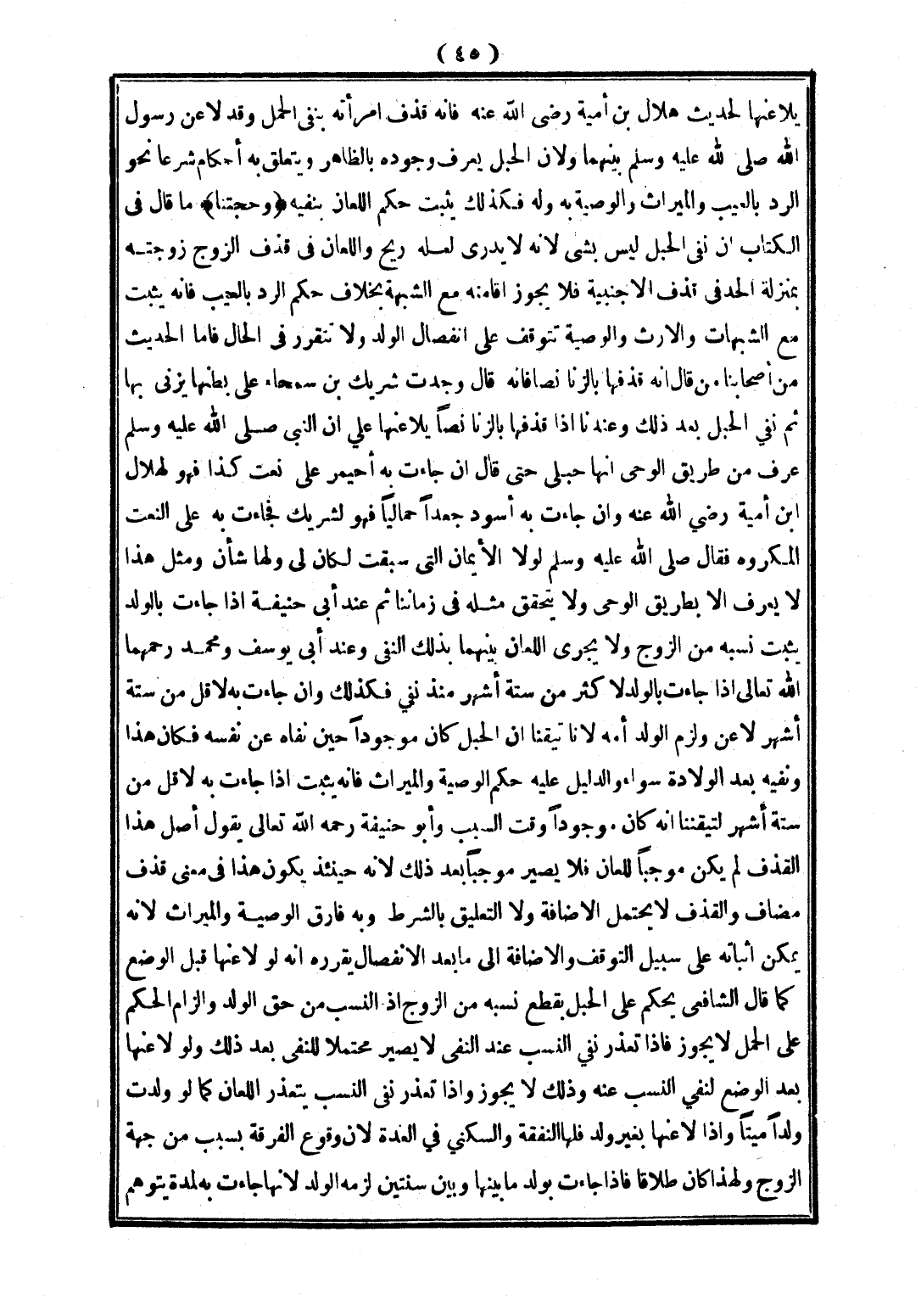 (وَحُجَّتُنَا) مَا قَالَ فِي الْكِتَابِ أَنَّ نَفْيَ الْحَبَلِ لَيْسَ بِشَيْءٍ؛ لِأَنَّهُ لَا يَدْرِي لَعَلَّهُ رِيحٌ، وَاللِّعَانُ فِي قَذْفِ الزَّوْجِ زَوْجَتَهُ بِمَنْزِلَةِ الْحَدِّ فِي قَذْفِ الْأَجْنَبِيَّةِ فَلَا يَجُوزُ إقَامَتُهُ مَعَ الشُّبْهَةِ بِخِلَافِ حُكْمِ الرَّدِّ بِالْعَيْبِ فَإِنَّهُ يَثْبُتُ مَعَ الشُّبُهَاتِ، وَالْإِرْثُ وَالْوَصِيَّةُ تَتَوَقَّفُ عَلَى انْفِصَالِ الْوَلَدِ وَلَا تَتَقَرَّرُ فِي الْحَالِ، فَأَمَّا الْحَدِيثُ مِنْ أَصْحَابِنَا مَنْ قَالَ: إنَّهُ قَذَفَهَا بِالزِّنَا نَصًّا فَإِنَّهُ قَالَ: وَجَدْت شَرِيكَ ابْنَ سَحْمَاءَ عَلَى بَطْنِهَا يَزْنِي بِهَا، ثُمَّ نَفْيُ الْحَبَلِ بَعْدَ ذَلِكَ.
