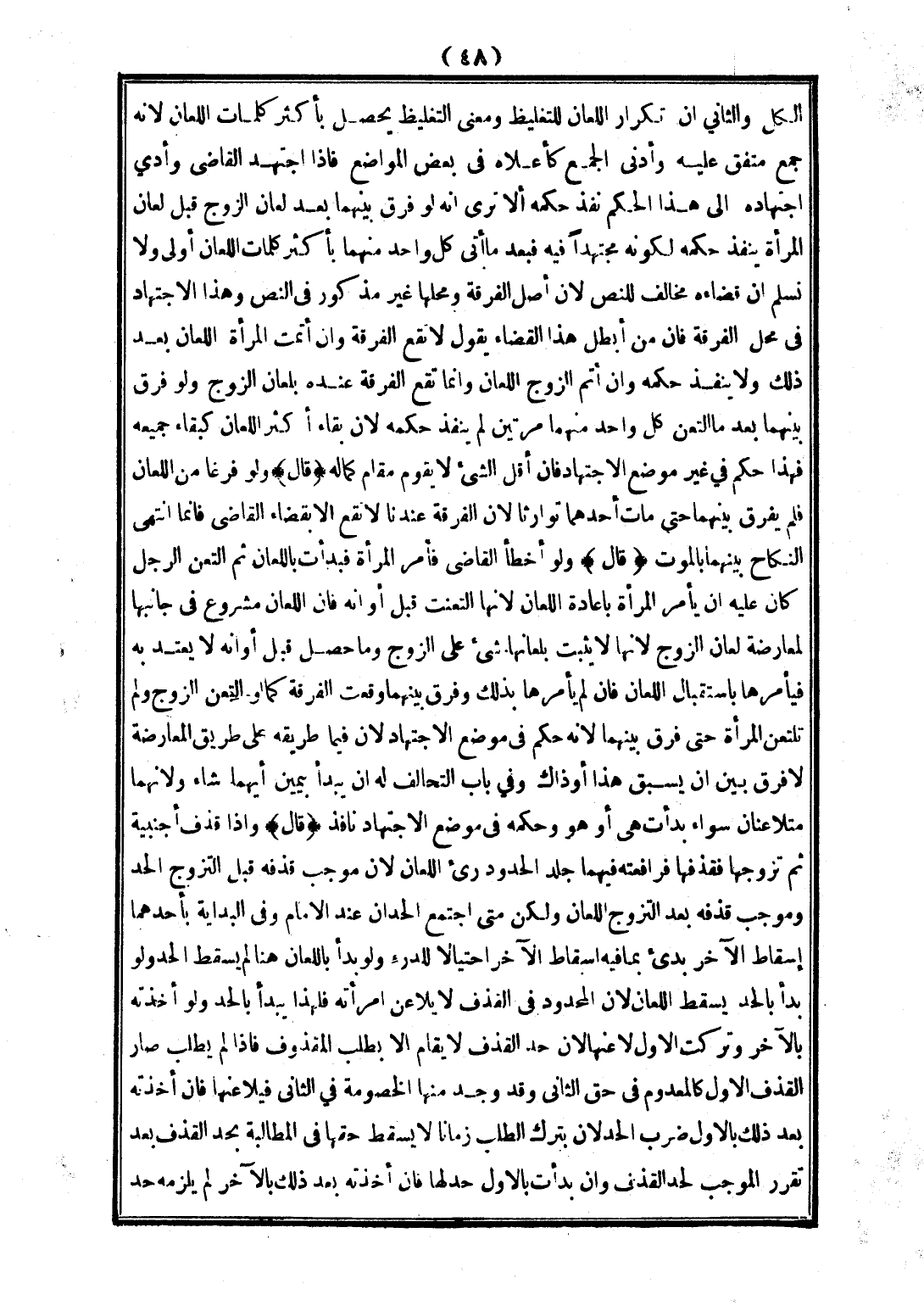 وَلَا نُسَلِّمُ أَنَّ قَضَاءَهُ مُخَالِفٌ لِلنَّصِّ؛ لِأَنَّ أَصْلَ الْفُرْقَةِ، وَمَحَلَّهَا غَيْرُ مَذْكُورٍ فِي النَّصِّ وَهَذَا الِاجْتِهَادُ فِي مَحَلِّ الْفُرْقَةِ، فَإِنَّ مَنْ أَبْطَلَ هَذَا الْقَضَاءَ يَقُولُ: لَا تَقَعُ الْفُرْقَةُ وَإِنْ أَتَمَّتْ الْمَرْأَةُ اللِّعَانَ بَعْدَ ذَلِكَ، وَلَا يَنْفُذُ حُكْمُهُ وَإِنْ أَتَمَّ الزَّوْجُ اللِّعَانَ وَإِنَّمَا تَقَعُ الْفُرْقَةُ عِنْدَهُ بِلِعَانِ الزَّوْجِ، وَلَوْ فَرَّقَ بَيْنَهُمَا بَعْدَمَا الْتَعَنَ كُلُّ وَاحِدٍ مِنْهُمَا مَرَّتَيْنِ لَمْ يَنْفُذْ حُكْمُهُ؛ لِأَنَّ بَقَاءَ أَكْثَرِ اللِّعَانِ كَبَقَاءِ جَمِيعِهِ فَهَذَا حُكْمٌ فِي غَيْرِ مَوْضِعِ الِاجْتِهَادِ، فَإِنَّ أَقَلَّ الشَّيْءِ لَا يَقُومُ مَقَامَ كَمَالِهِ.