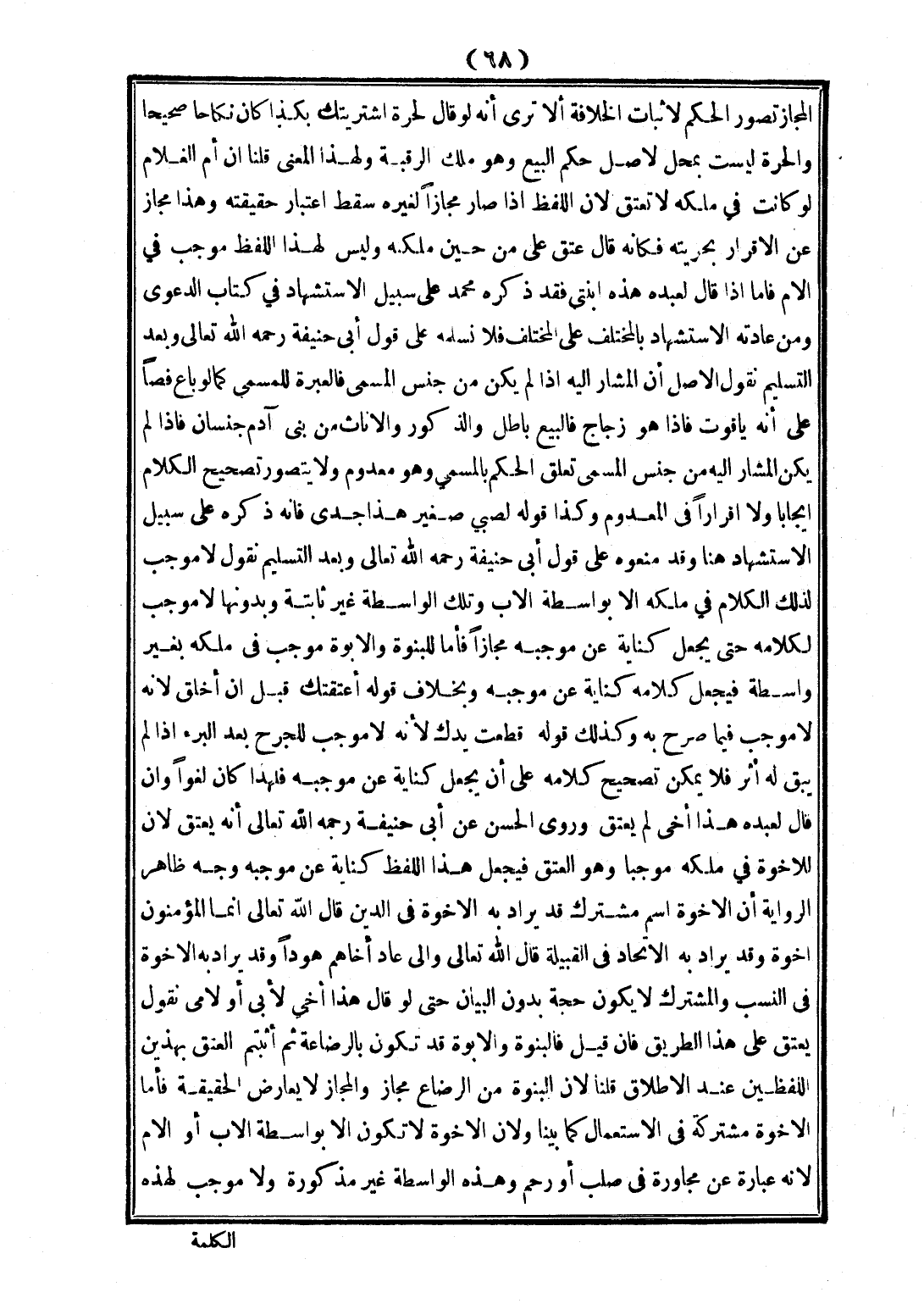 وَالْمُشْتَرَكُ لَا يَكُونُ حُجَّةً بِدُونِ الْبَيَانِ حَتَّى لَوْ قَالَ هَذَا أَخِي لِأَبِي أَوْ لِأُمِّي نَقُولُ: يَعْتِقُ عَلَى هَذَا الطَّرِيقِ فَإِنْ قِيلُ: فَالْبُنُوَّةُ وَالْأُبُوَّةُ قَدْ تَكُونُ بِالرَّضَاعَةِ ثُمَّ أَثْبَتُّمْ الْعِتْقَ بِهَذَيْنِ اللَّفْظَيْنِ عِنْدَ الْإِطْلَاقِ قُلْنَا؛ لِأَنَّ الْبُنُوَّةَ مِنْ الرَّضَاعِ مَجَازٌ وَالْمَجَازُ لَا يُعَارِضُ الْحَقِيقَةَ. فَأَمَّا الْأُخُوَّةُ مُشْتَرَكَةٌ فِي الِاسْتِعْمَالِ كَمَا بَيَّنَّا؛ وَلِأَنَّ الْأُخُوَّةَ لَا تَكُونُ إلَّا بِوَاسِطَةِ الْأَبِ أَوْ الْأُمِّ؛ لِأَنَّهُ عِبَارَةٌ عَنْ مُجَاوَرَةٍ فِي صُلْبٍ أَوْ رَحِمٍ، وَهَذِهِ الْوَاسِطَةُ غَيْرُ مَذْكُورَةٍ، وَلَا مُوجِبَ لِهَذِهِ